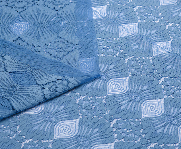 Кружево эластичное, по всем полотну равномерно расположен в тон орнамент 3d. При пошиве требует подклада. Из кружево шьют нарядные, вечерние, торжественные платья, костюмы.