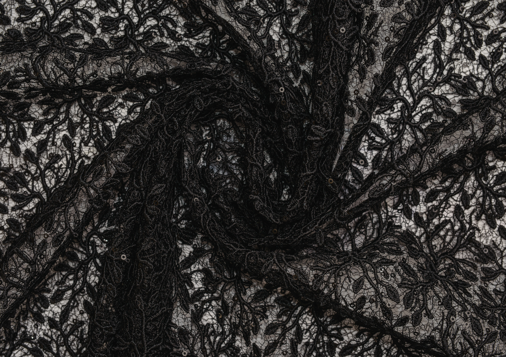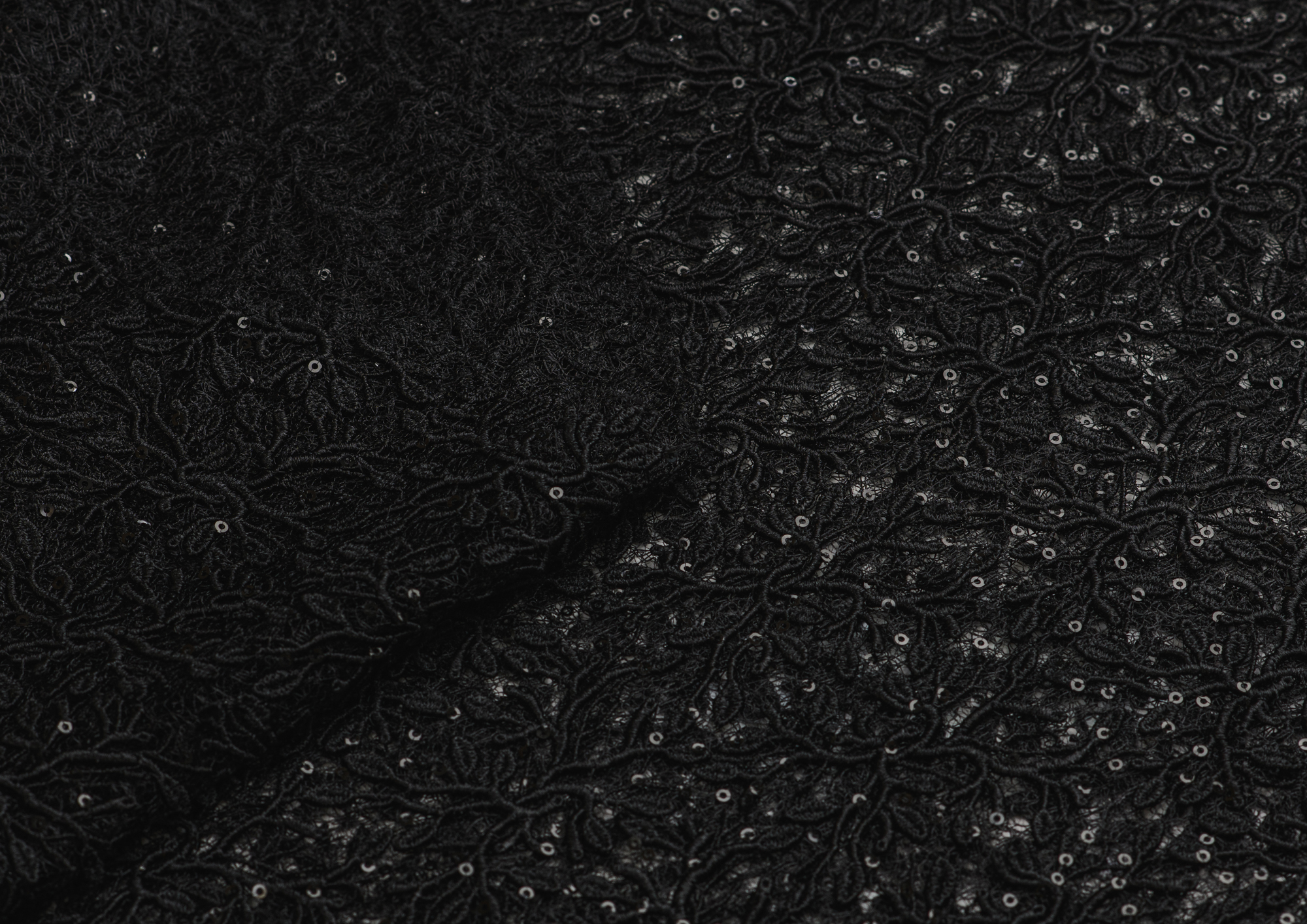 Кружевоное полотно расшито мелкими прозрачными пайетками . Кружево имеет 3D  эффект , красивые фестоны идут вдоль обоих кромок. Под изделие необходим подклад .  Изделия из кружева всегда смотряться нарядно . Отлично подойдет для пошива театрального, вечерего, свадебного платья, костюма .