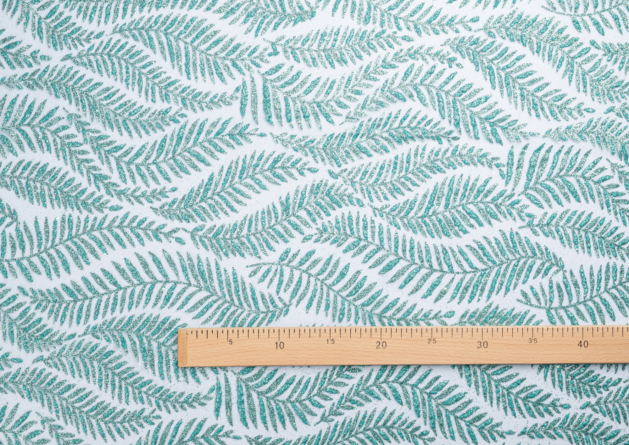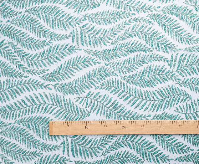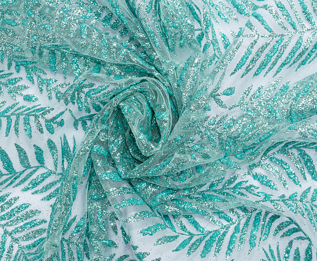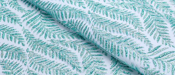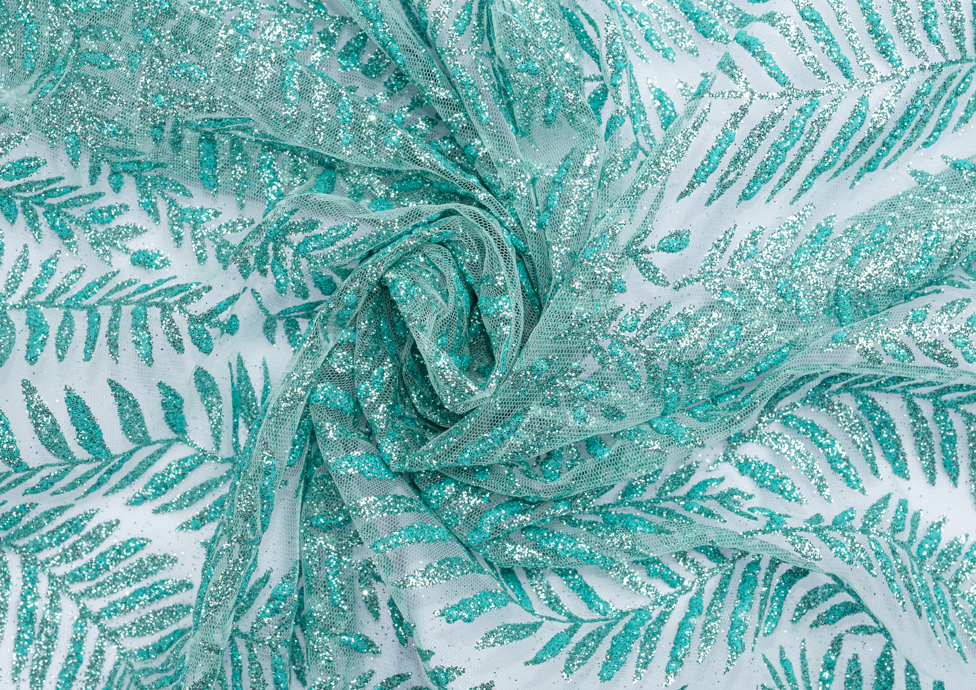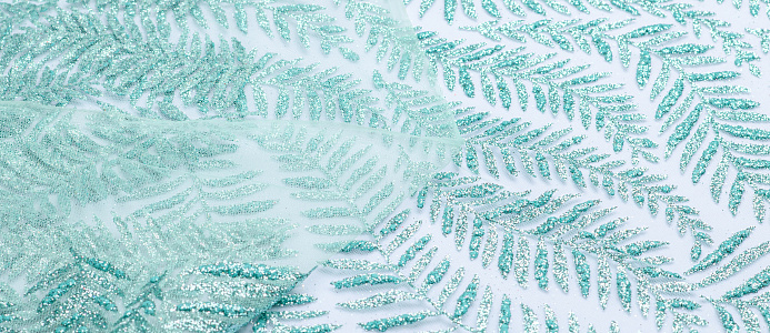 Ткань кружево с глиттером "Веточки" цв. бирюзовый