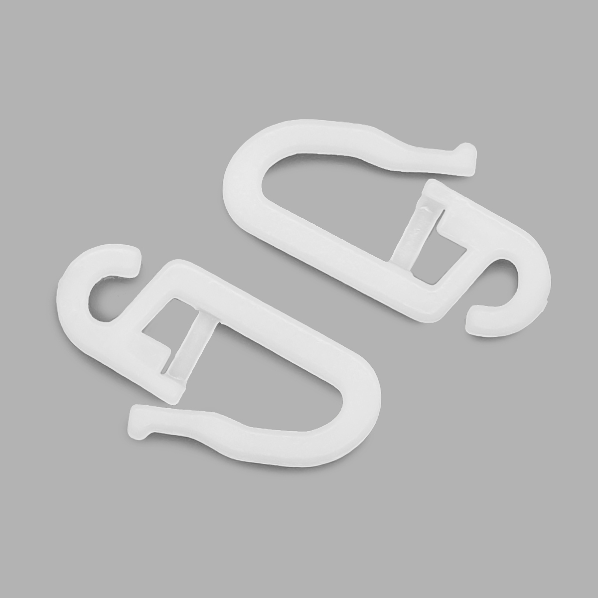 Крючок-гвоздик (бегунок) надевают непосредствоенно на шторную ленту. Подходит для штор 'блэкаут', т.е. не пропускающих свет, отлично сочетаются с потолочными шинами. Такой крючок скользит по карнизу плавно, без дополнительных усилий и почти бесшумно. Изготовлен из пластика, очень легкий, не создает дополнительной нагрузки на карниз, при этом крепкий и хорошо удерживает шторы. Крючки-гвоздики надежно защелкиваются после установки на шторной ленте, поэтому при стирке их можно не снимать.