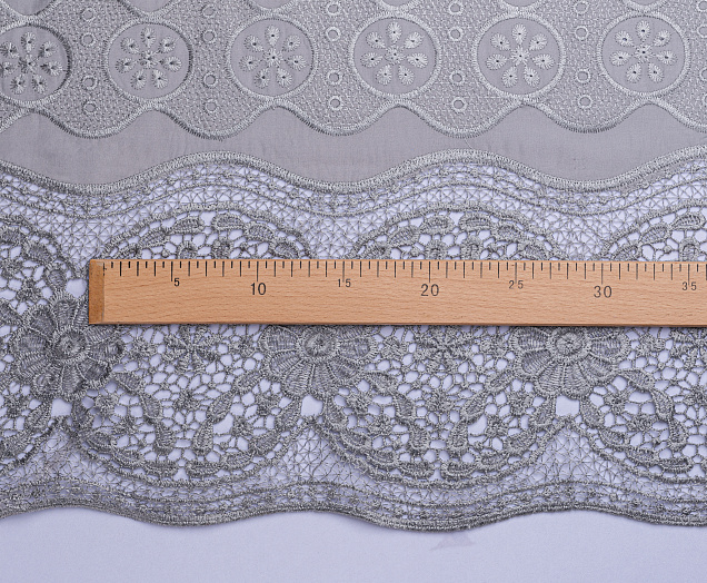 Режем ткань от 30 смс шагом в 10 см. Тесьму и кружево режем от 1 метра