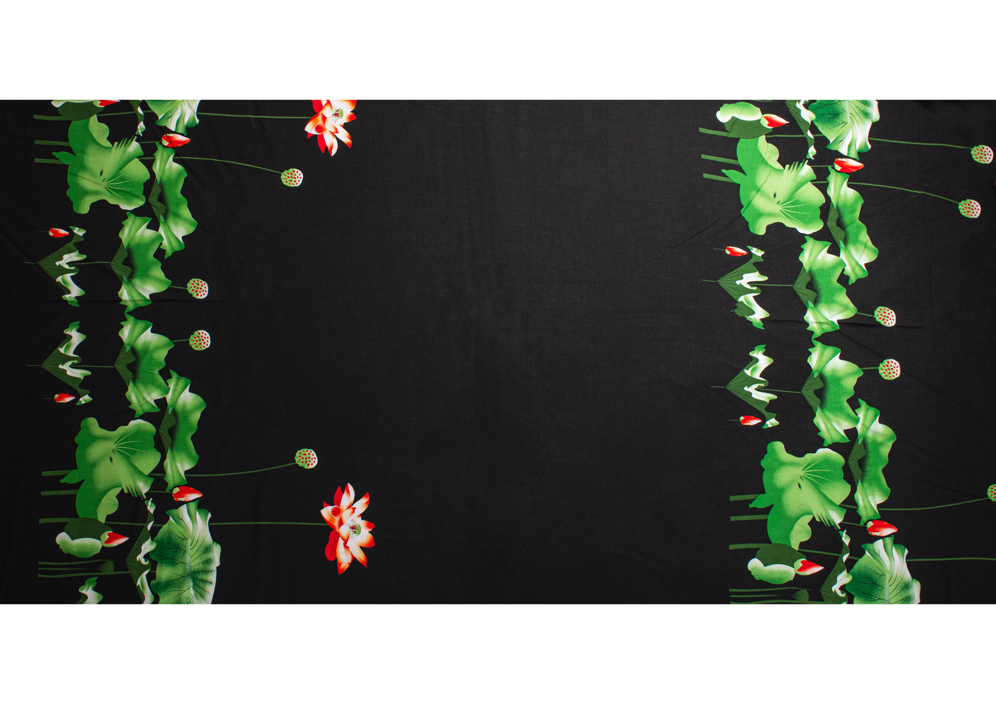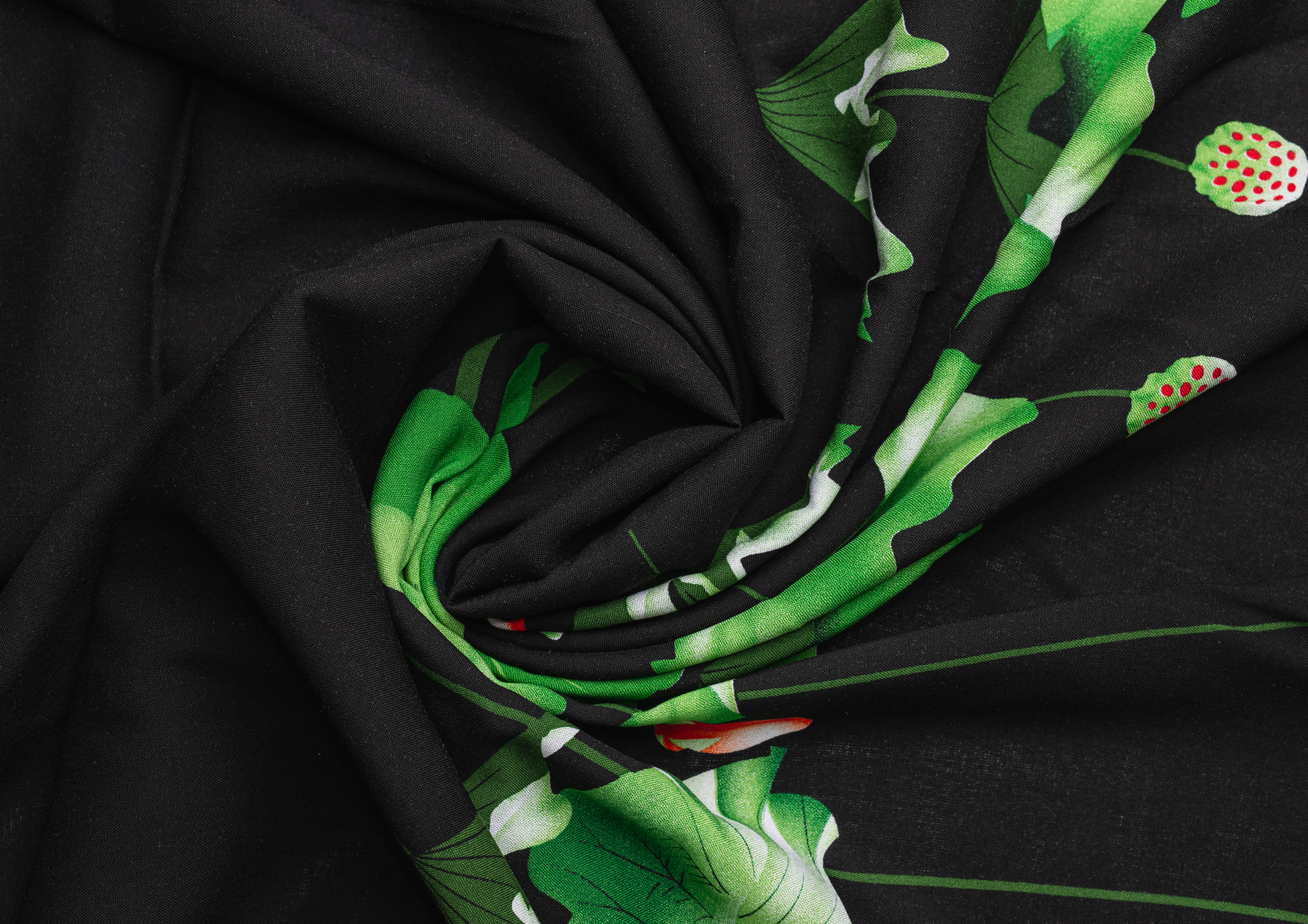 Легкая , мягкая , приятная на ощупь ткань . Поверхность шелковистая . Рисунок идет раппортом. Длина раппорта 95 см Ткань воздухопроницаемая, хорошо подходит для жаркой погоды. Отлично драпируется , образовывая мягкие складки. Подходит для пошива платьев, сарафанов, халатов, юбок