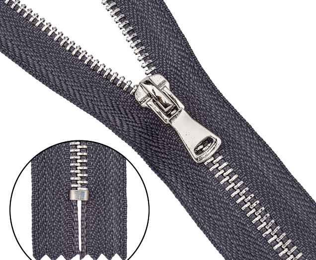 Молния металл-никель неразъемная т5, 18 см цв.301т.серый