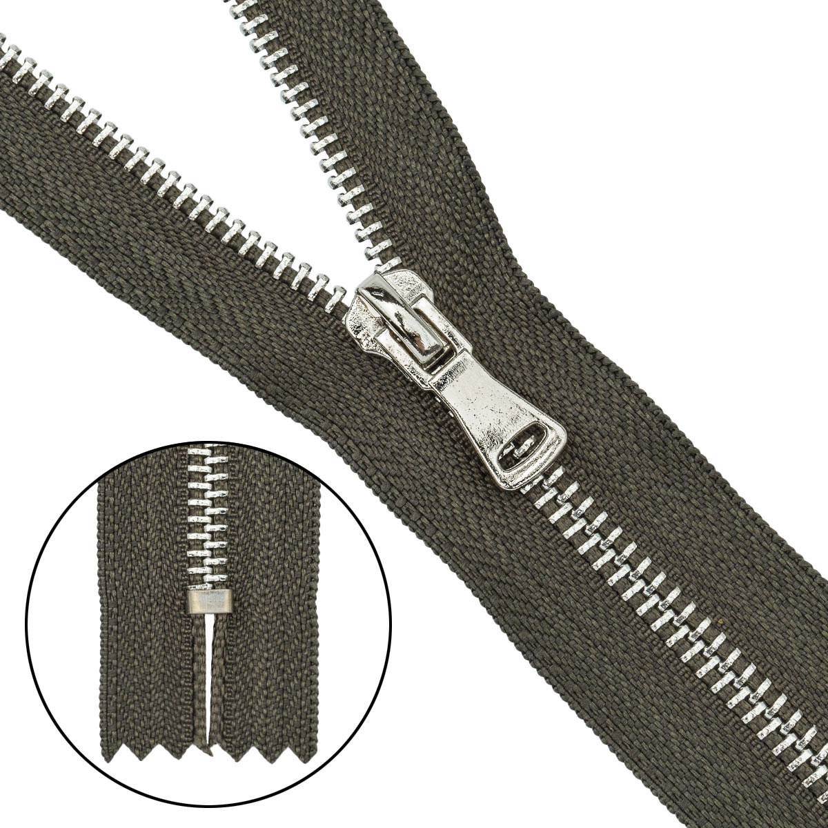 Молния металл-никель разьемная Т5-70см цв.078 хаки