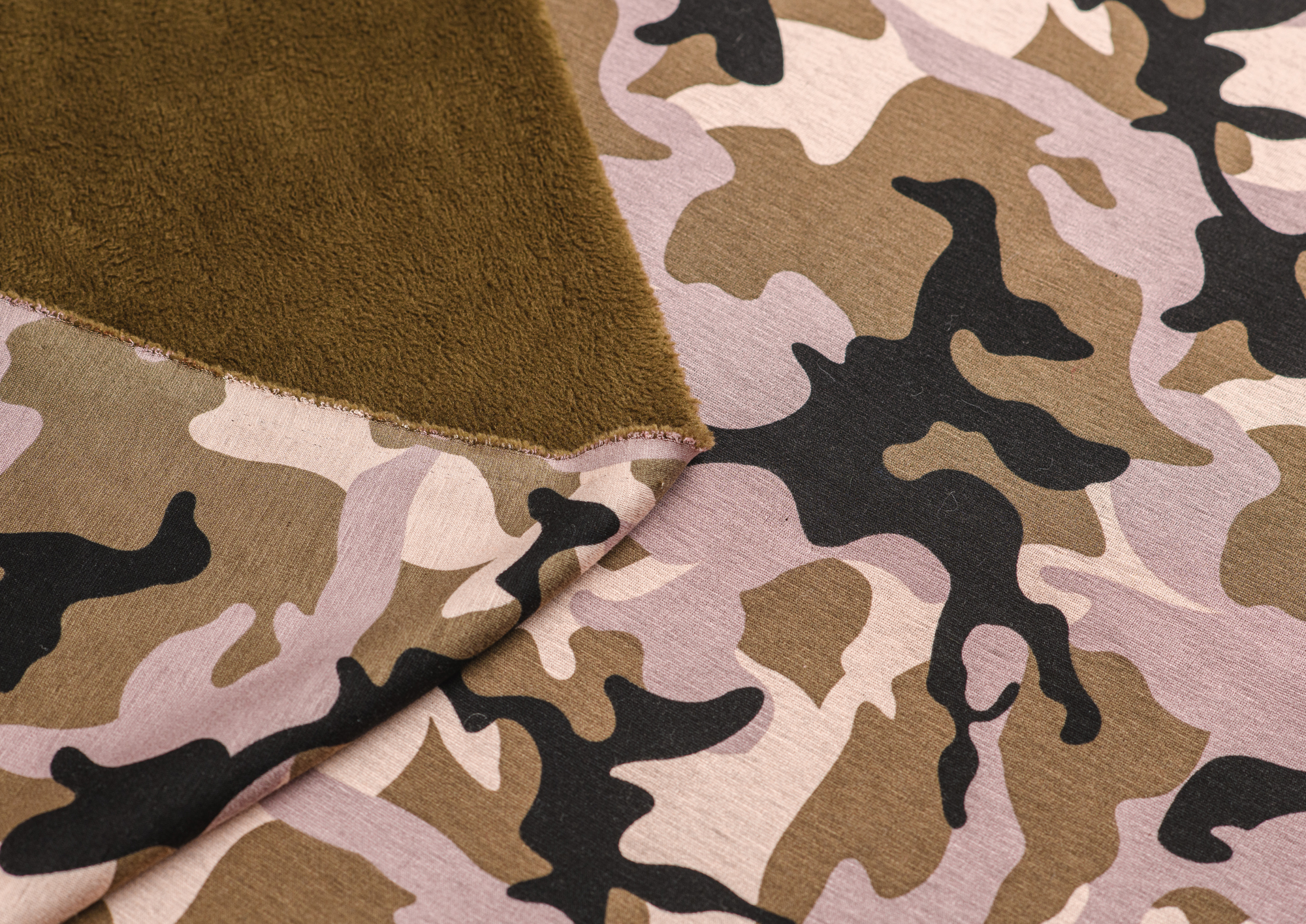 Трикотаж на меху - плотная теплая толстая комфортная ткань с мехом. С одной сторны принт, с другой - благородный мелкий ворс. Трикотажное полотно немного тянется. Широко используется для изготовления одежды, головных уборов и отделки.