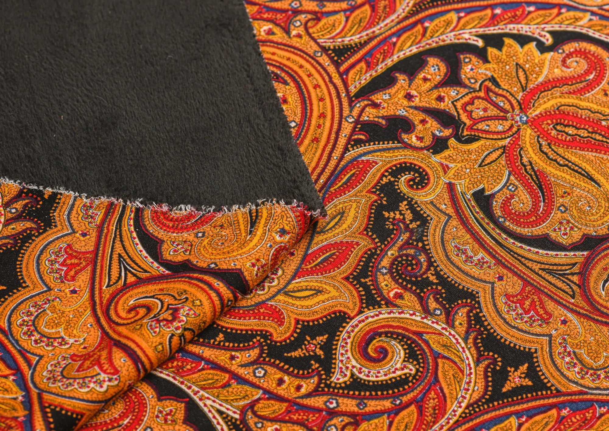 Трикотаж на меху 3523 Пейсли цв. оранжевый