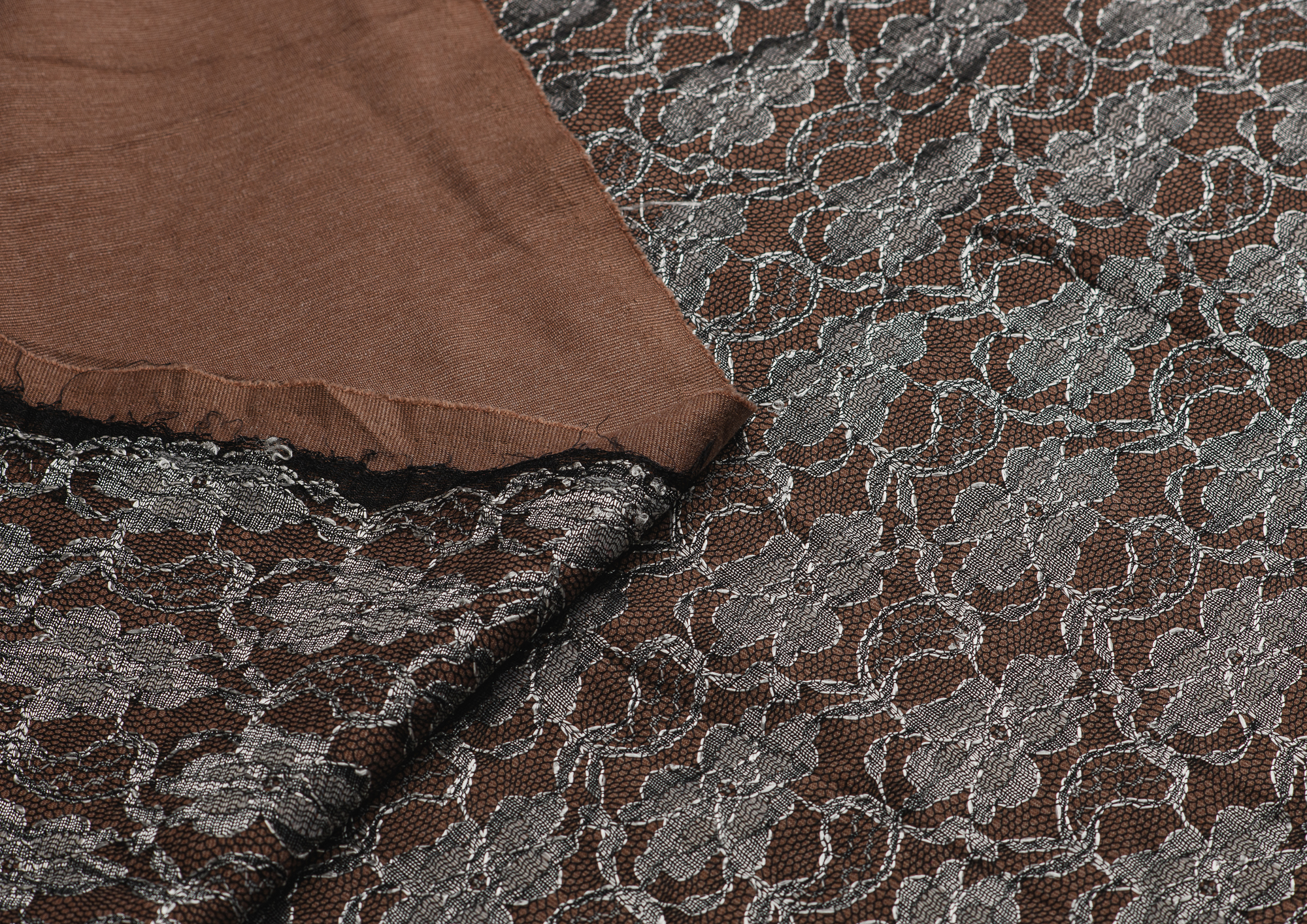 Ткань кружево на трикотаже цв.№ 3 коричневый