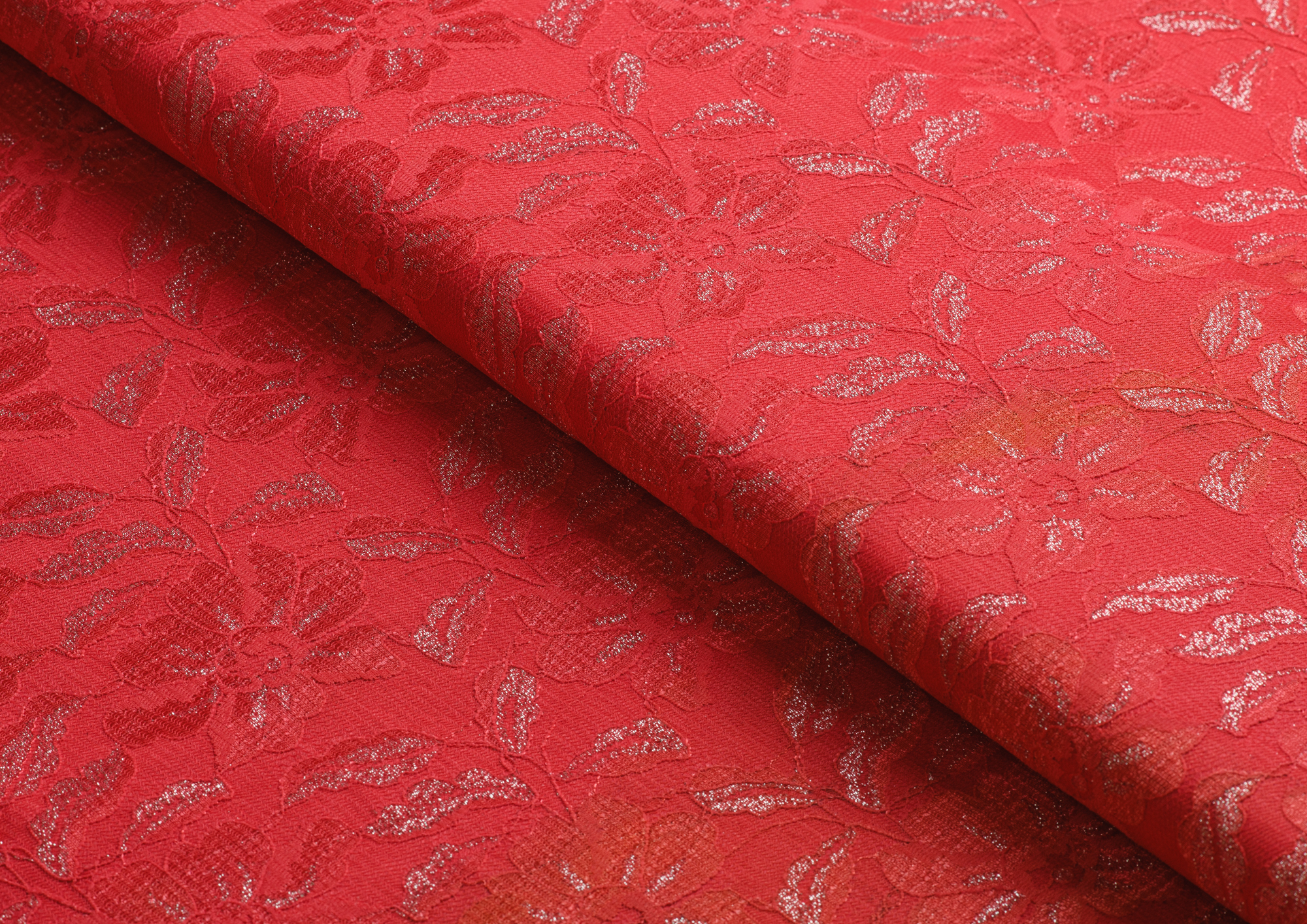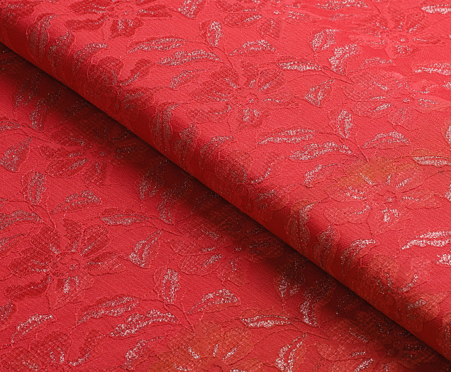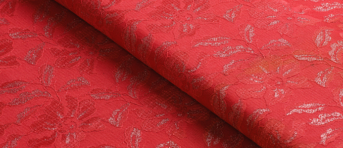 Кружево на трикотаже. Ткань прекрасно тянется и держит форму. По всем полотну равномерно расположен орнамент 3d. Благодаря нанесенному сверху кружеву  создаётся объёмный эффект. Из полотна можно пошить платье, костюмы.