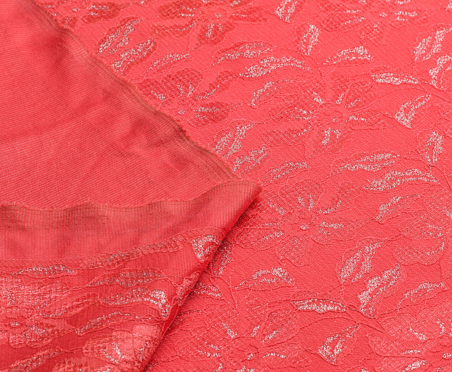 Трикотаж Рома с кружевом цв. коралл