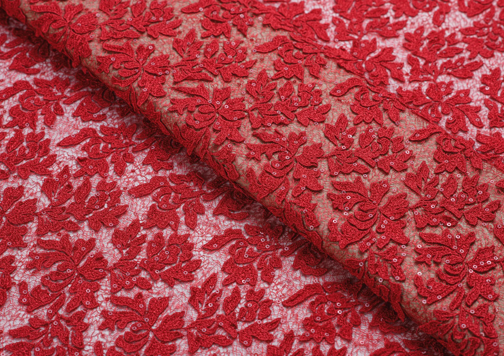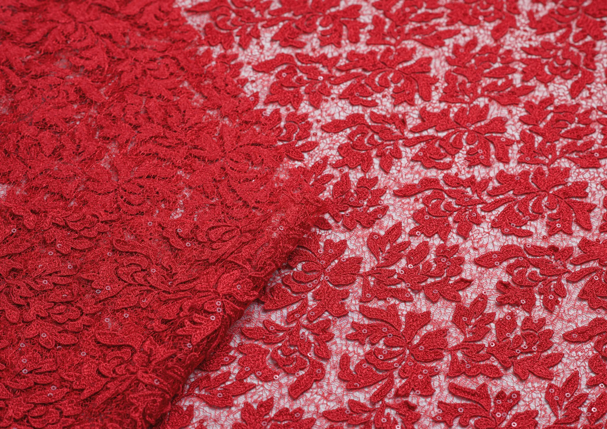 Ткань кружево мелкая пайетка Лилу цв. красный