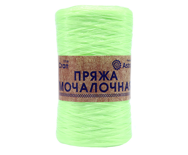 'Мочалочная' пряжа от Astra Premium из 100% полипропиленового волокна – легкая, крепкая, не портится от влаги, хорошо мылится и быстро высыхает. Нить широкая и плоская, что позволяет вязать мочалки, которые будут обеспечивать мягкий массаж кожи с отшелушивающим эффектом.