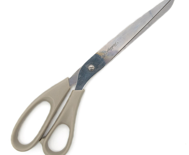 Универсальные ножницы для работы с бумагой, клейкой лентой, тканью, другими материалами. Удобная конструкция, пластиковые ручки.