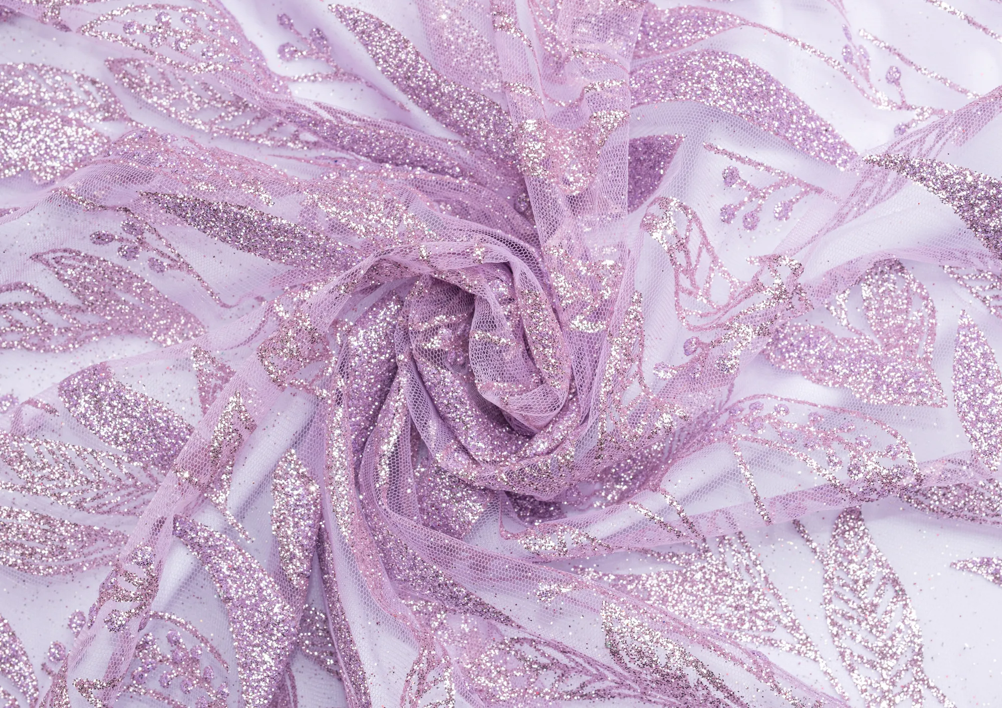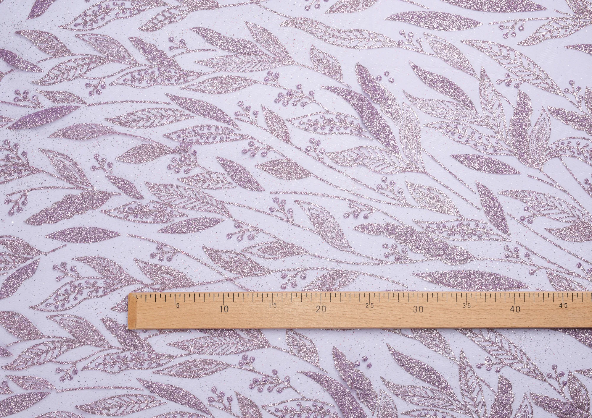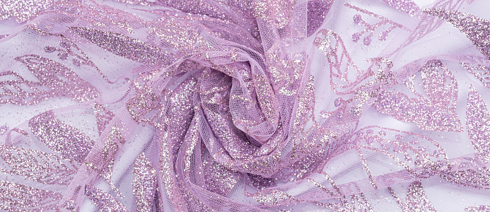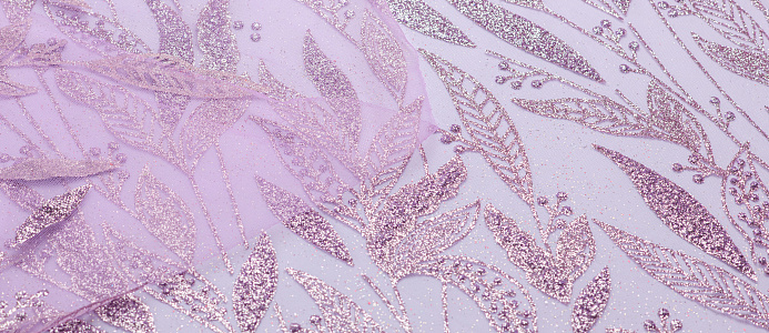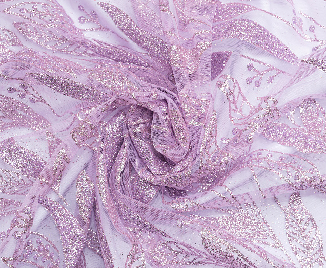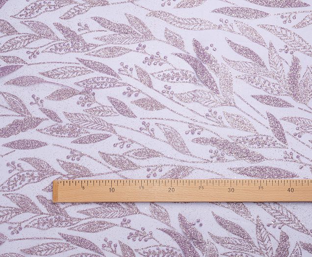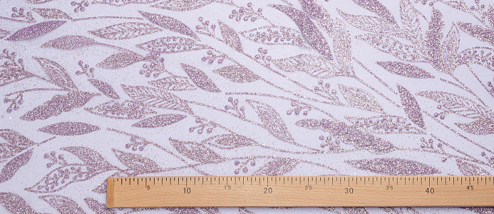 Ткань кружево с глиттером "Листочки" цв. лавандовый