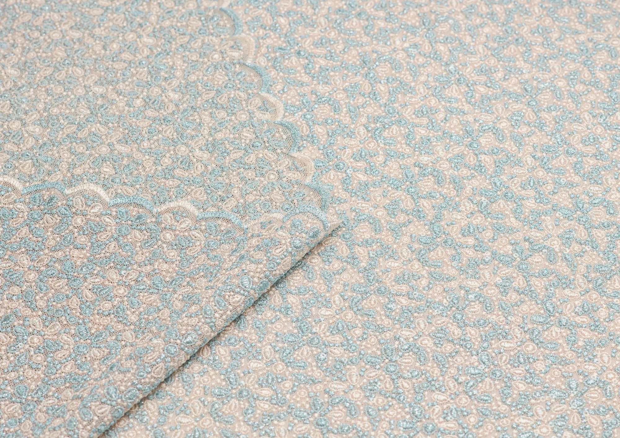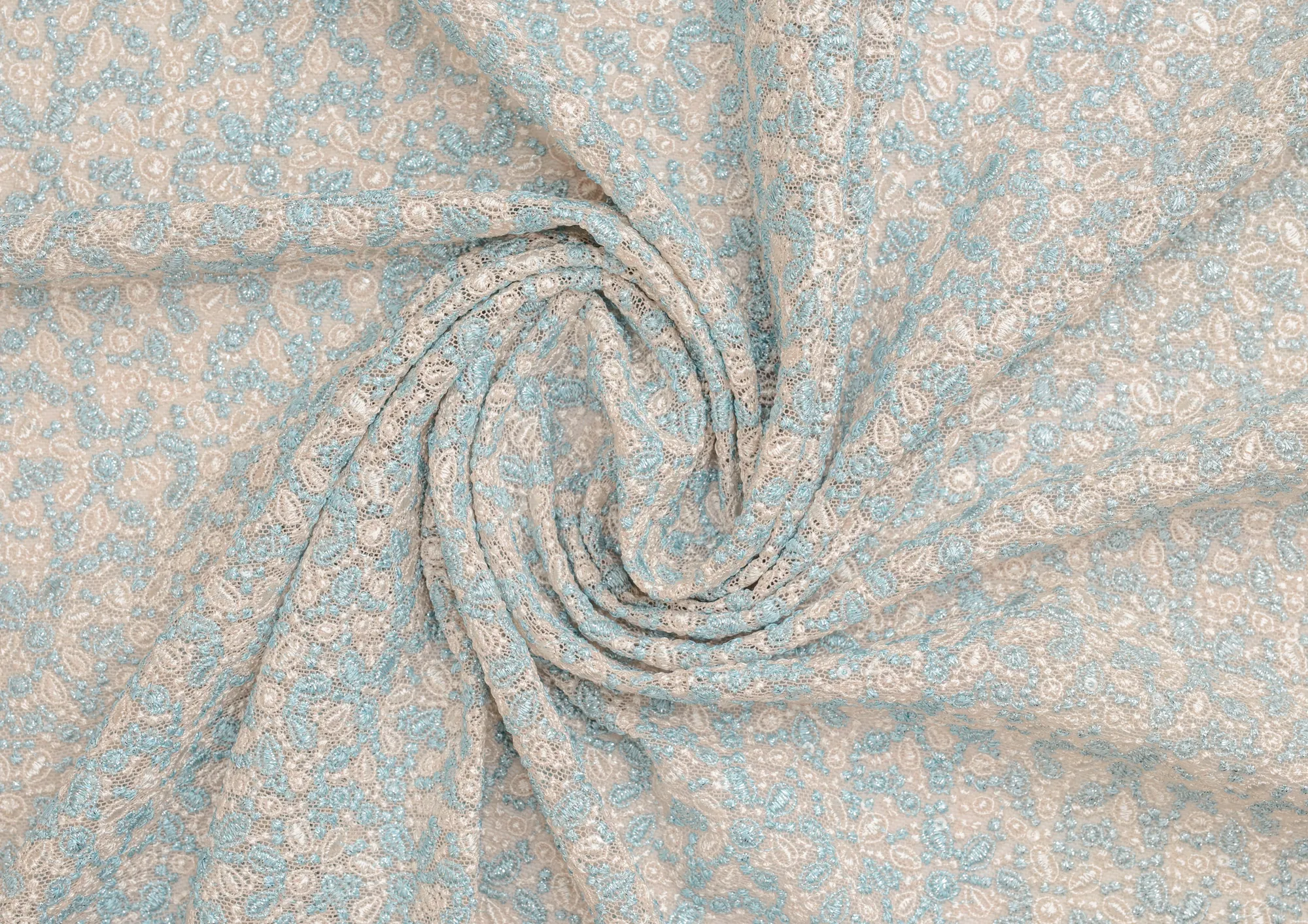 Ткань кружево стрейч цв №1 бежево-бирюзовый