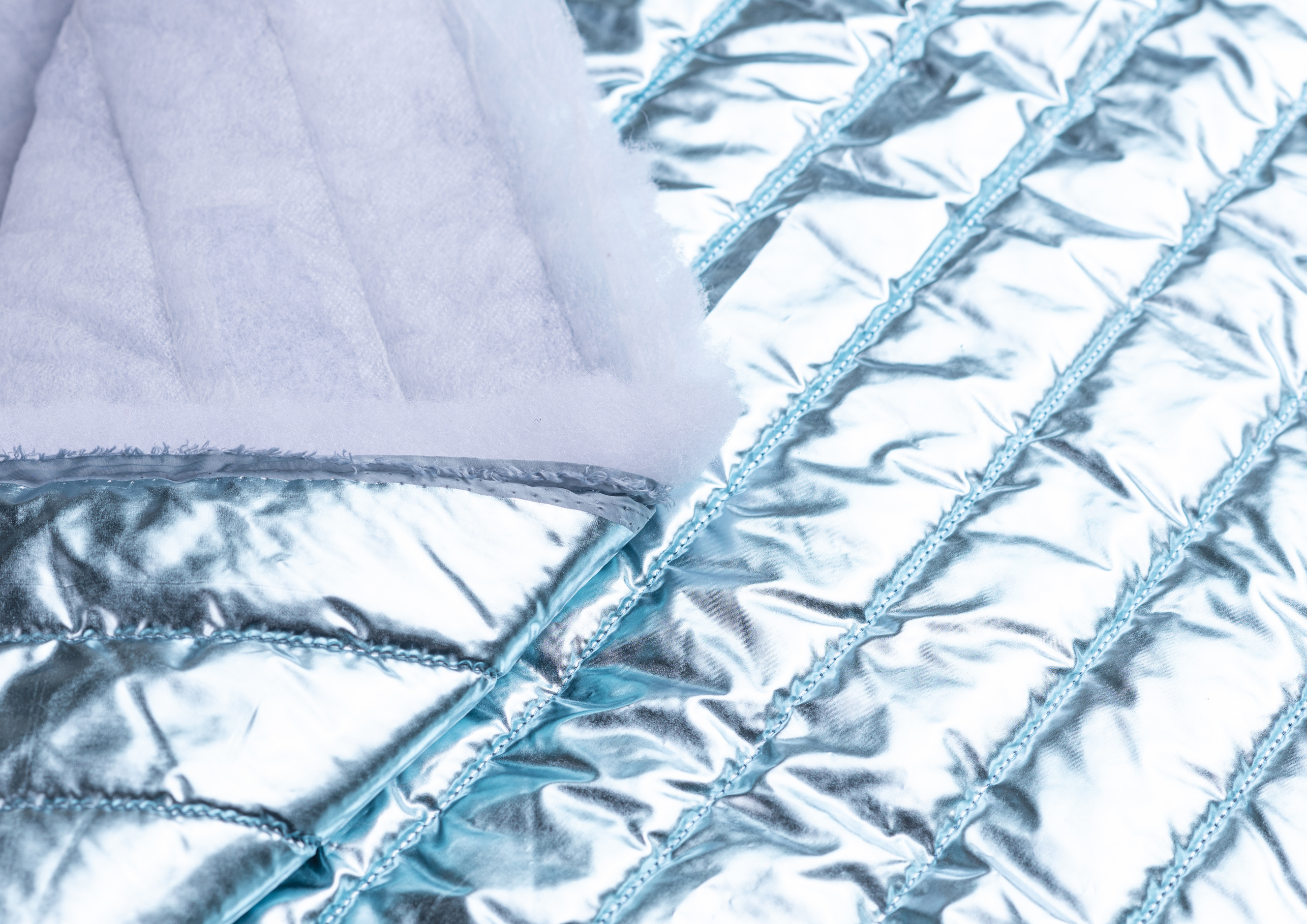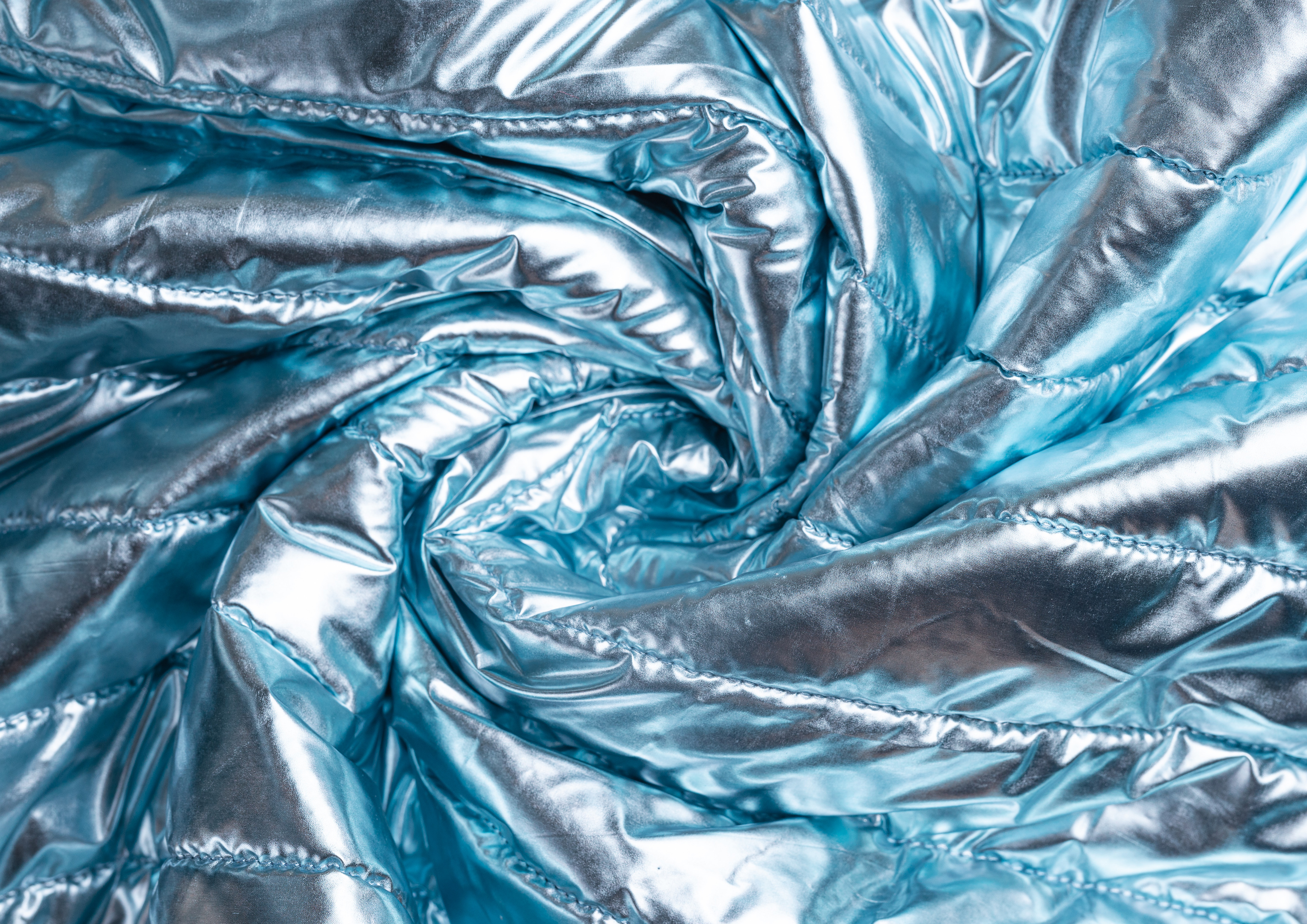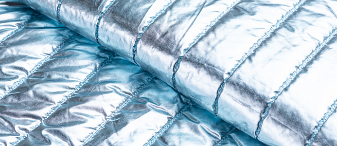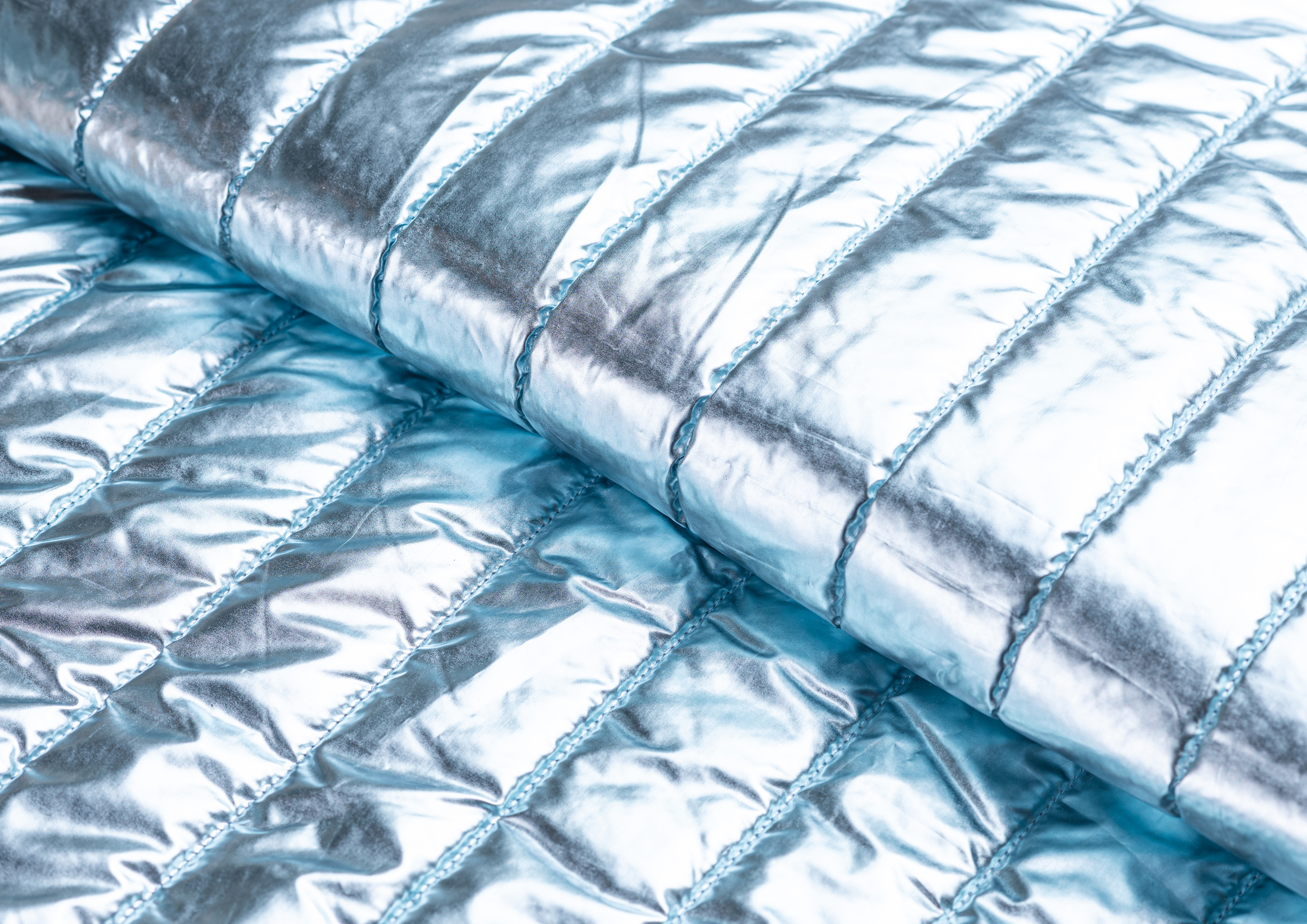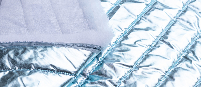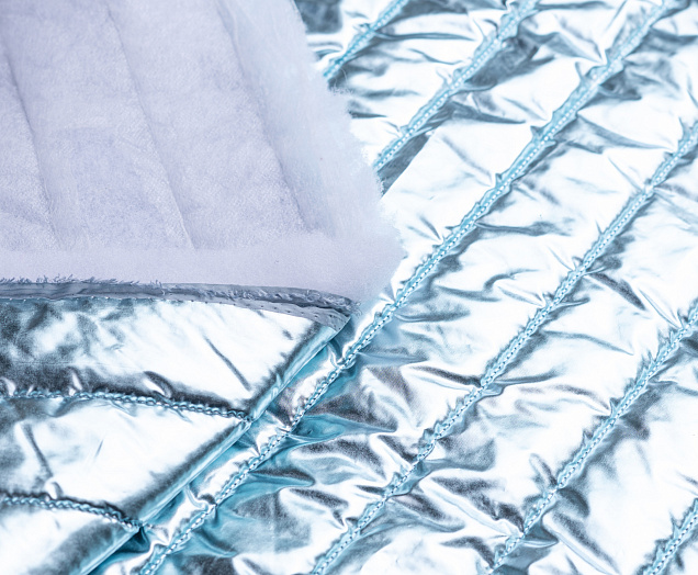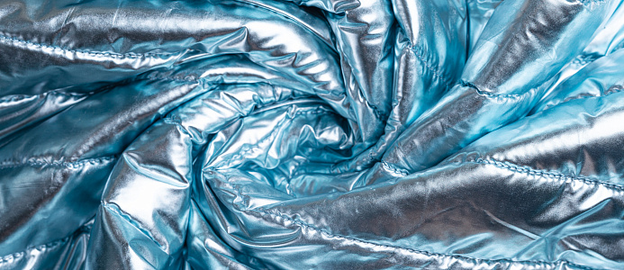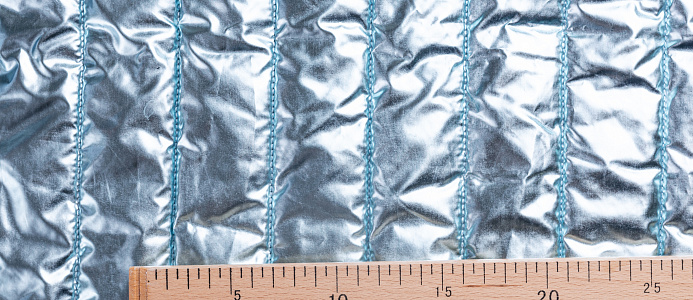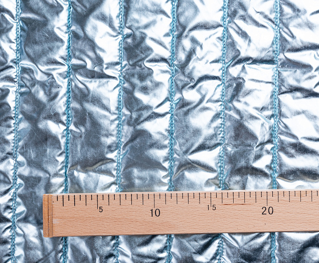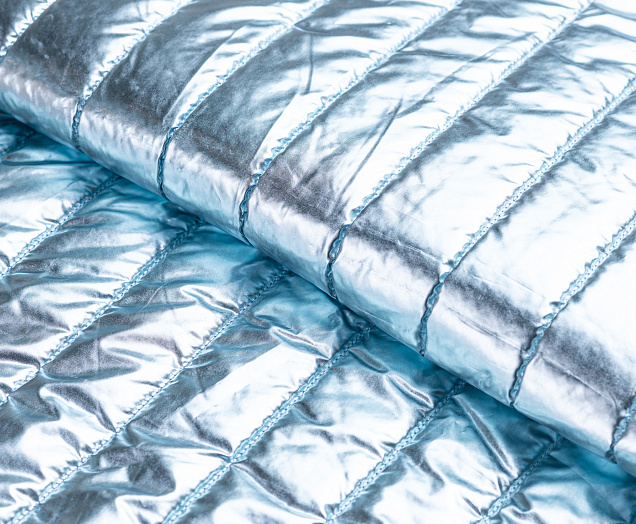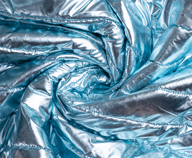 Ткань курточная стеганная с синтепоном 100 гр/м2. Ширина 150 см .Состав 100% полиэстер . Страна Китай. Ткань обьемная , с металическим блеском (эффект фольги) . Отлично подходит на куртки , плащи , теплое пальто .