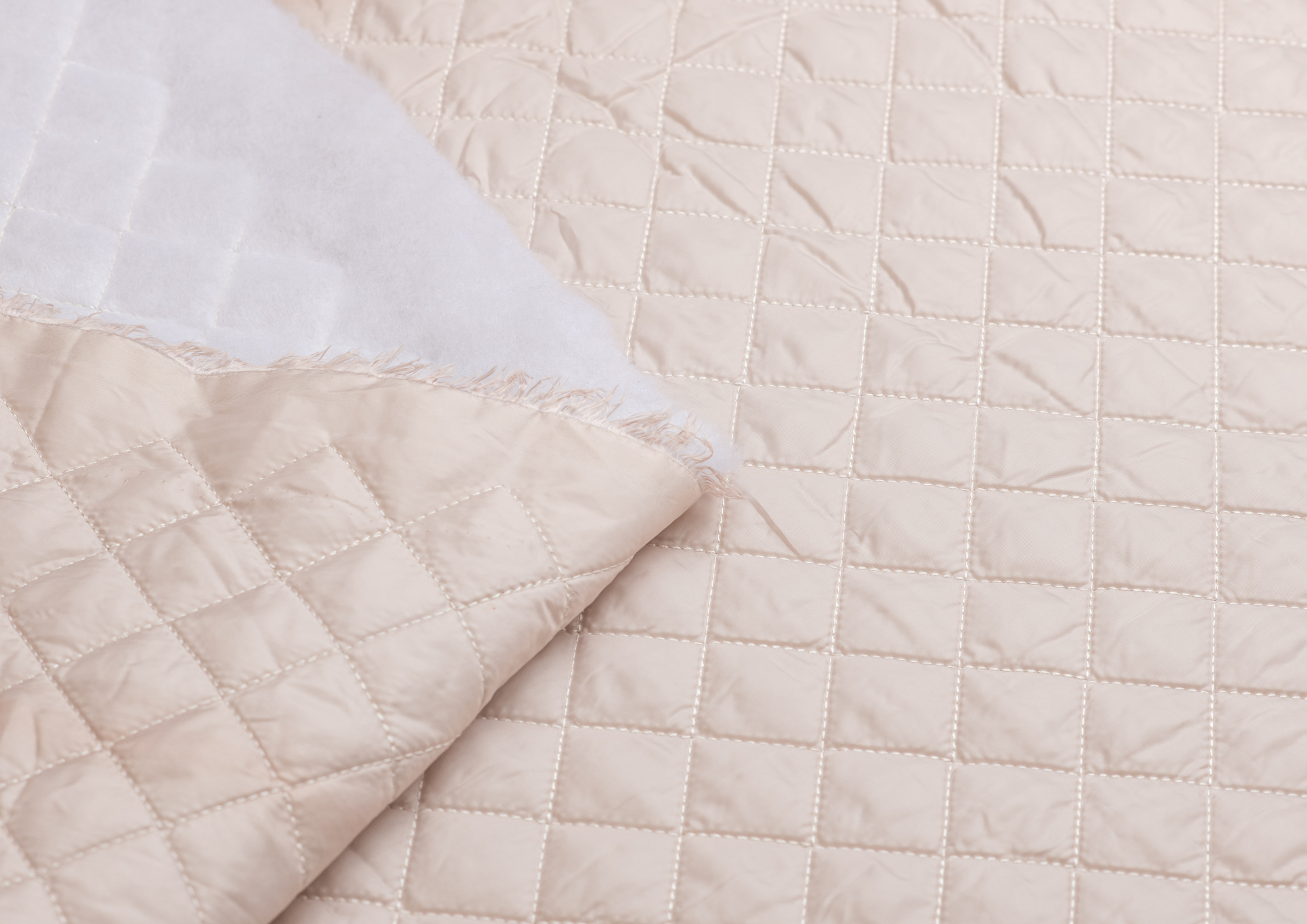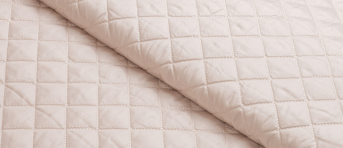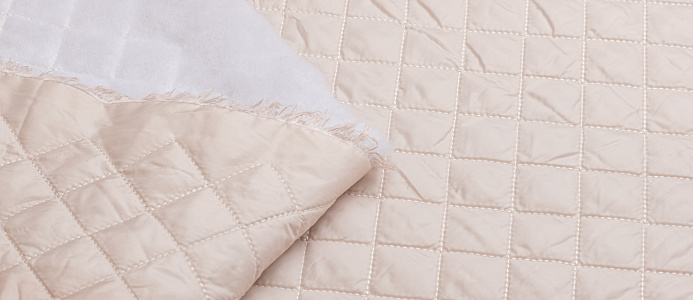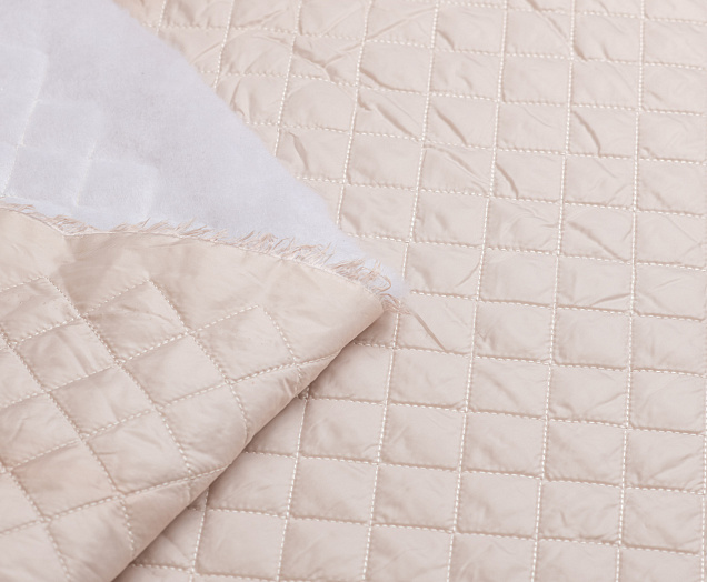 Курточная ткань, дублированная синтепоном. Полотно объемное, стеганое по всей ширине. Размер клеточки 3*3 см Подойдет для пошива верхней одежды - курток, жилетов, пуховиков. Синтепон 100 гр,
