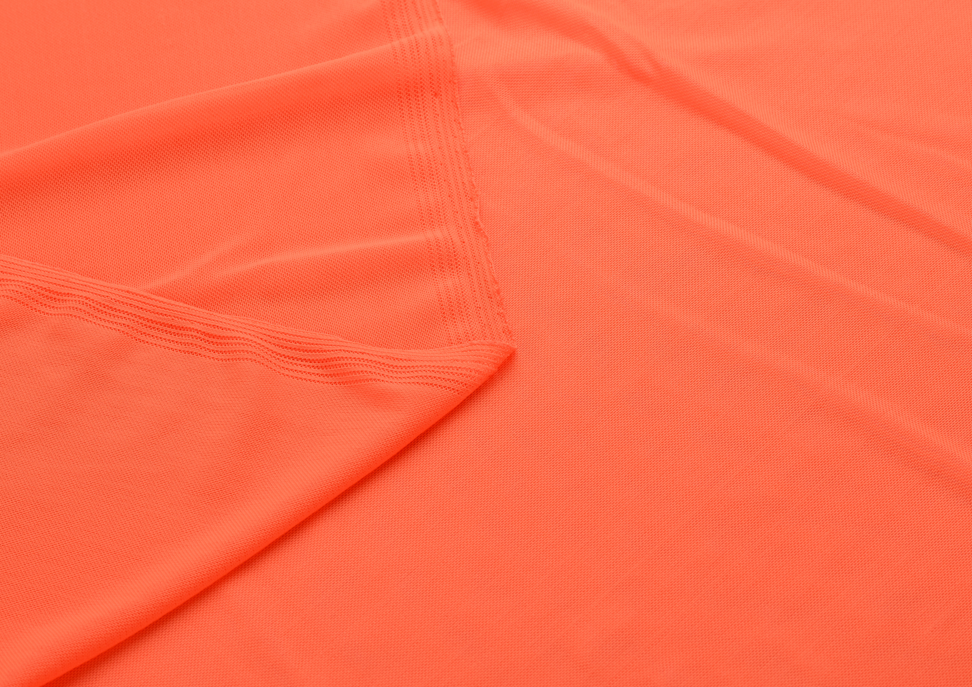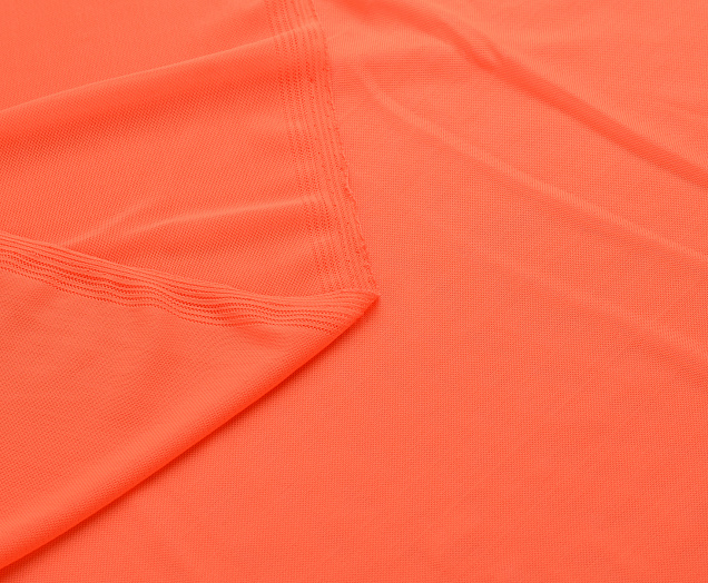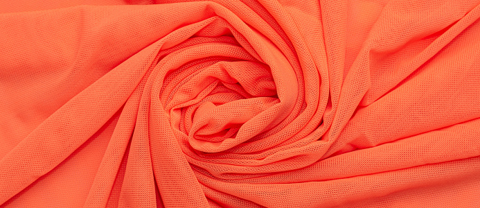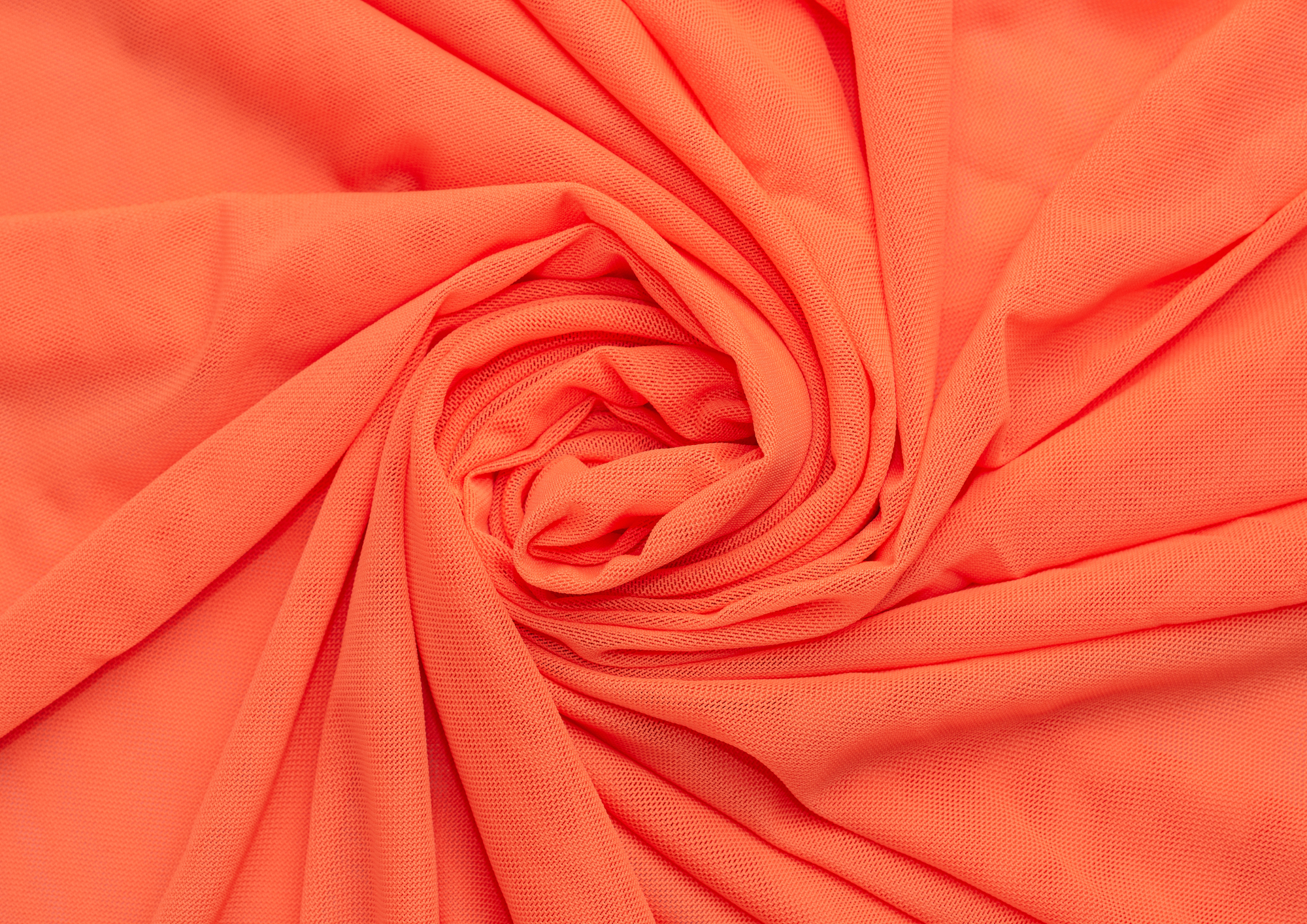 Ткань трикотажная сеточка Лиана мелкая. цв. неоновый оранжевый