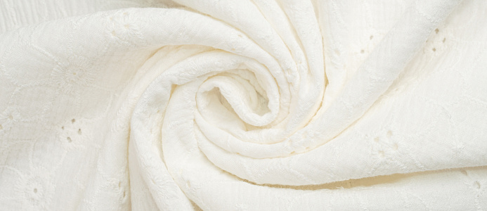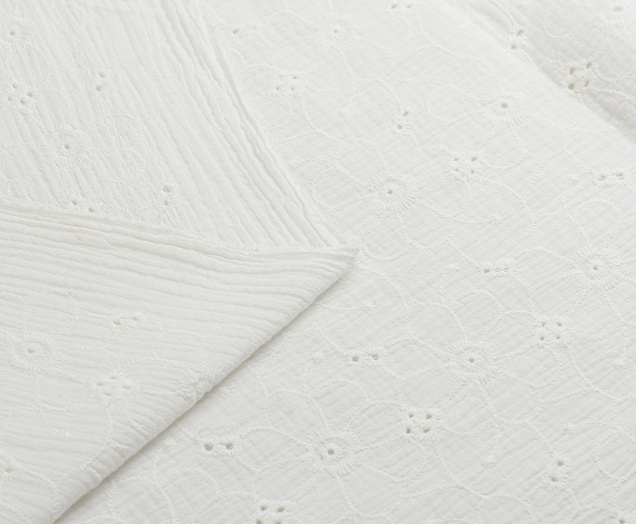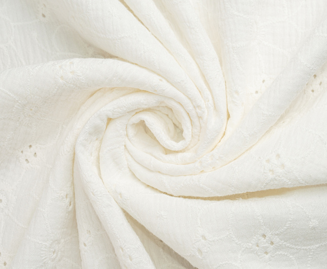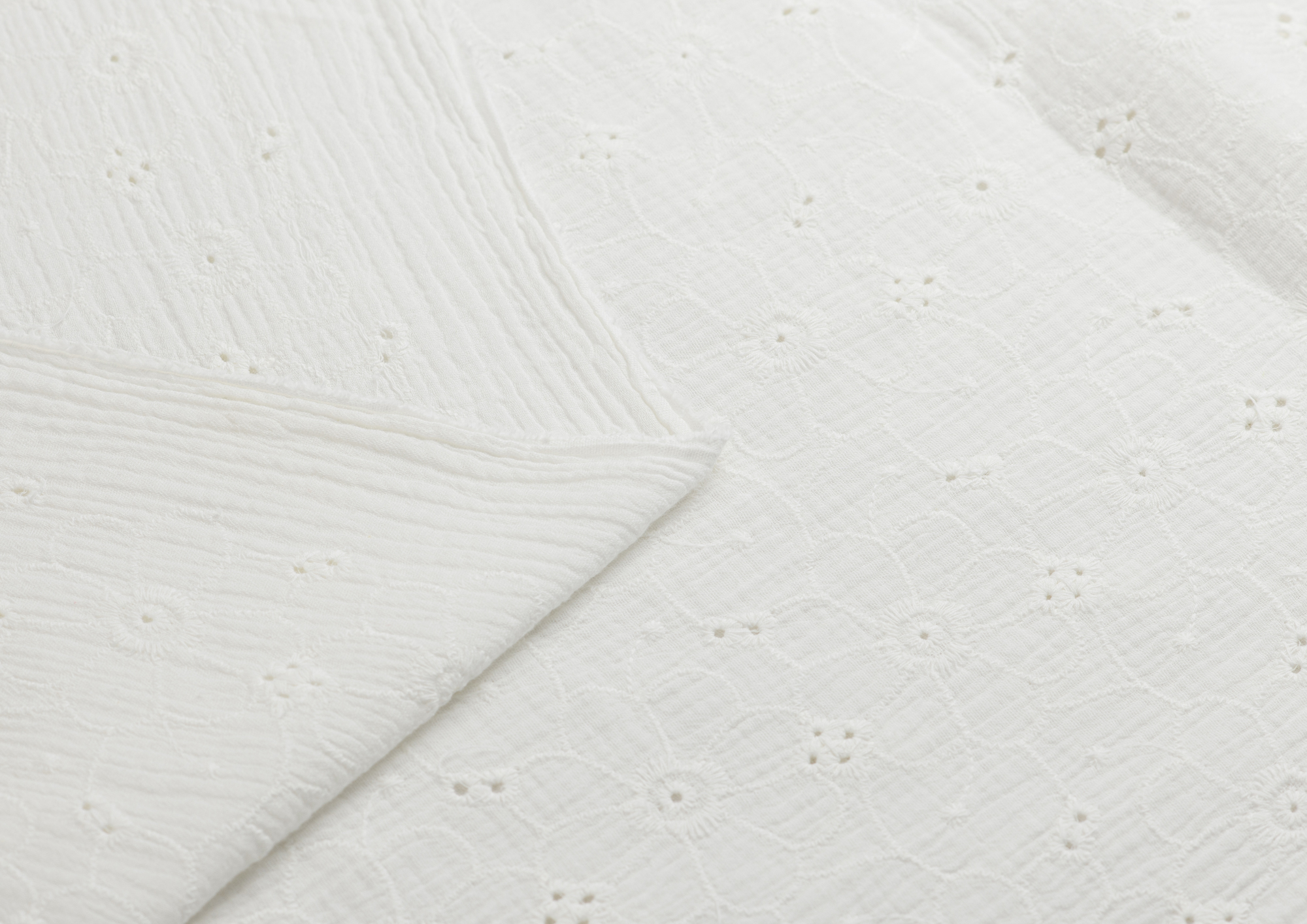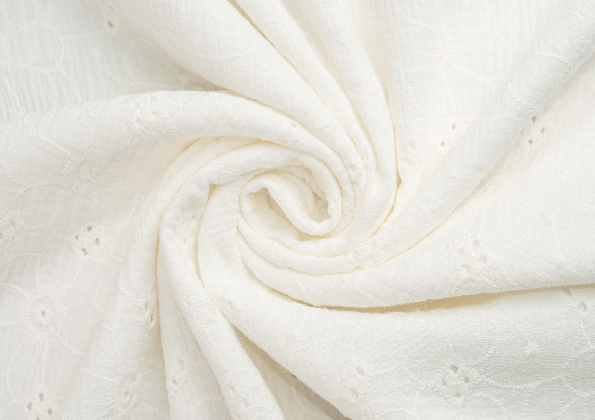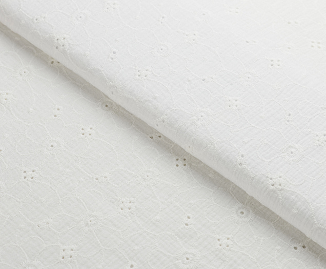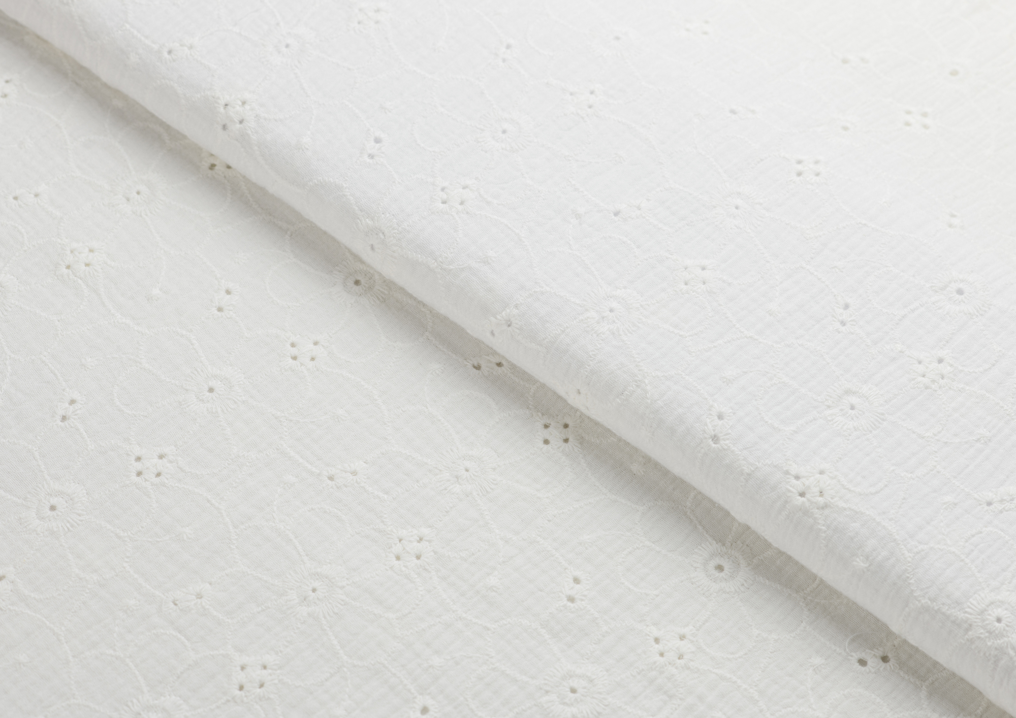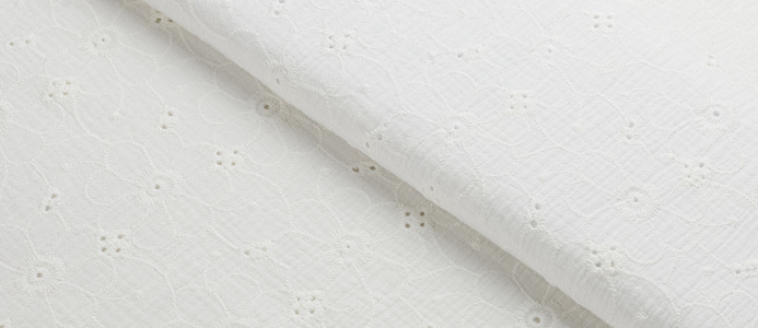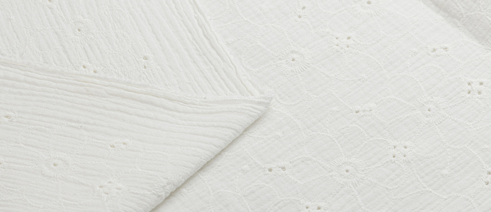 Муслин -100% натуральная хлопковая ткань . Ткань дышащая, хорошо впитывает влагу . Мягкая , приятная на ощупь и очень комфортная. По всему полотну вышивка-цветы. Отлично подходит для детских изделий - слипы, распашонки, пеленки, а так же для домашних изделий и повседневной одежды , как для детей так и для взрослых .