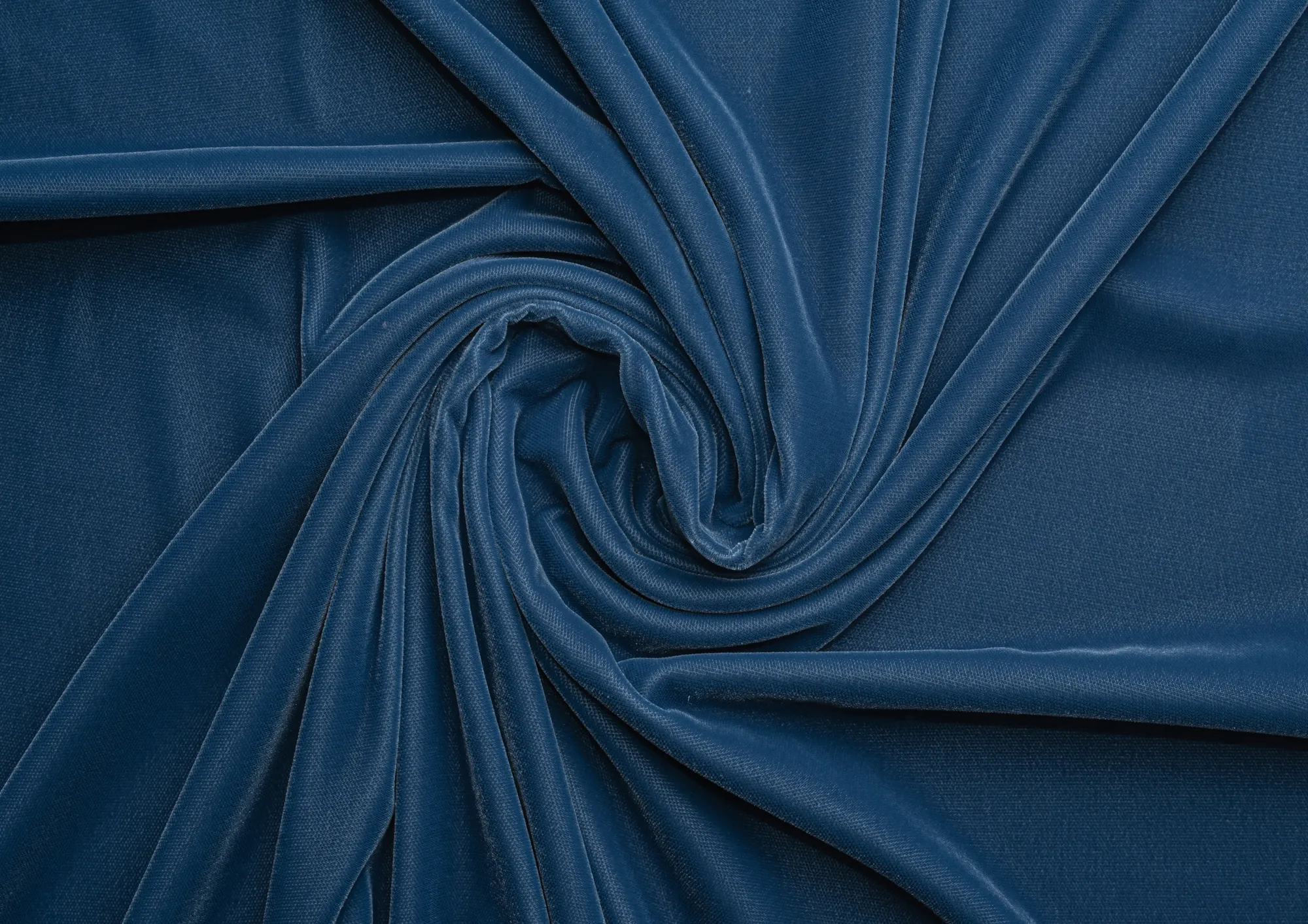 Мягкая, приятная, эластичная ткань . Лицевая сторона бархатная, ворсосвая, изнанка гладная . Подходит для пошива как повседневных , так и дорогих вечерних и концертных нарядов. Плотность 295 гр/м.пог.