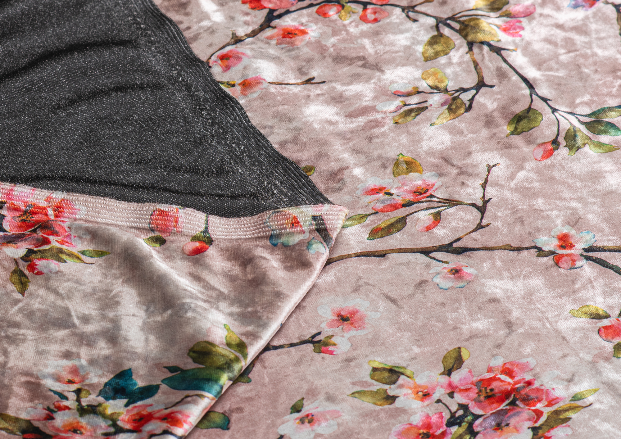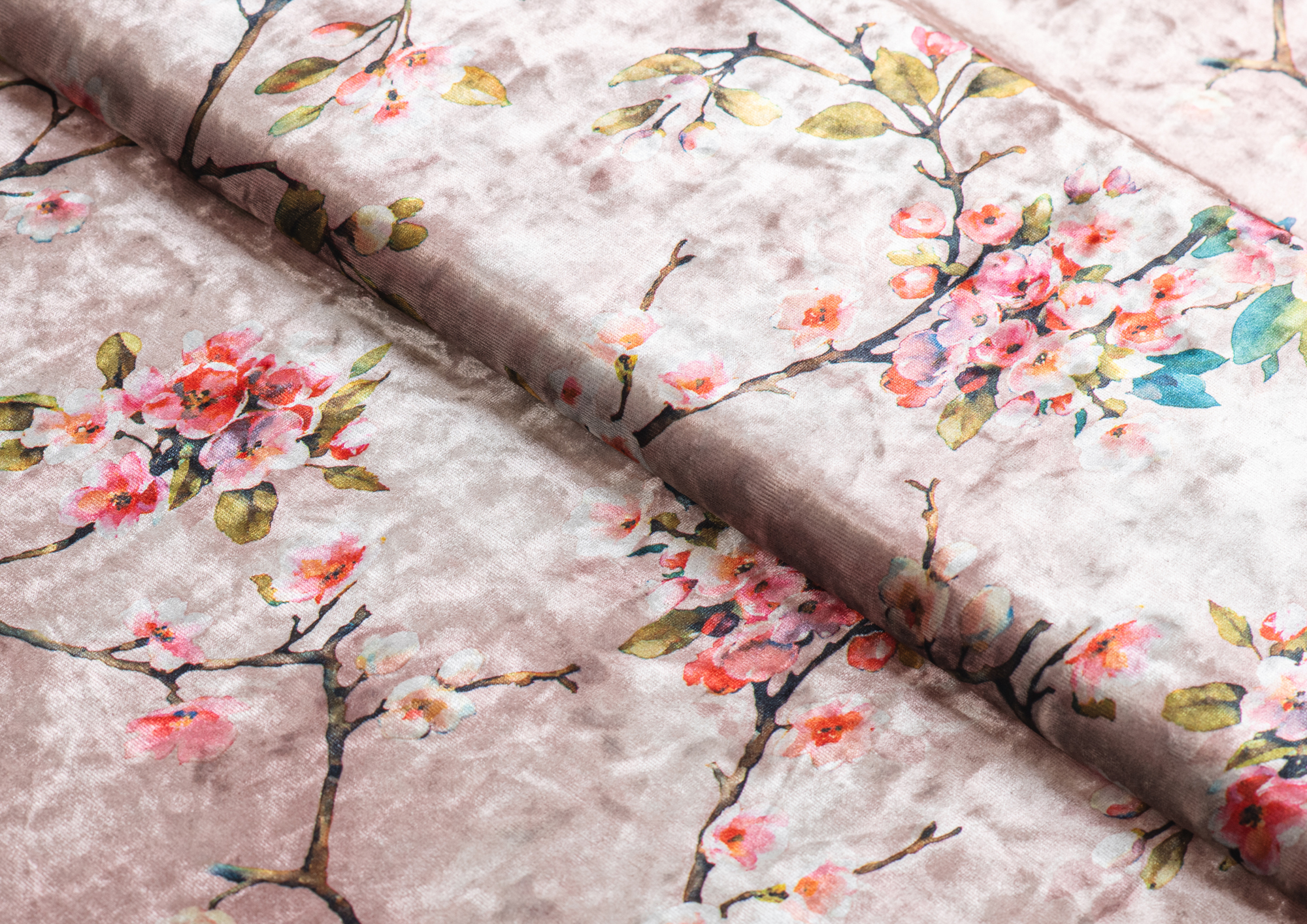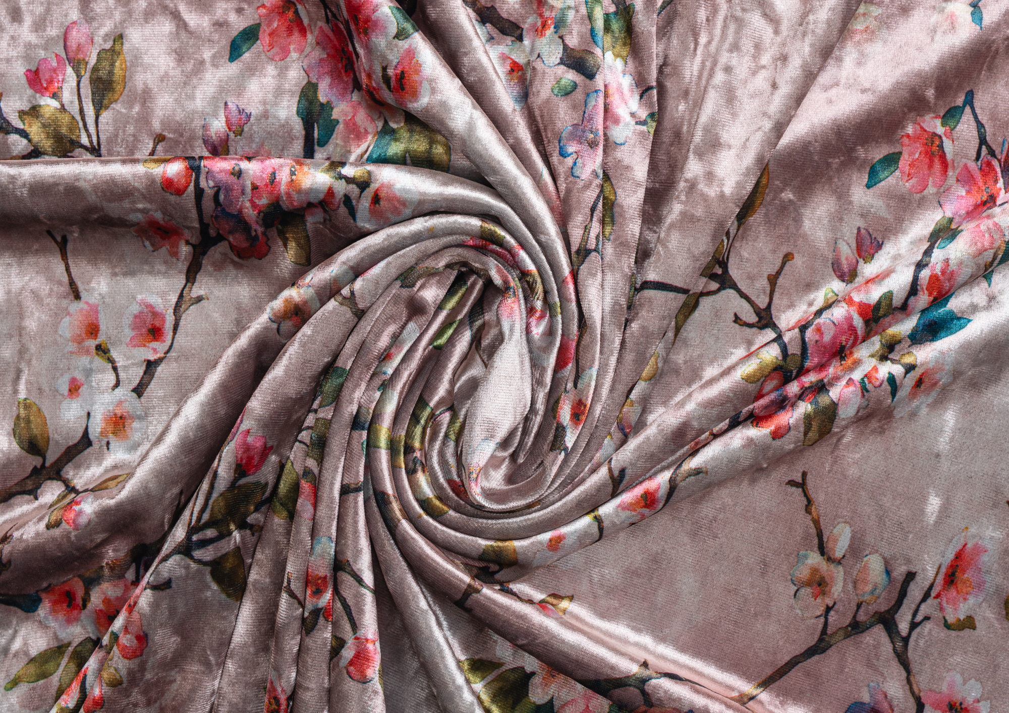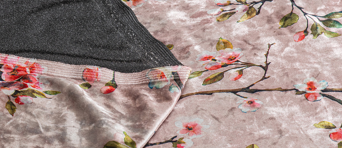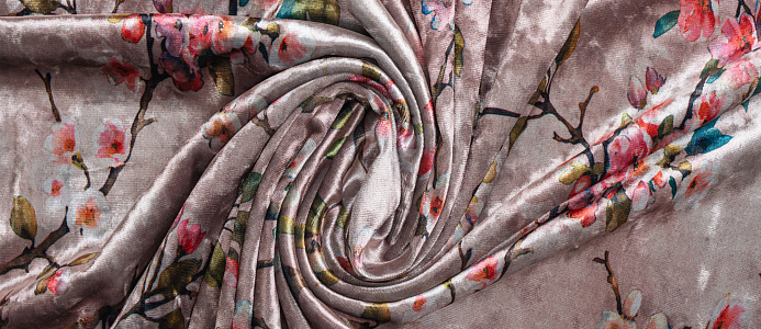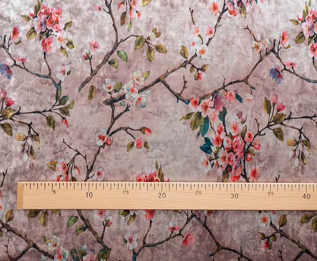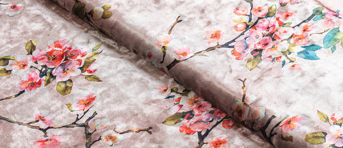 Ткань Бархат креш цв бл. розовый Веточки