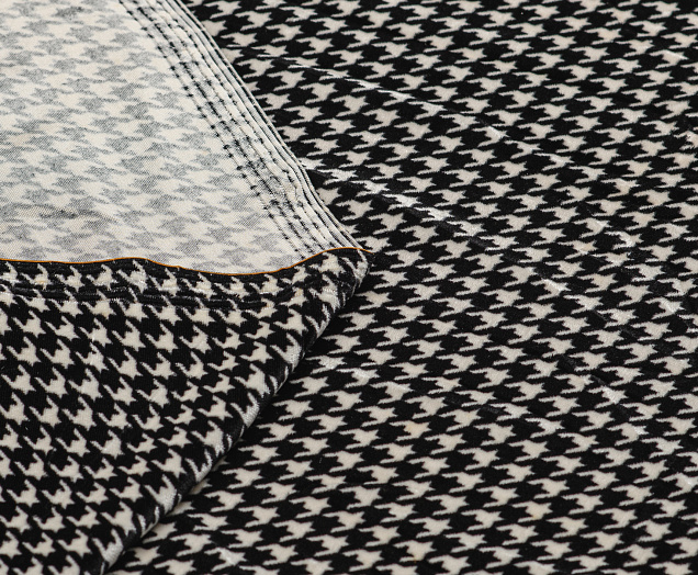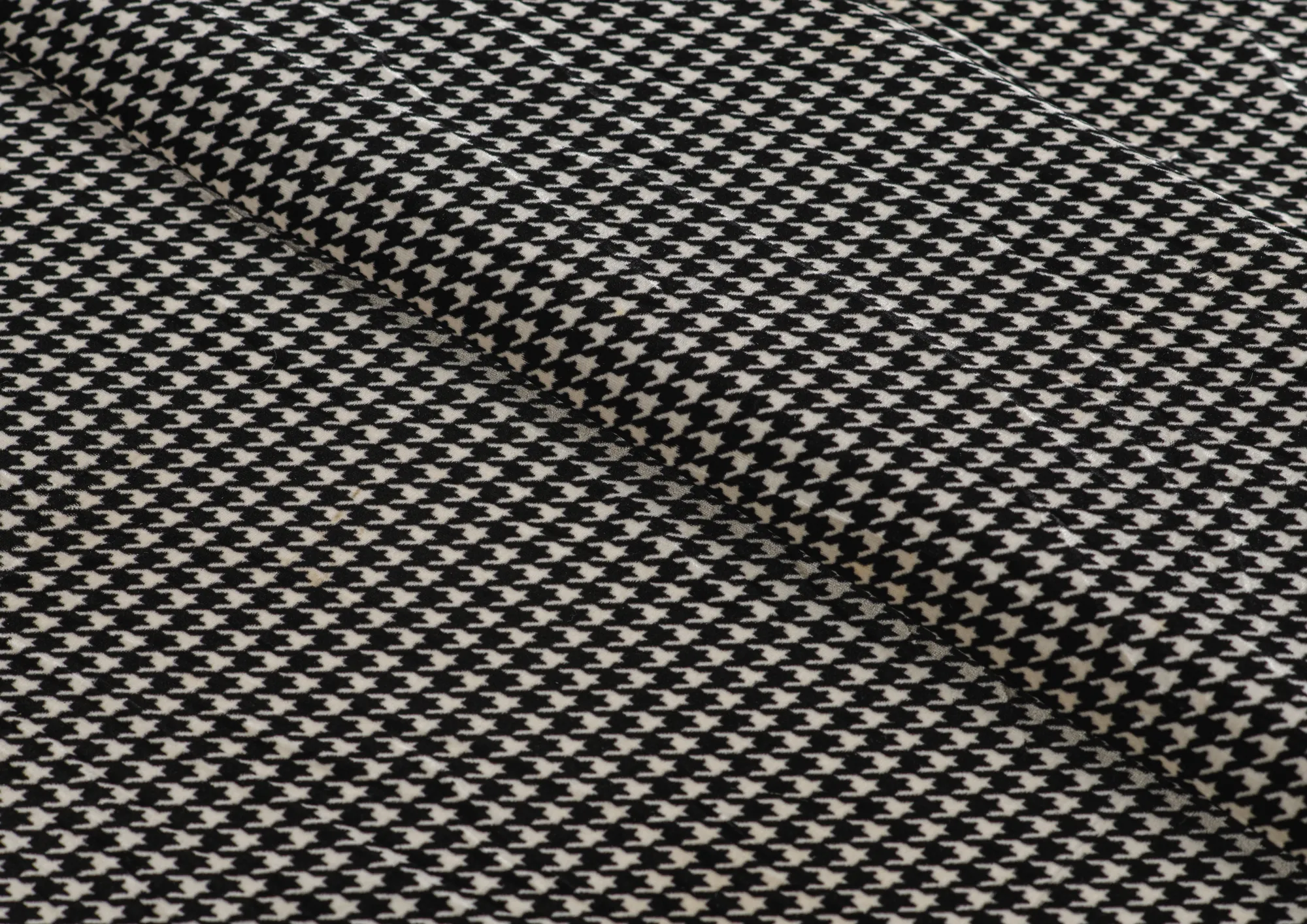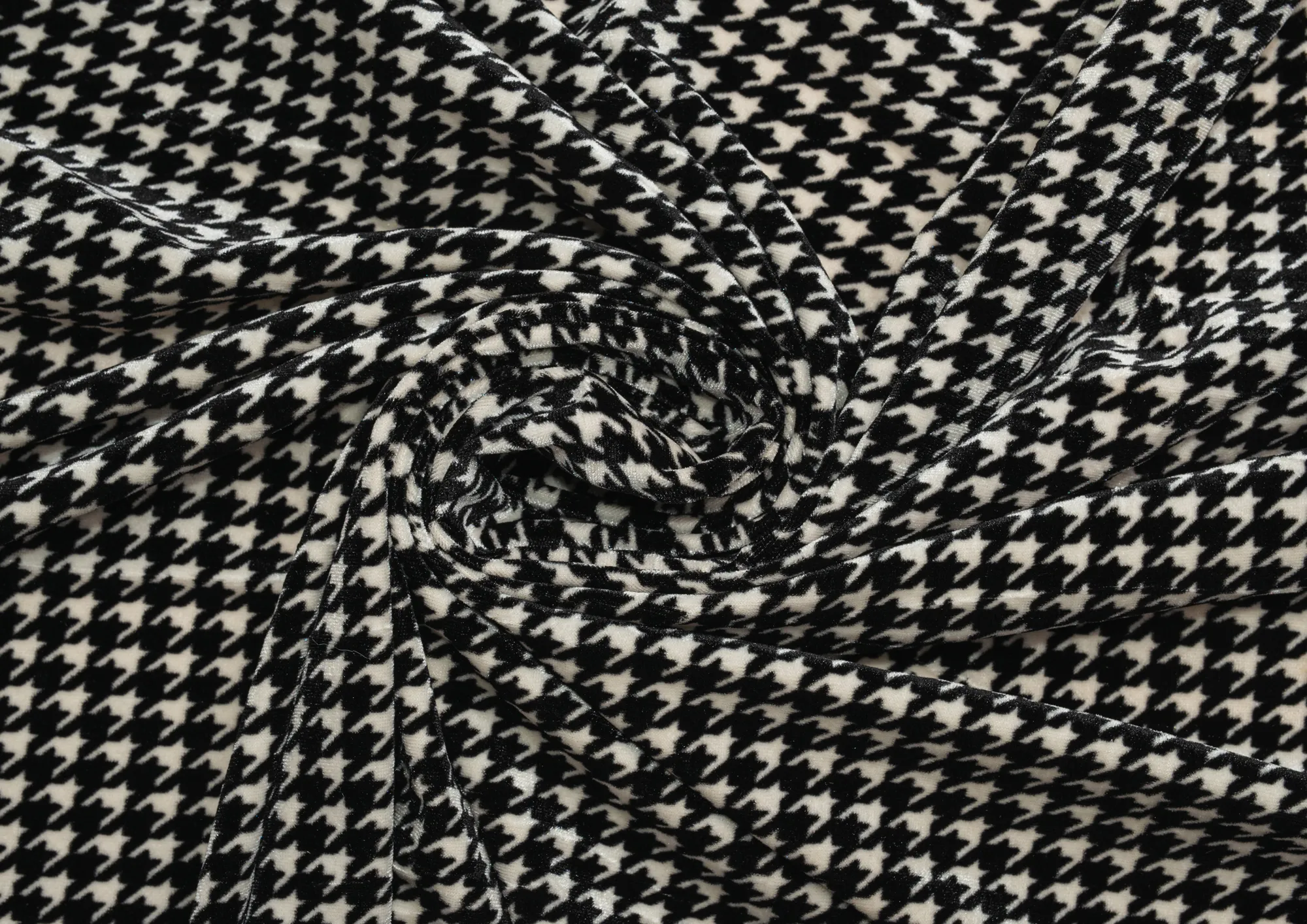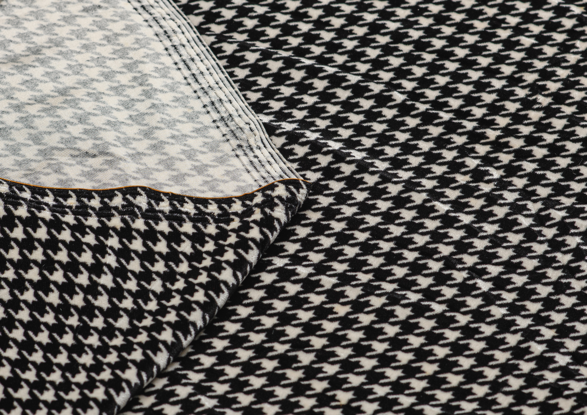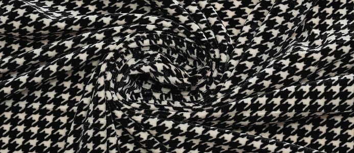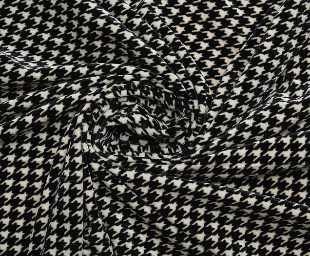Ткань Бархат стрейч "Гусиная лапка" цв. белый/черный