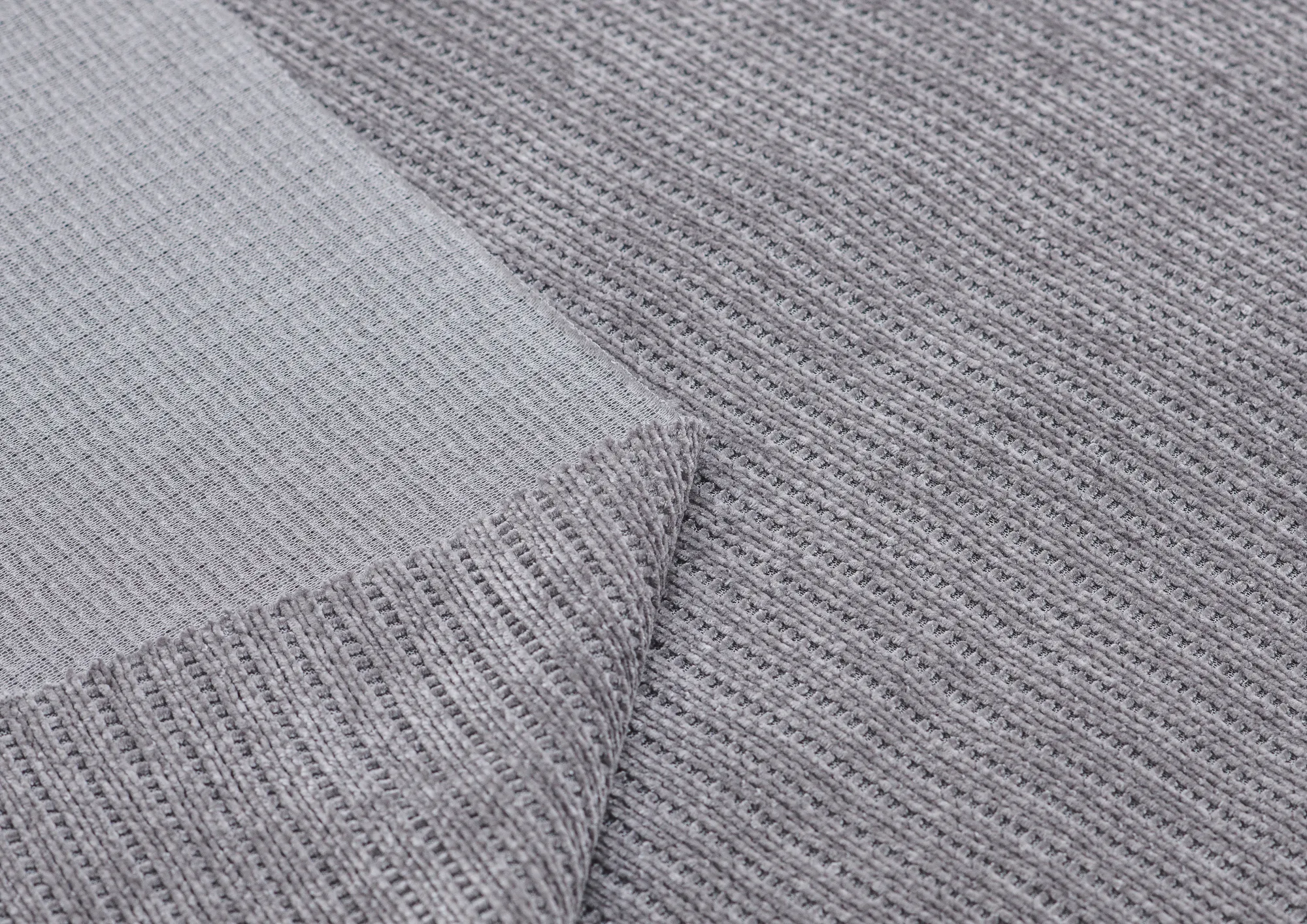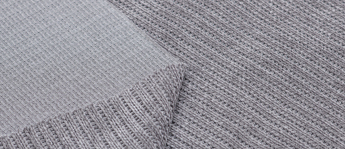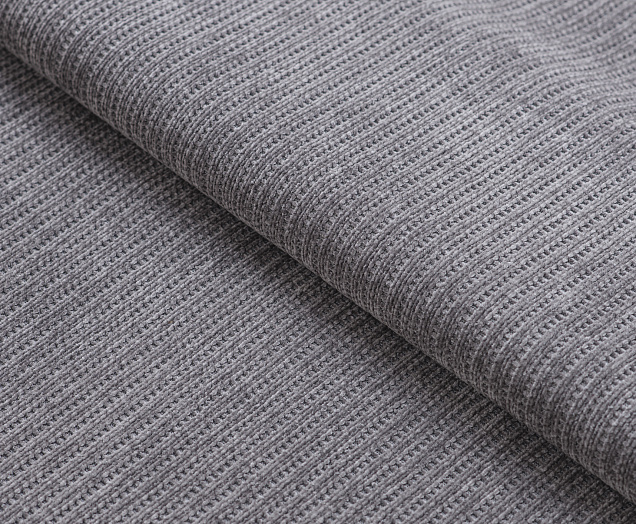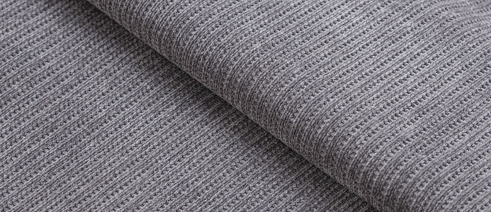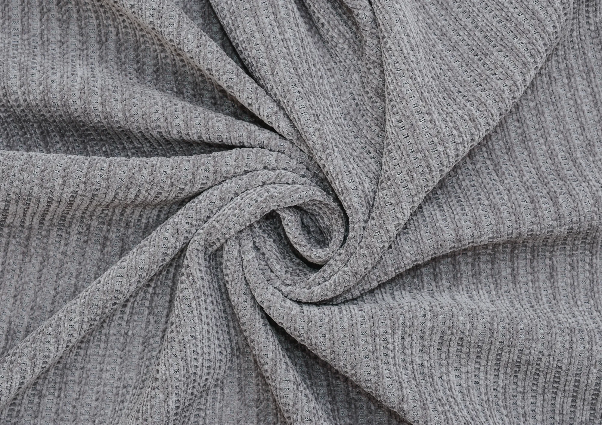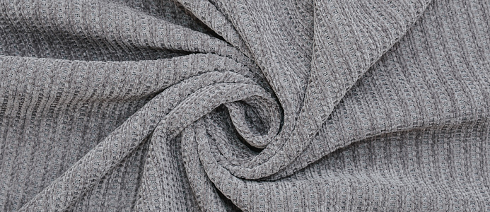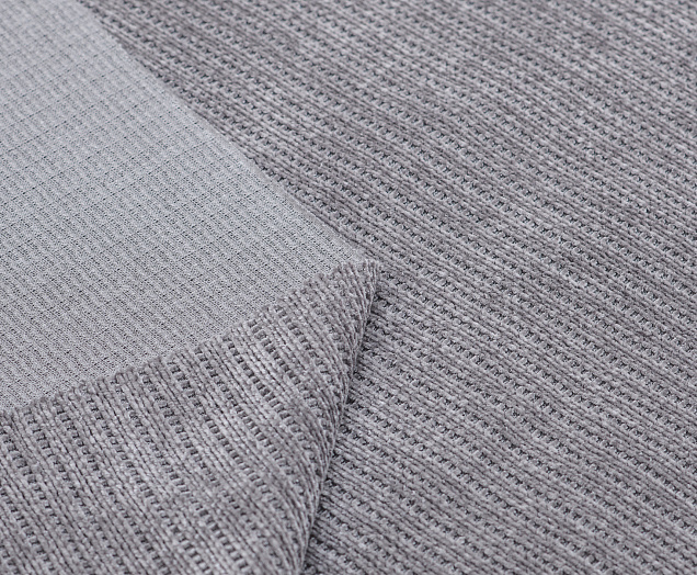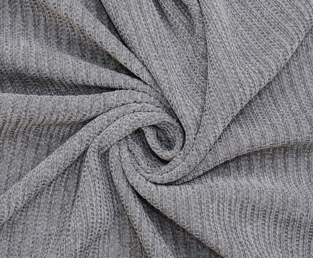 Двухслойная мягкая ткань . Изнанка гладкая трикотажная, лицевая сторона связана крупной полоской 0,5 мм шириной. Отлично подходит для пошива платья , джемпера, сарафана , а так же для декорирования интерьера.
