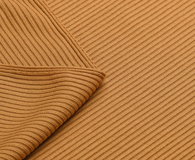 Джерси Рубчик уютное, очень мягкое, комфортное и теплое. Ткань практически не мнётся и отличается устойчивостью к деформации, т.к. в составе присутствуют волокна эластана. Идеально подойдет для пошива теплых кардиганов, свитеров, водолазок и платьев на межсезонье и зимний период.