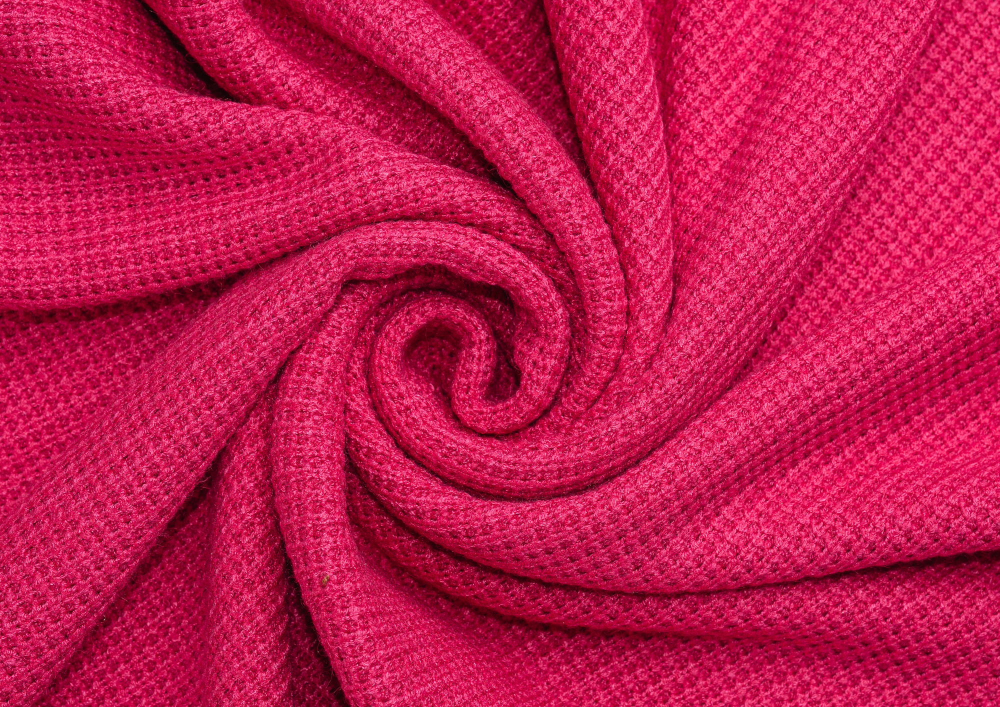 С лицевой стороны выраженный рельеф из хлопковой пряжи, изнанка гладкая. Очень приятный на ощупь, эластичный. Подойдет для джемперов, кардиганов, платьев, костюмов с брюками и юбками.