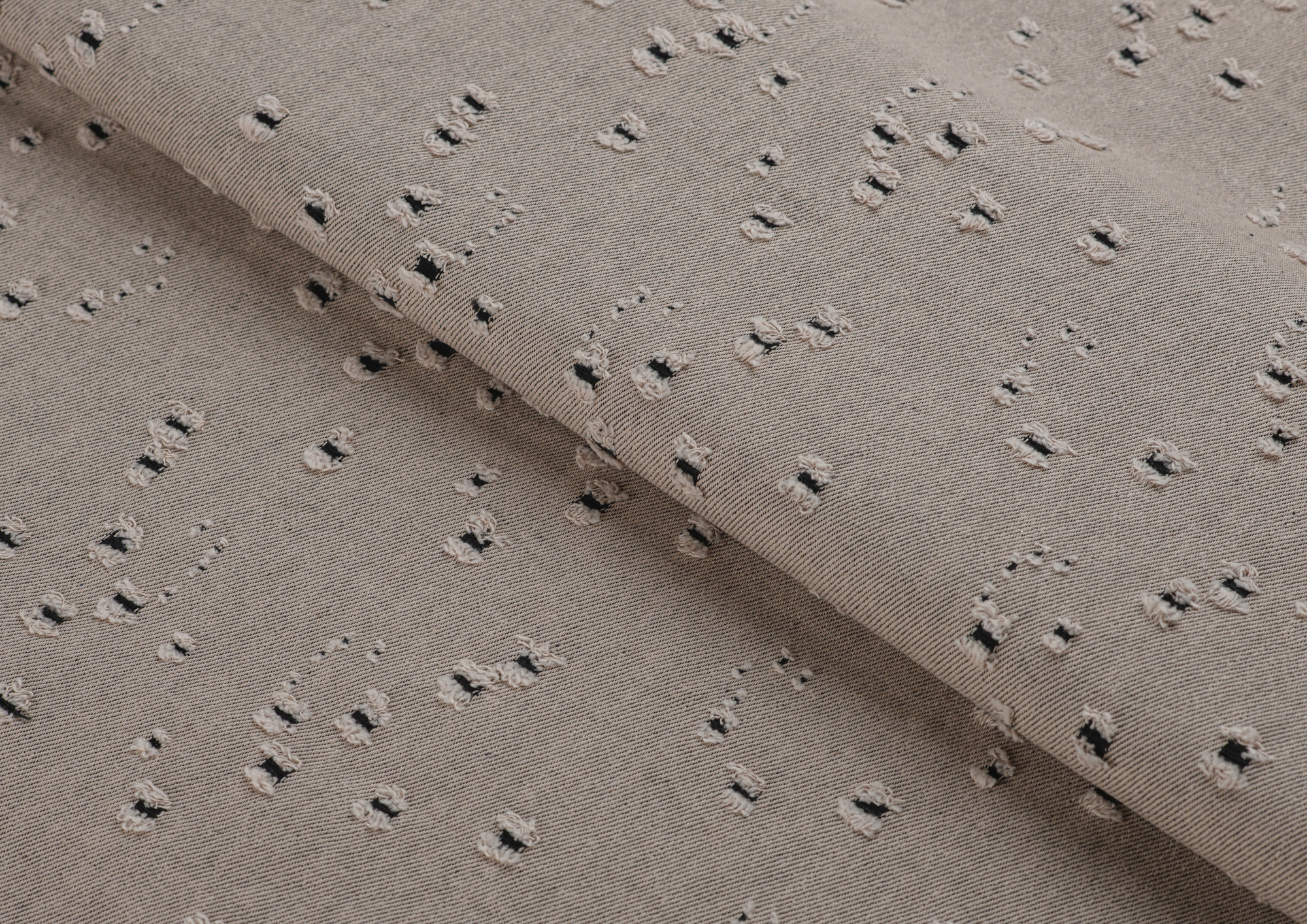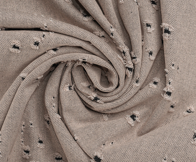 Ткань Джинс рваный 3807 бежевые маленькие дырки