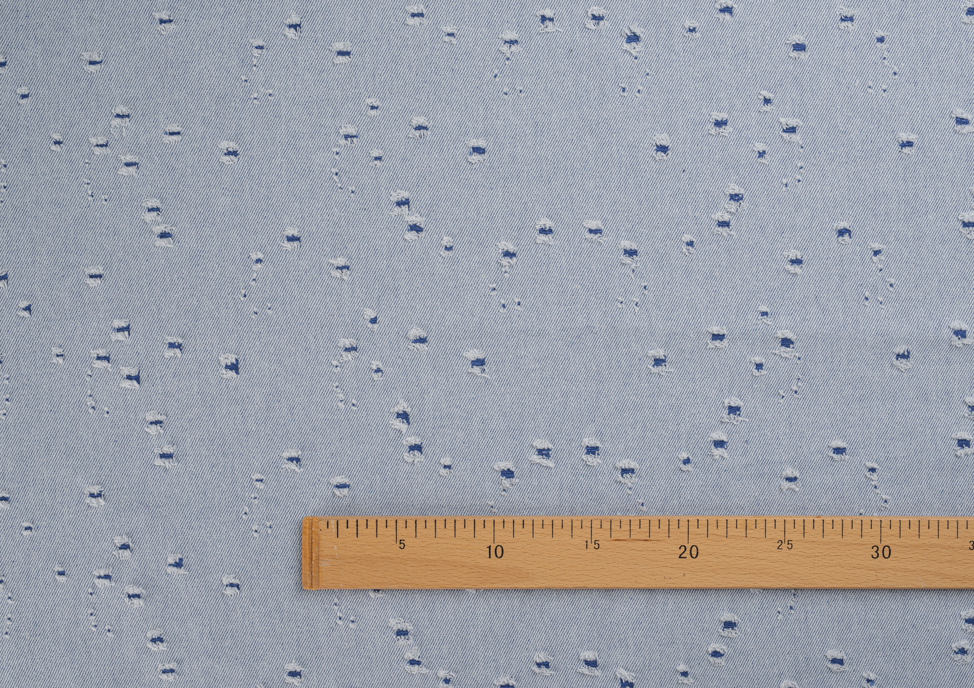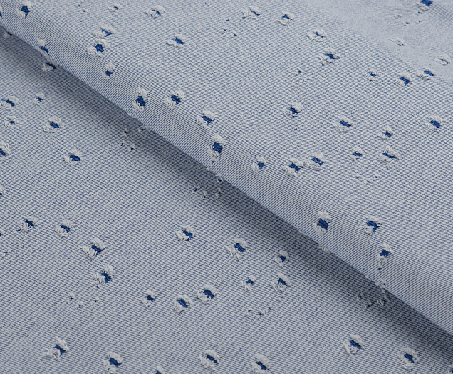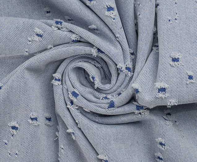 Ткань Джинс рваный 3807 голубые маленькие дырки