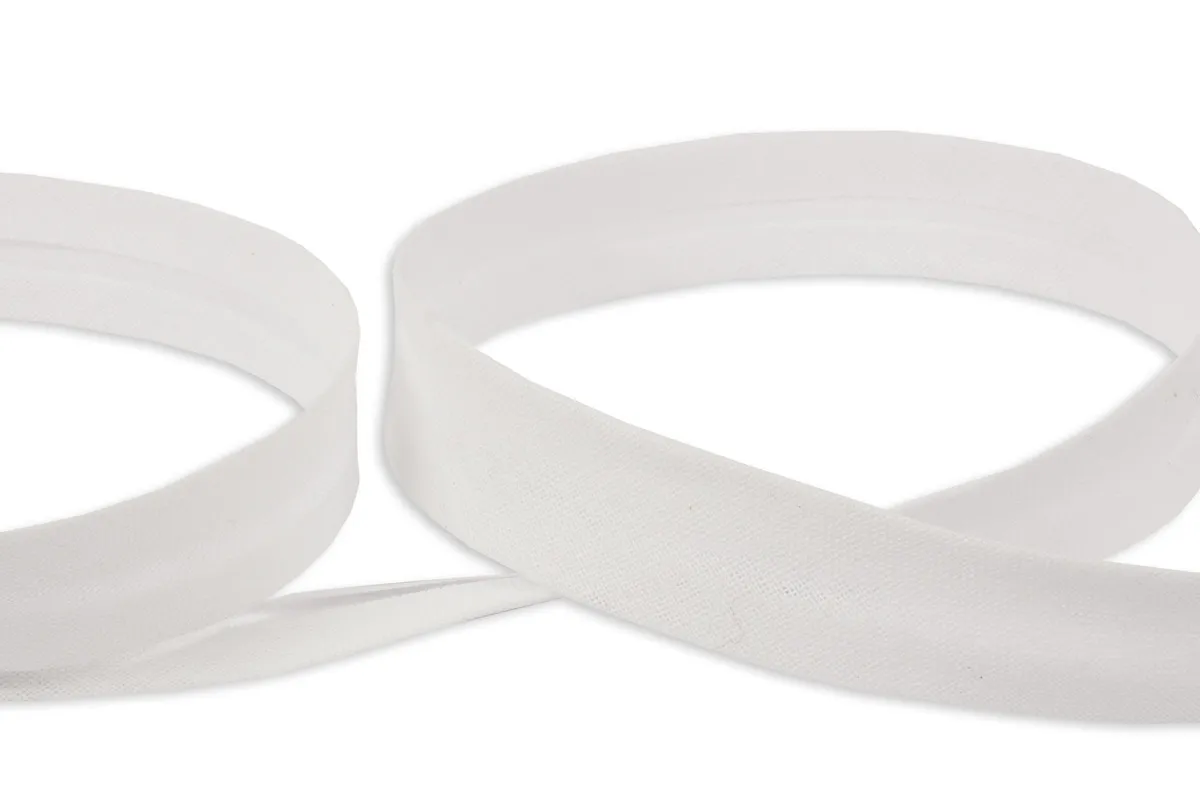 Косая бейка 100% х/б ш.15мм № 001 белый