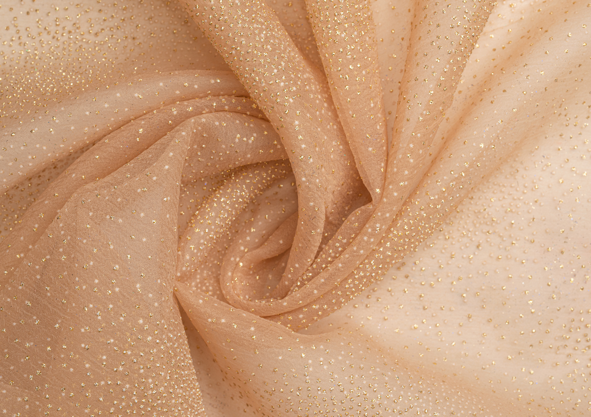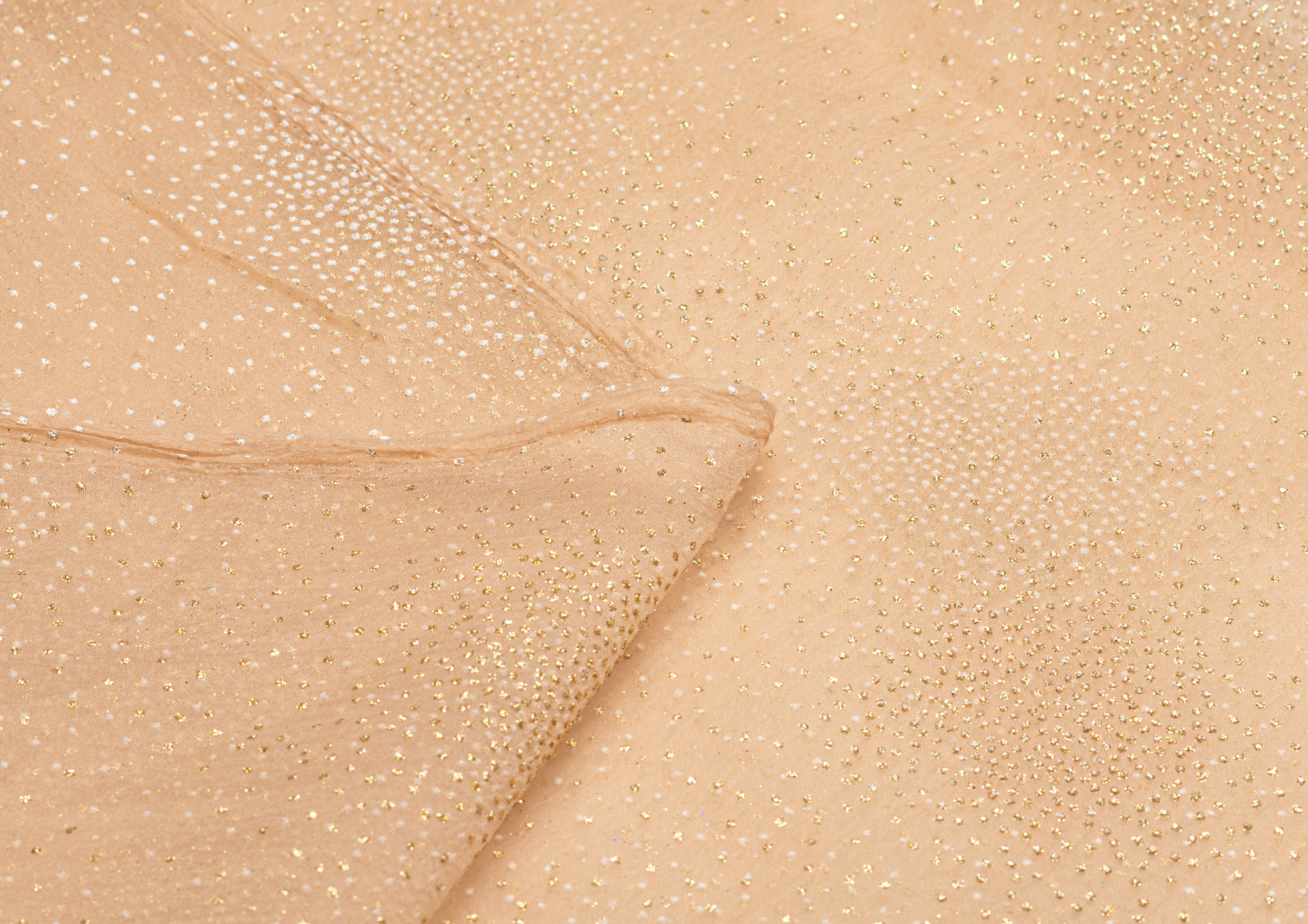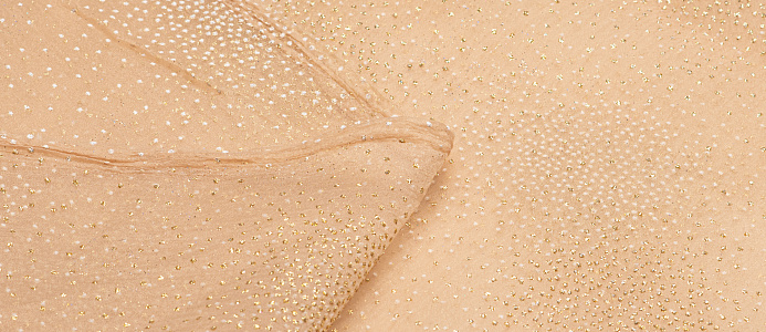 Воздушная , невесомая , нежная ткань с благородным блеском На лицевой стороне объемные точки с металлическим блеском в тон ткани. Ткань идеально подходит для выпускных , вечерних , карнавальных и новогодних костюмов , а так же для украшения помещений и банкетных залов .