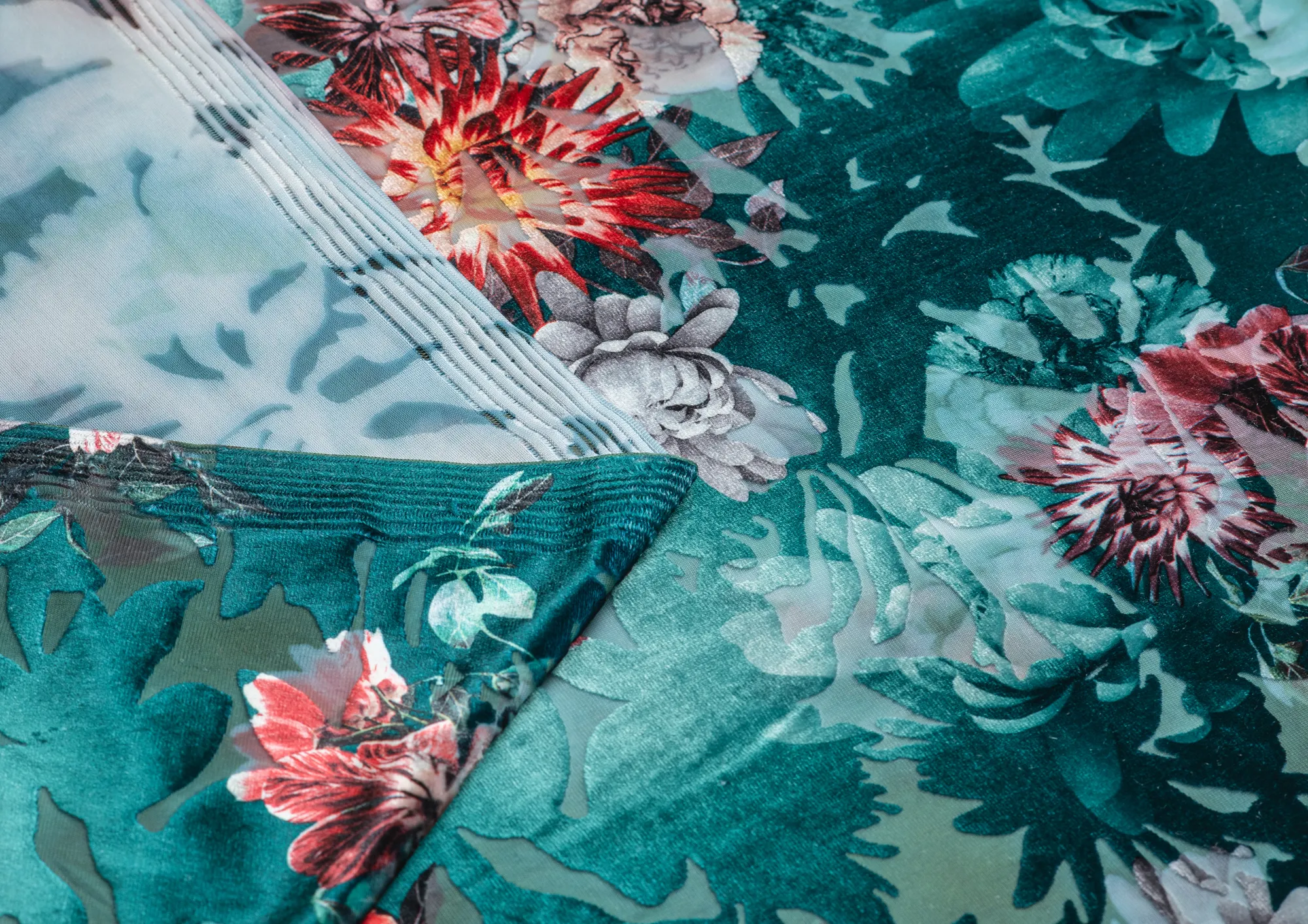 Мягкая приятная и очень уютная ткань . Лицевая сторона с ворсом , вытравленным рисунком, изнанка гладкая трикотажная. Поверхность немного с блеском . При крое обязательно нужно учитывать направление ворса! Платье из бархата всегда выглядит нарядно , отлично подходит для пошива вечернего наряда а так же для концертных выступлений .