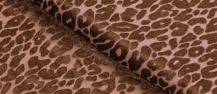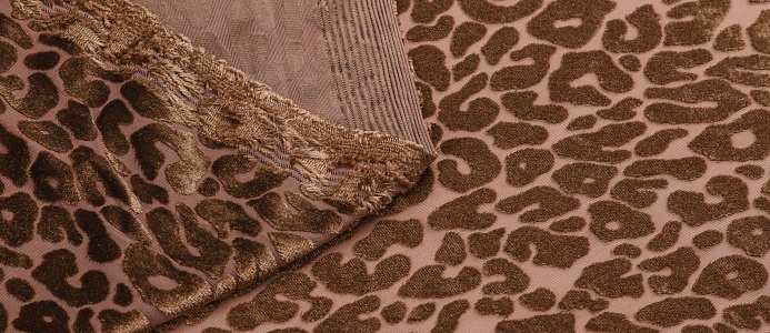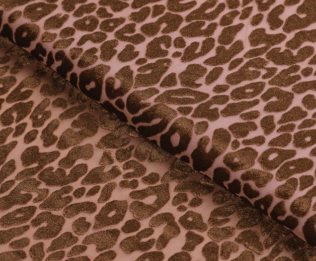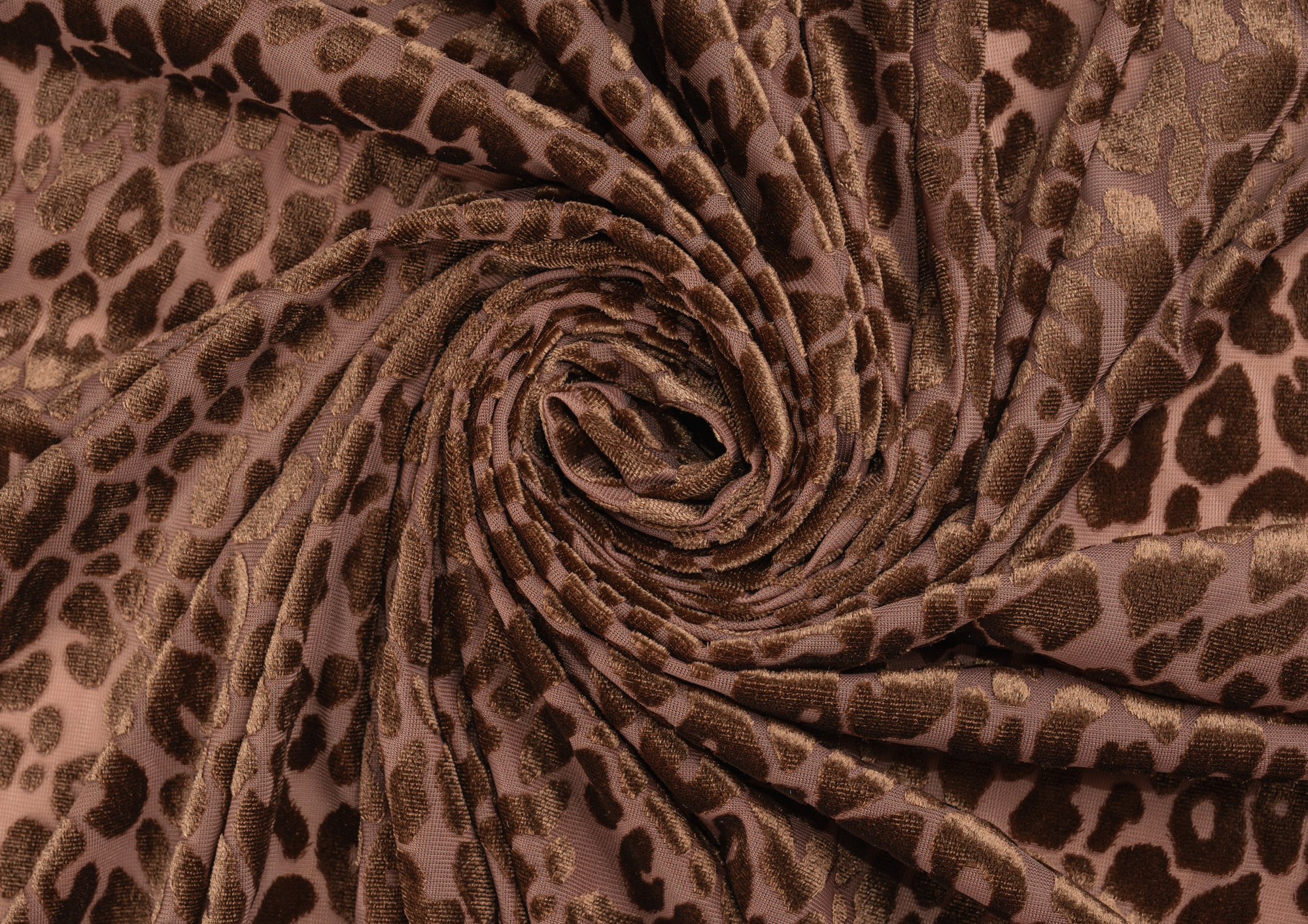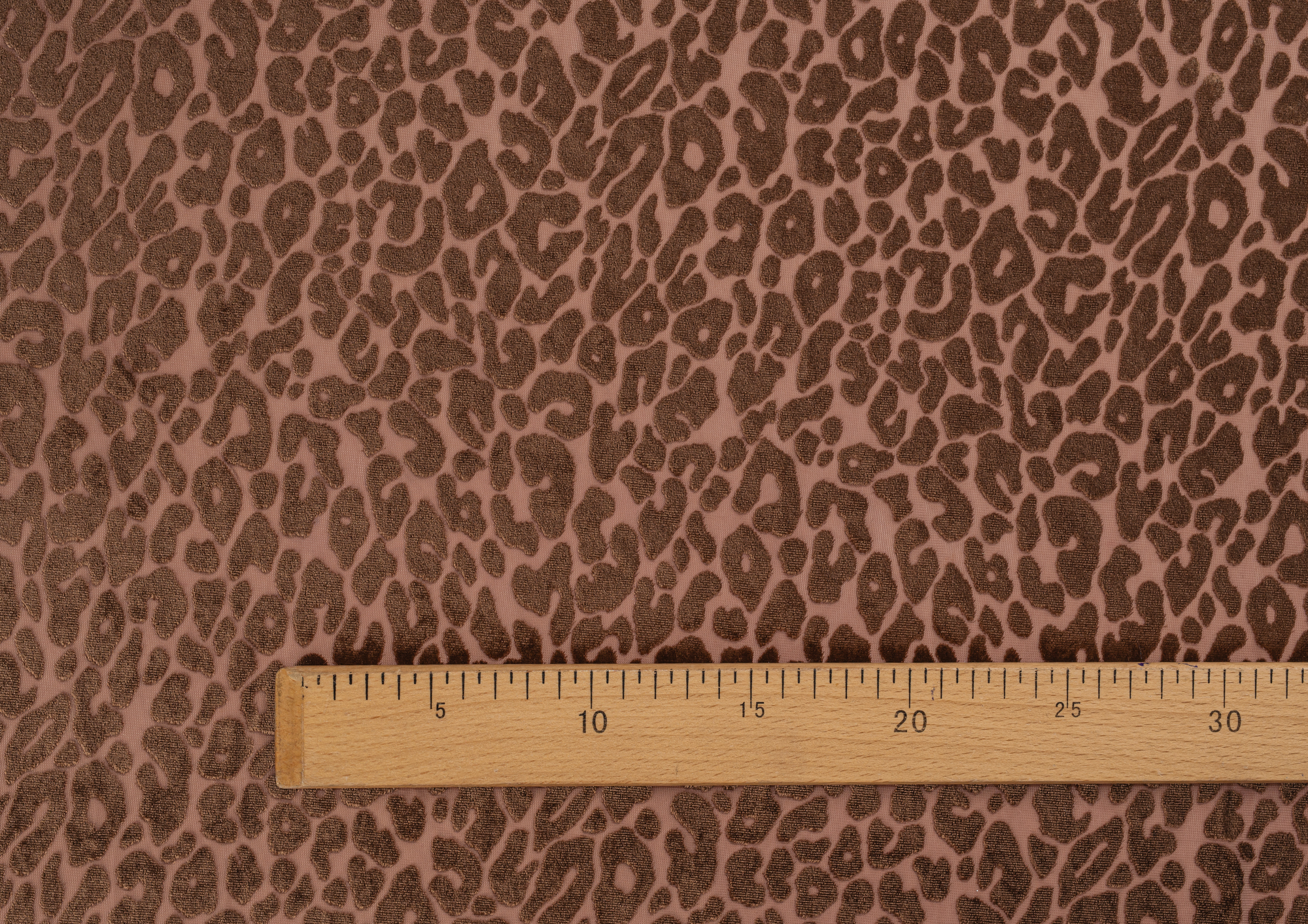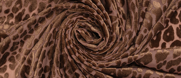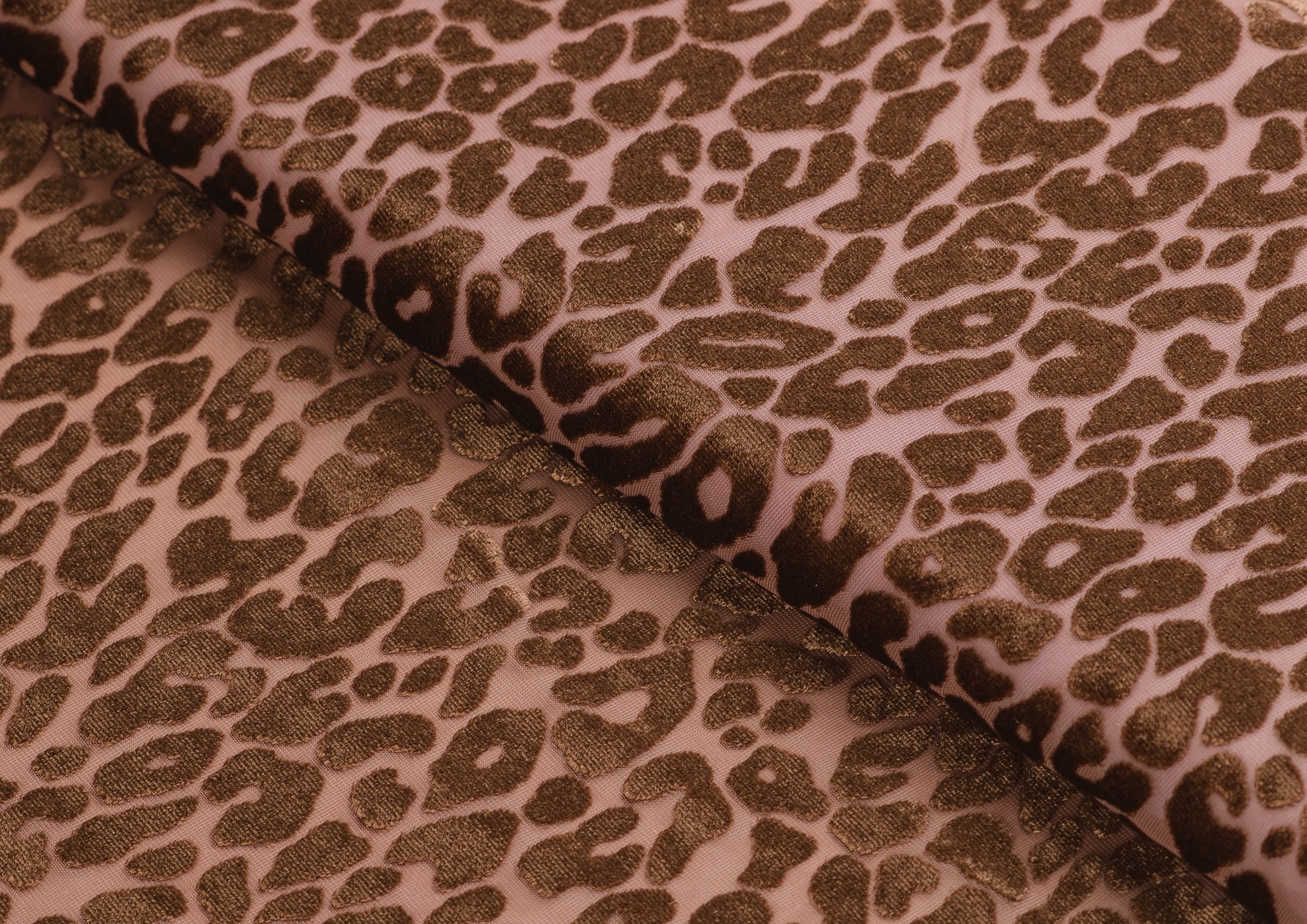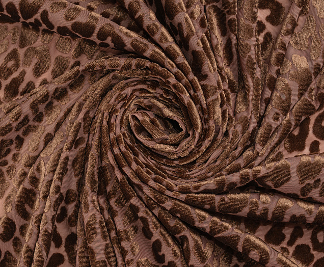 Ткань Пан бархат принт Коричневый леопард на бежевой сетке