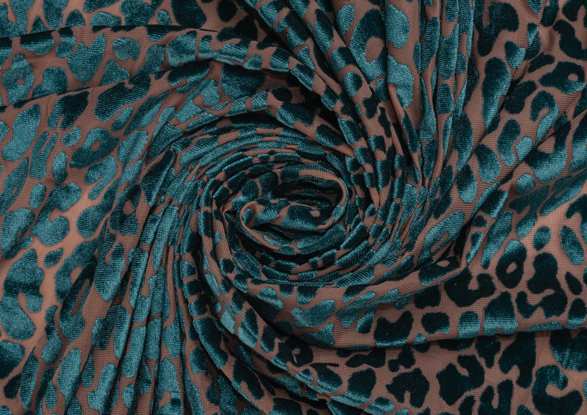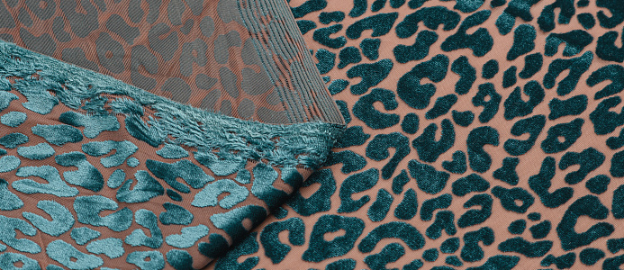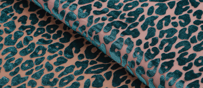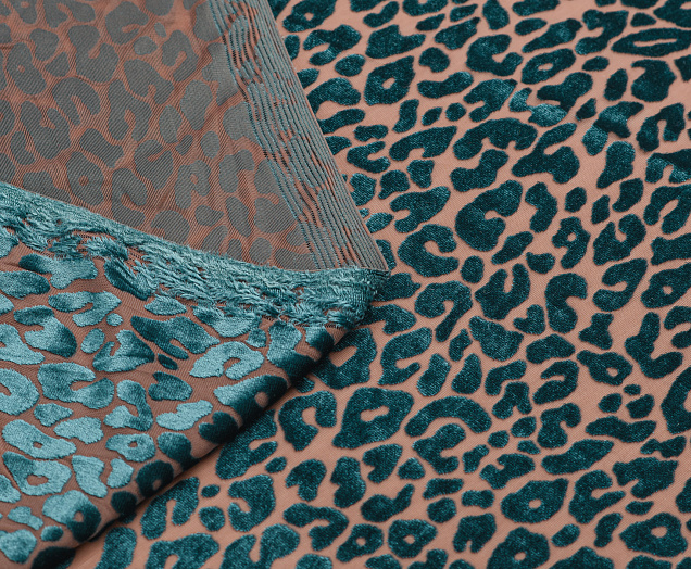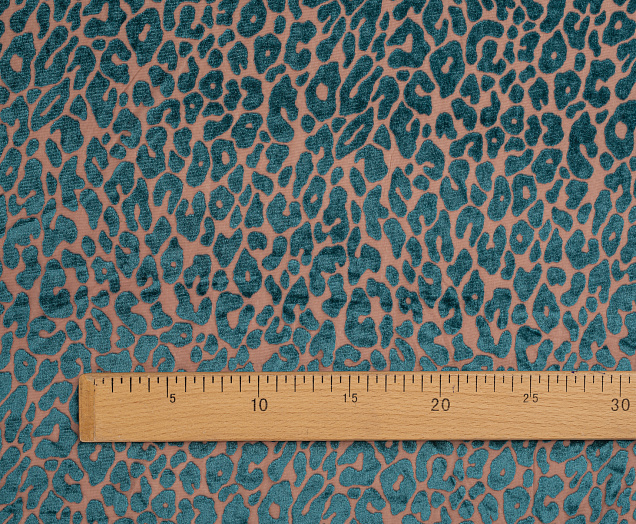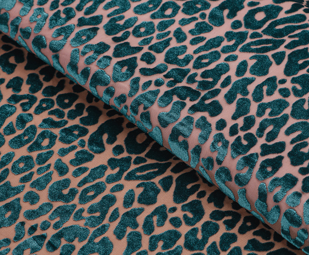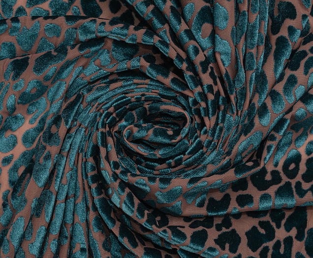Ткань Пан бархат принт Зеленый леопард на бежевой сетке