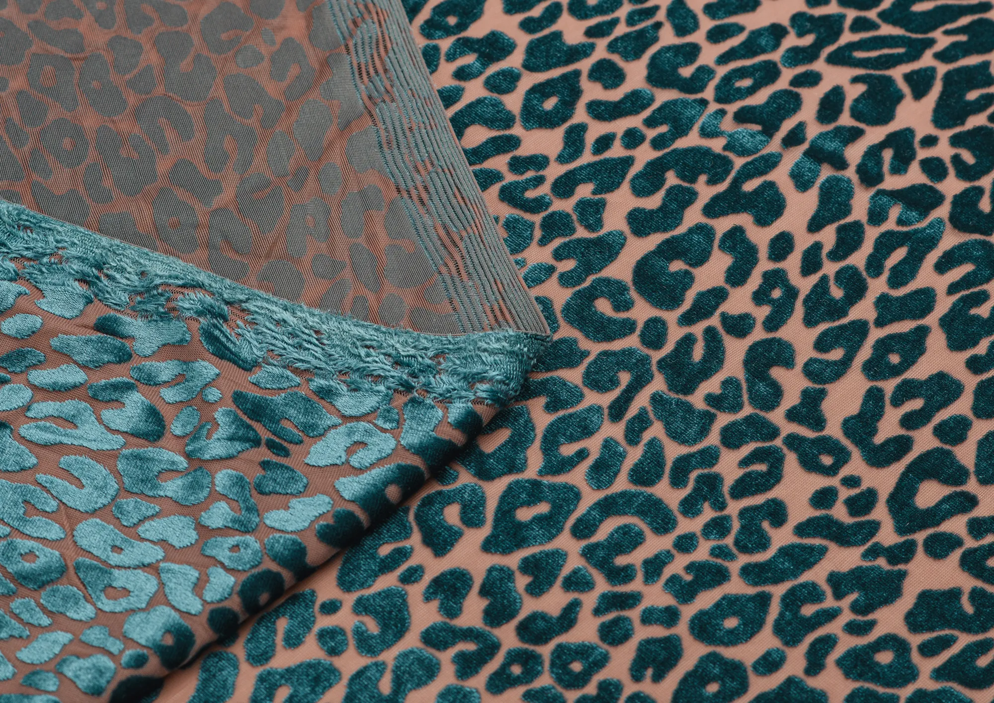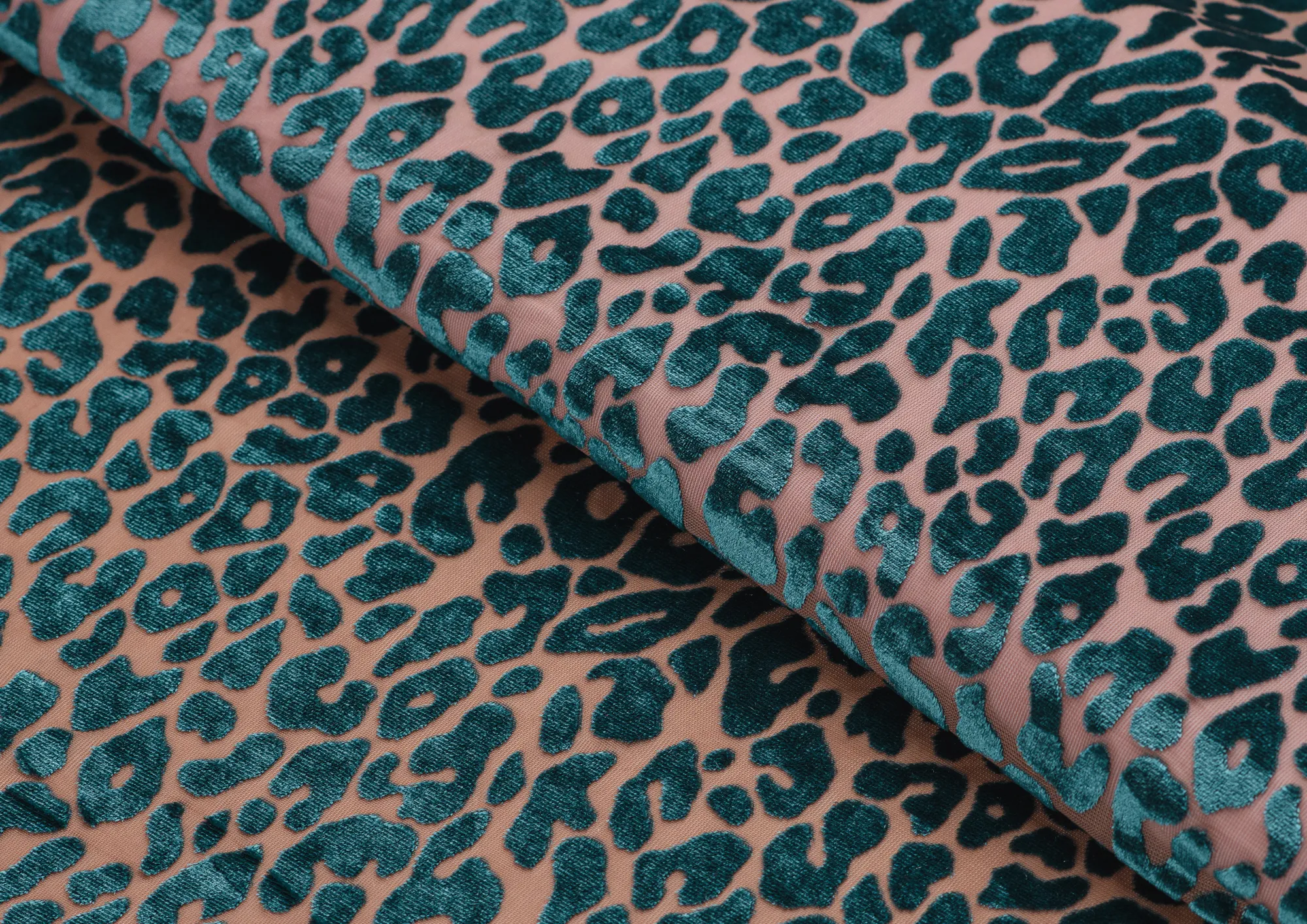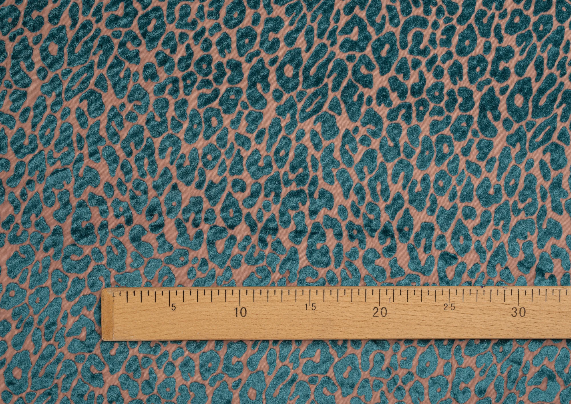 Ткань Пан бархат принт Зеленый леопард на бежевой сетке