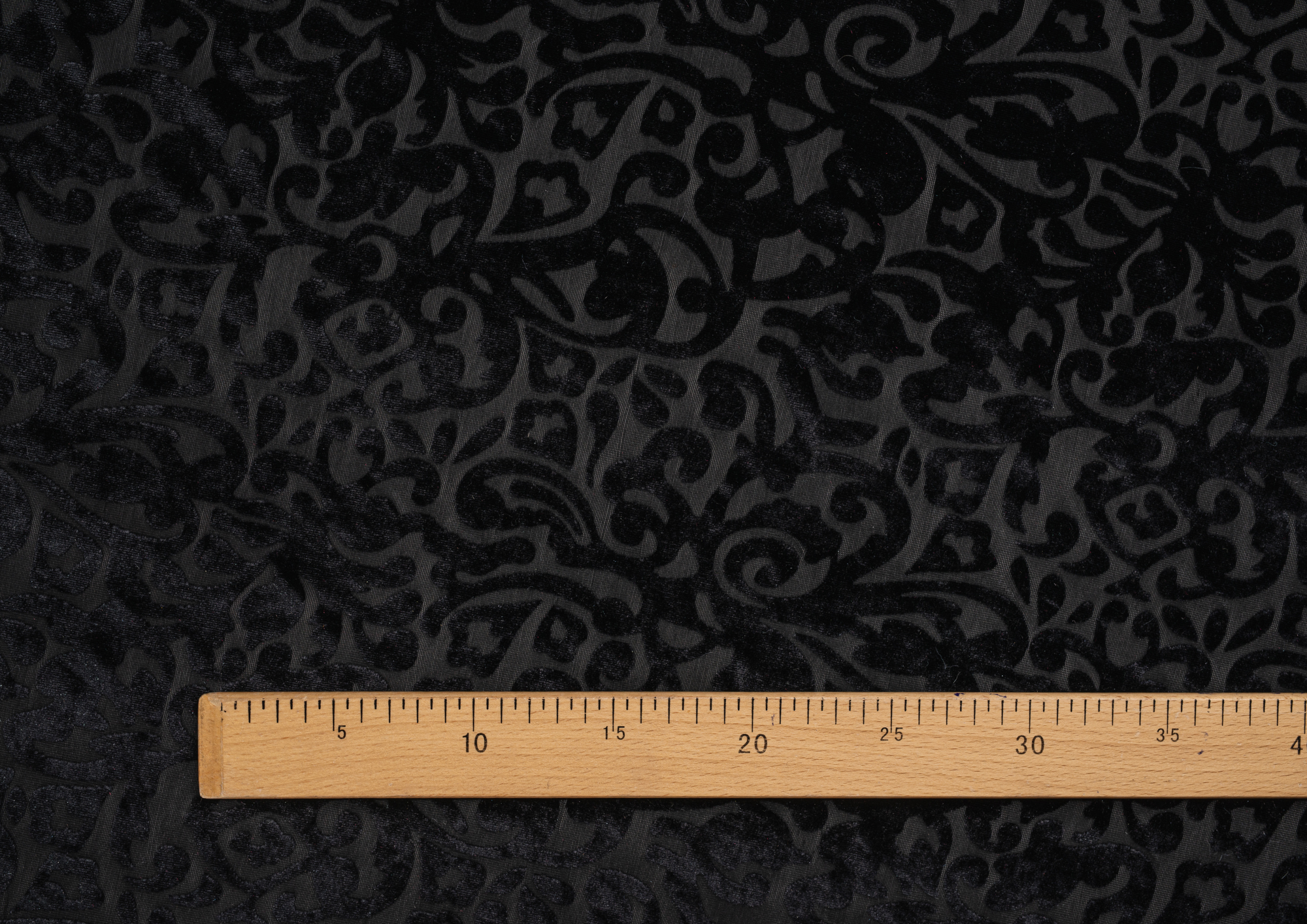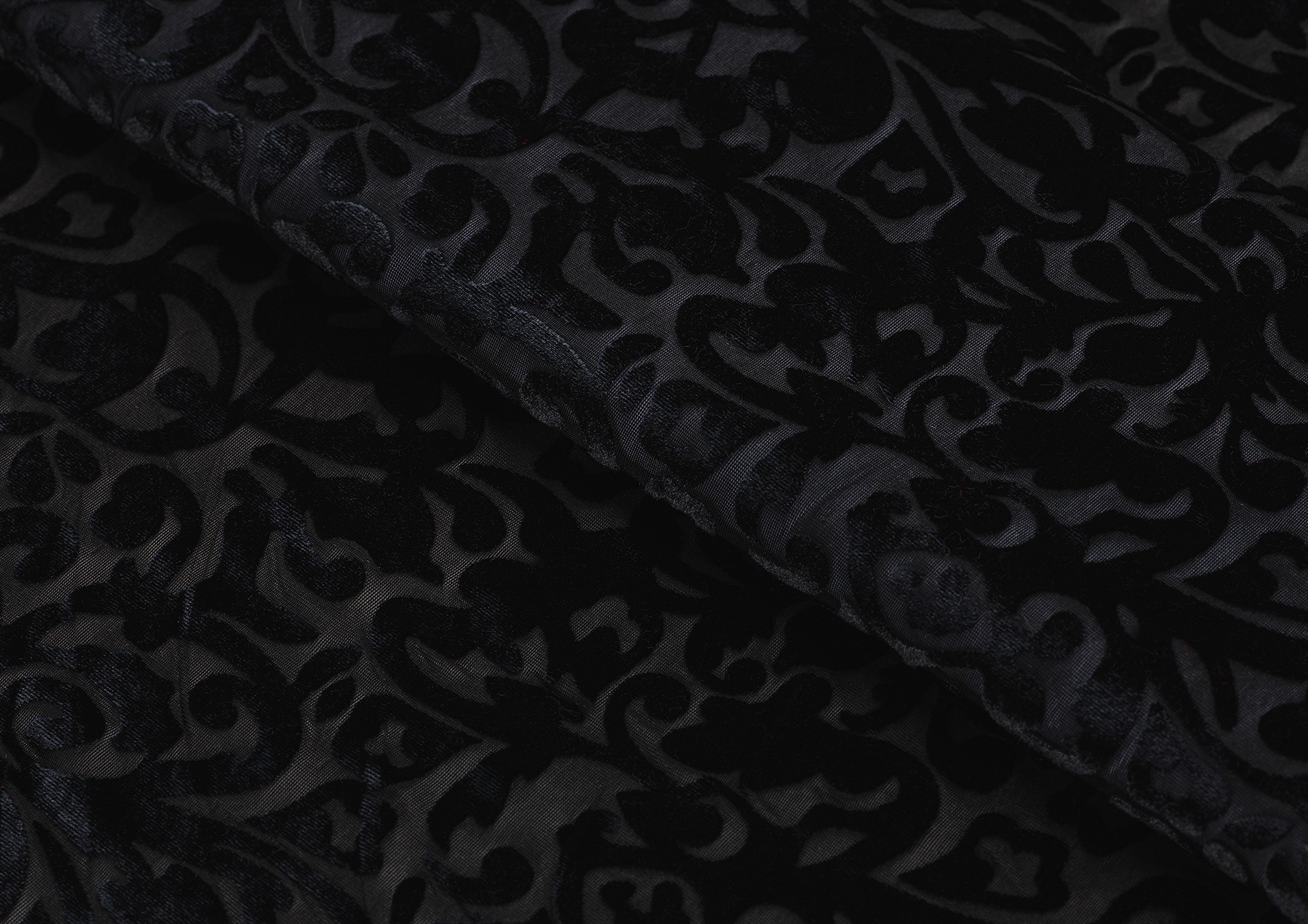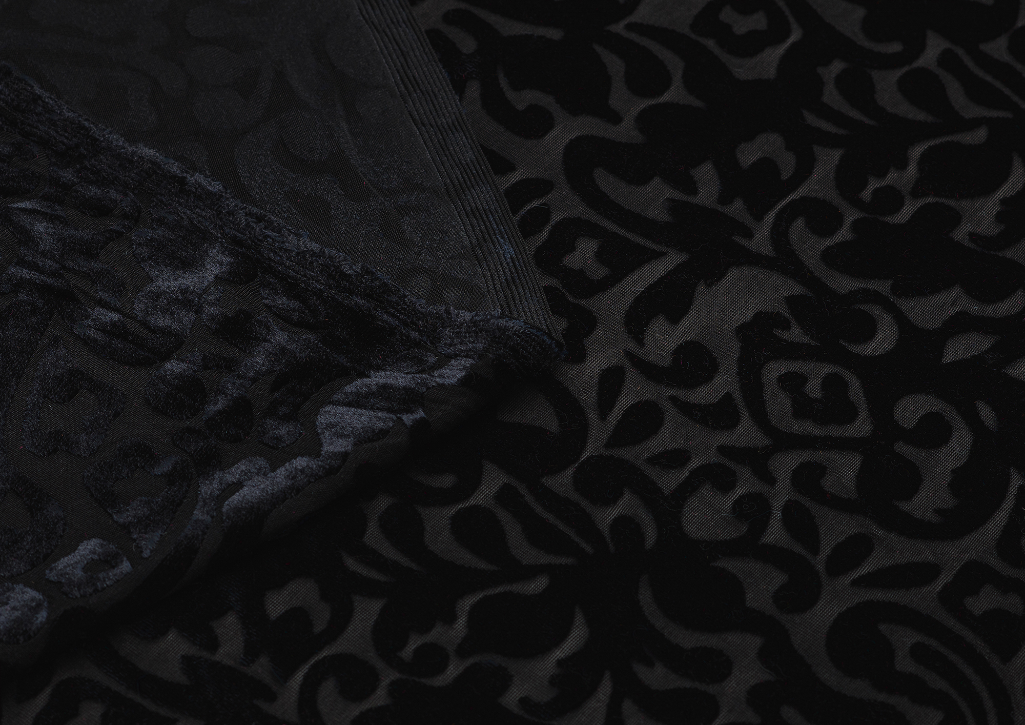 Мягкая приятная и очень уютная ткань. Лицевая сторона с ворсом, вытравленным рисунком, изнанка гладкая трикотажная. Поверхность немного с блеском. При крое обязательно нужно учитывать направление ворса! Платье из бархата всегда выглядит нарядно, отлично подходит для пошива вечернего наряда, а так же для концертных выступлений.