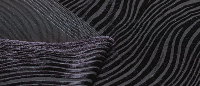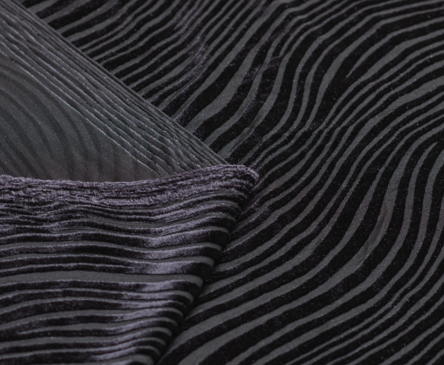 Мягкая приятная и очень уютная ткань . Лицевая сторона с ворсом , вытравленным рисунком, изнанка гладкая трикотажная. Поверхность немного с блеском . При крое обязательно нужно учитывать направление ворса! Платье из бархата всегда выглядит нарядно , отлично подходит для пошива вечернего наряда а так же для концертных выступлений .