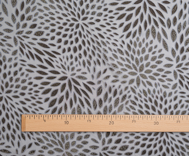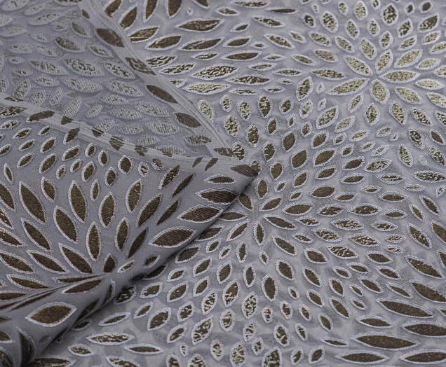 Пан-бархт на шифоновой основе . Лицевая сторона фактурная,  поверхность отличается легким блеском, меняет цвет в зависимости от угла освещения. Изнаночная сторона гладкая и ровная. Ткань прозрачная, для изделия необходим подклад. Из этой ткани шьют элегантные наряды для праздничного вечера , выхода в театр.