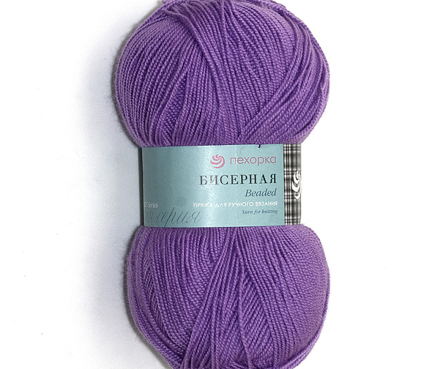 "Бисерная" - высокообъемный акрил высокой крутки: ниточка тонкая, словно собрана из мелких зернышек, что делает ее схожей с нанизанным на нить бисером. Одинаково хорошо вяжется на спицах, крючком, вязальной машине. Петельки ложатся ровно. Причем как в плотном вязании, так и в легких узорах. При распускании не деформируется.