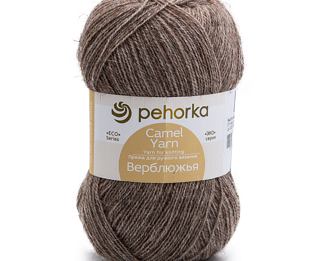 Очень теплая пряжа Пехорка 'Верблюжья' порадует вязальщиц своим качеством и уникальной фактурой нити. Пряжа состоит из высокообъемного акрила, благодаря мягкой пластичной нити, изделие максимально долго сохраняет первозданный вид, в составе большое количество натуральной верблюжьей шерсти, котораяч придает изделию особую мягкость и согревающий эффект. Пряжа 'Верблюжья' подходит для вязания носков, варежек, шапок, вещи из нее отлично согревают в холодную погоду. Связанное полотно имеет интересную фактуру.