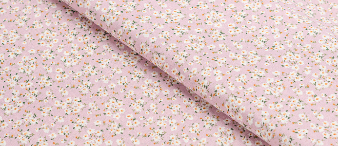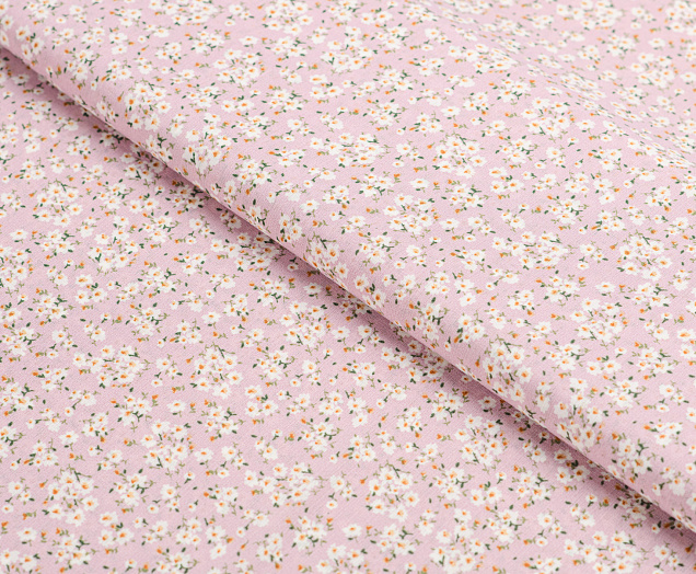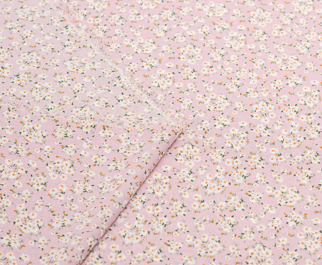 Ткань Вискоза Лоренцо Ромашки на розовом