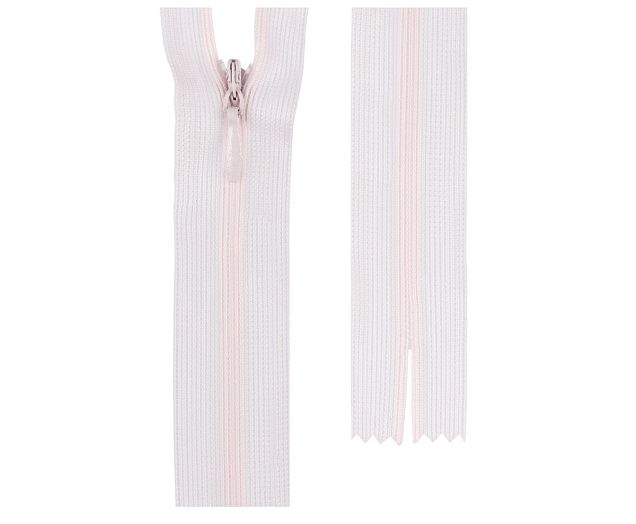 Звенья потайной молнии G013P расположены с изнаночной стороны и в застегнутом виде не видны, так как с лицевой стороны находится только бегунок. Применяется в детских и женских изделиях из легких тканей. Рекомендуемая температура глажения 60-100° С. При стирке тесьма не линяет и продолжает сохранять форму. Неоспоримым преимуществом такой молнии, помимо высокого качества, является небольшой вес, что позволяет использовать застежку в производстве постельного белья и декоративных аксессуаров.
