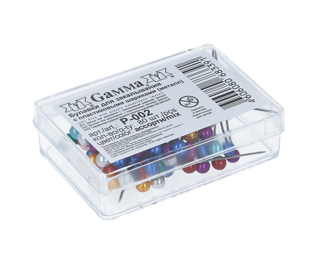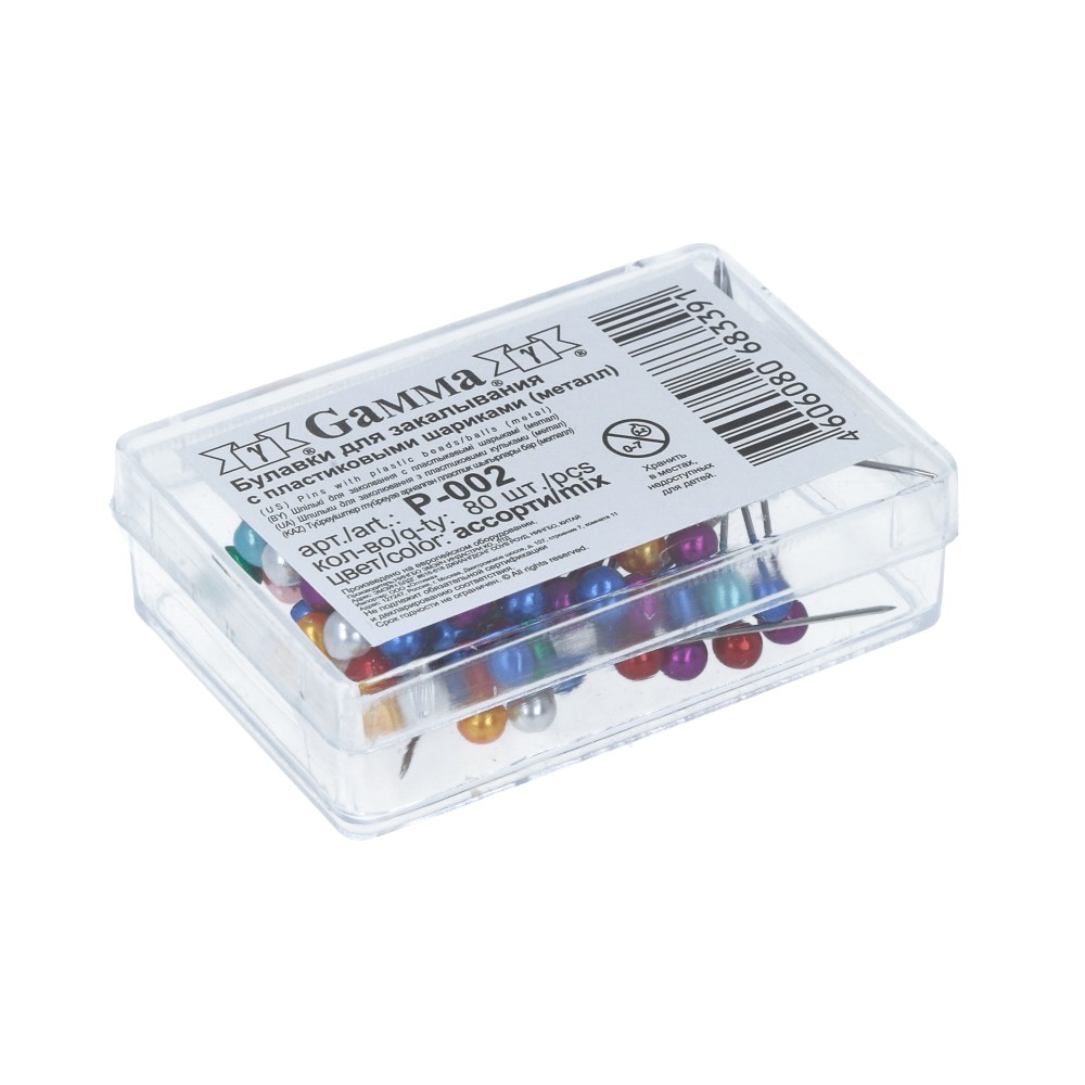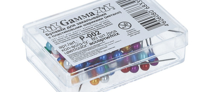 Иглы для закалывания Gamma P-002 с декоративными головками в форме "шарика". Предназначены для соединения деталей изделия, прикалывания выкроек, для закалывания, наметки при шитье и крое, а также в техниках пэчворк и квилтинг.