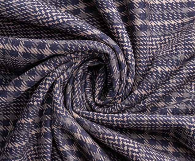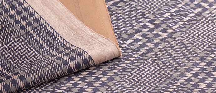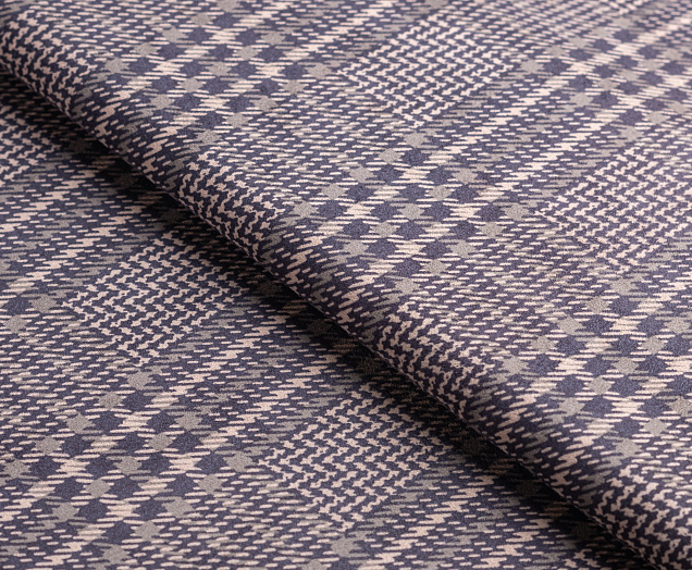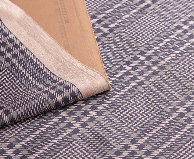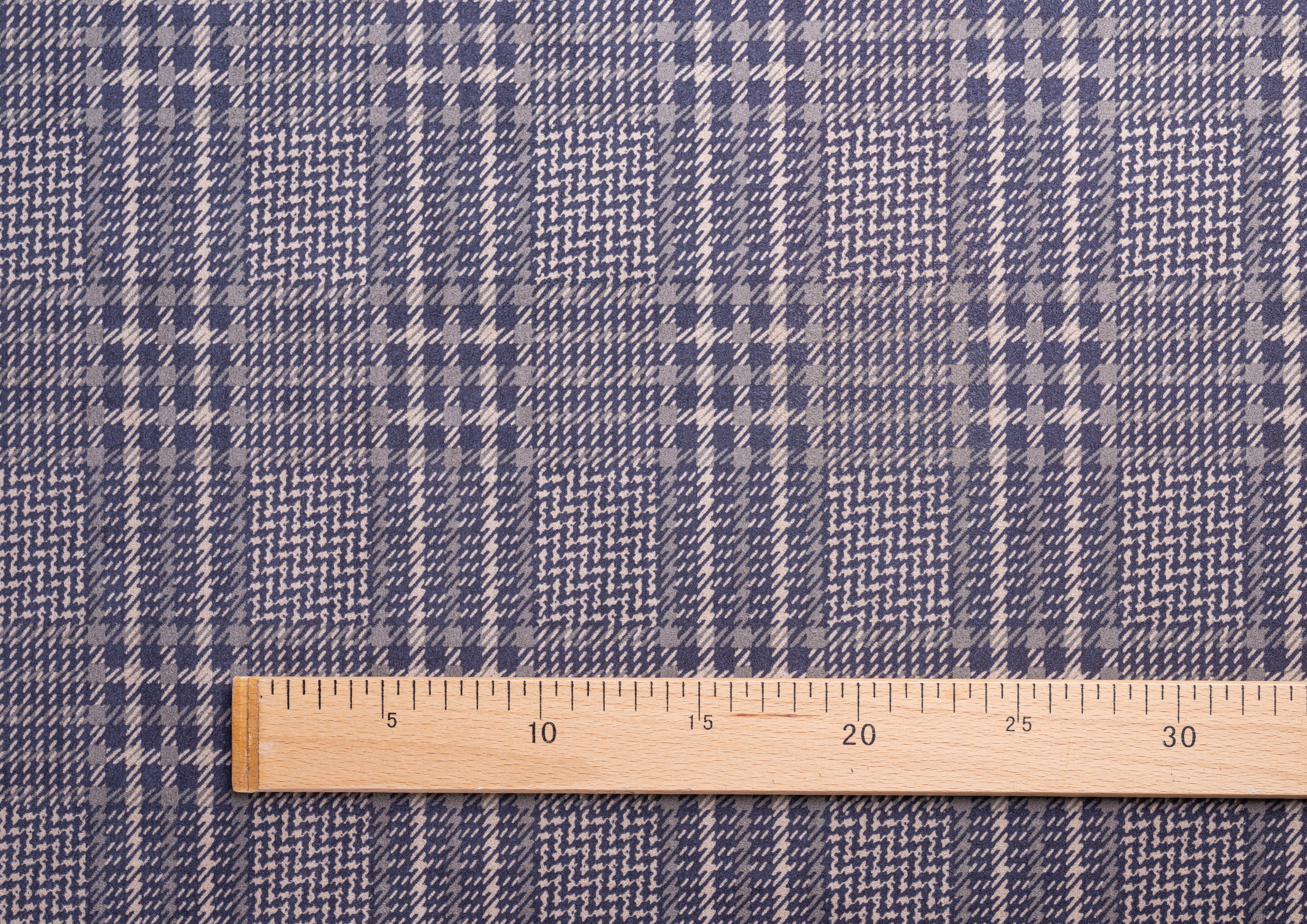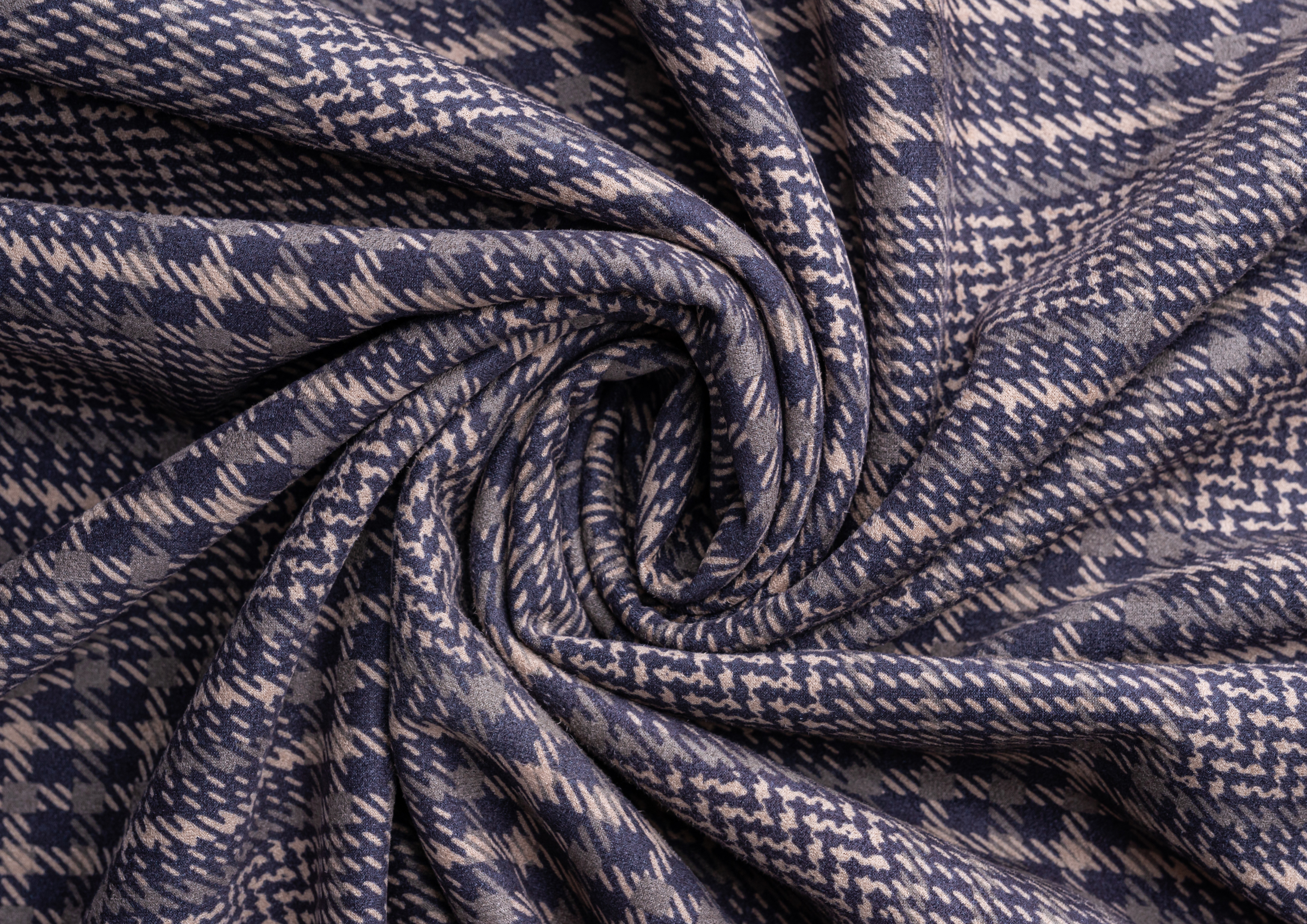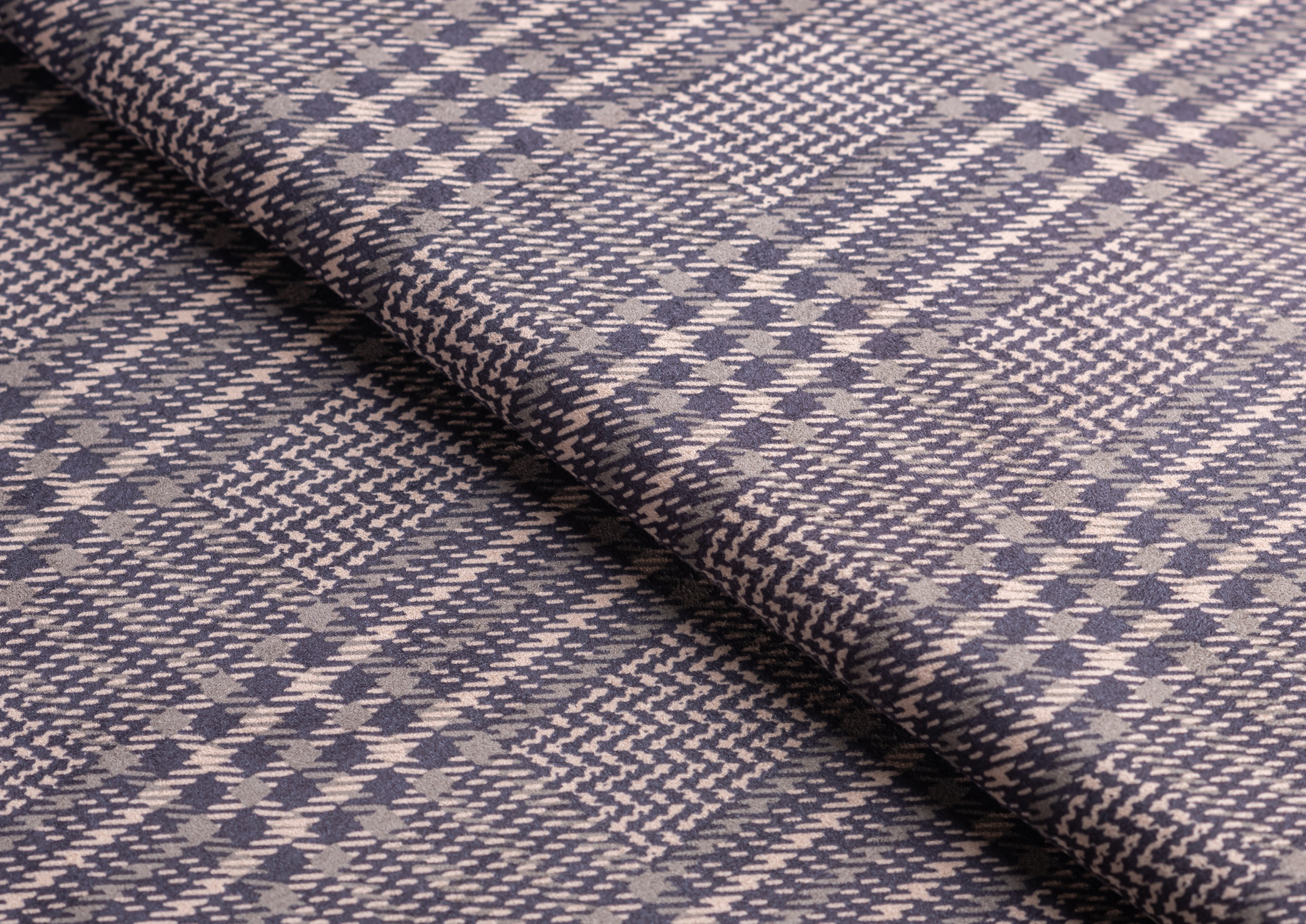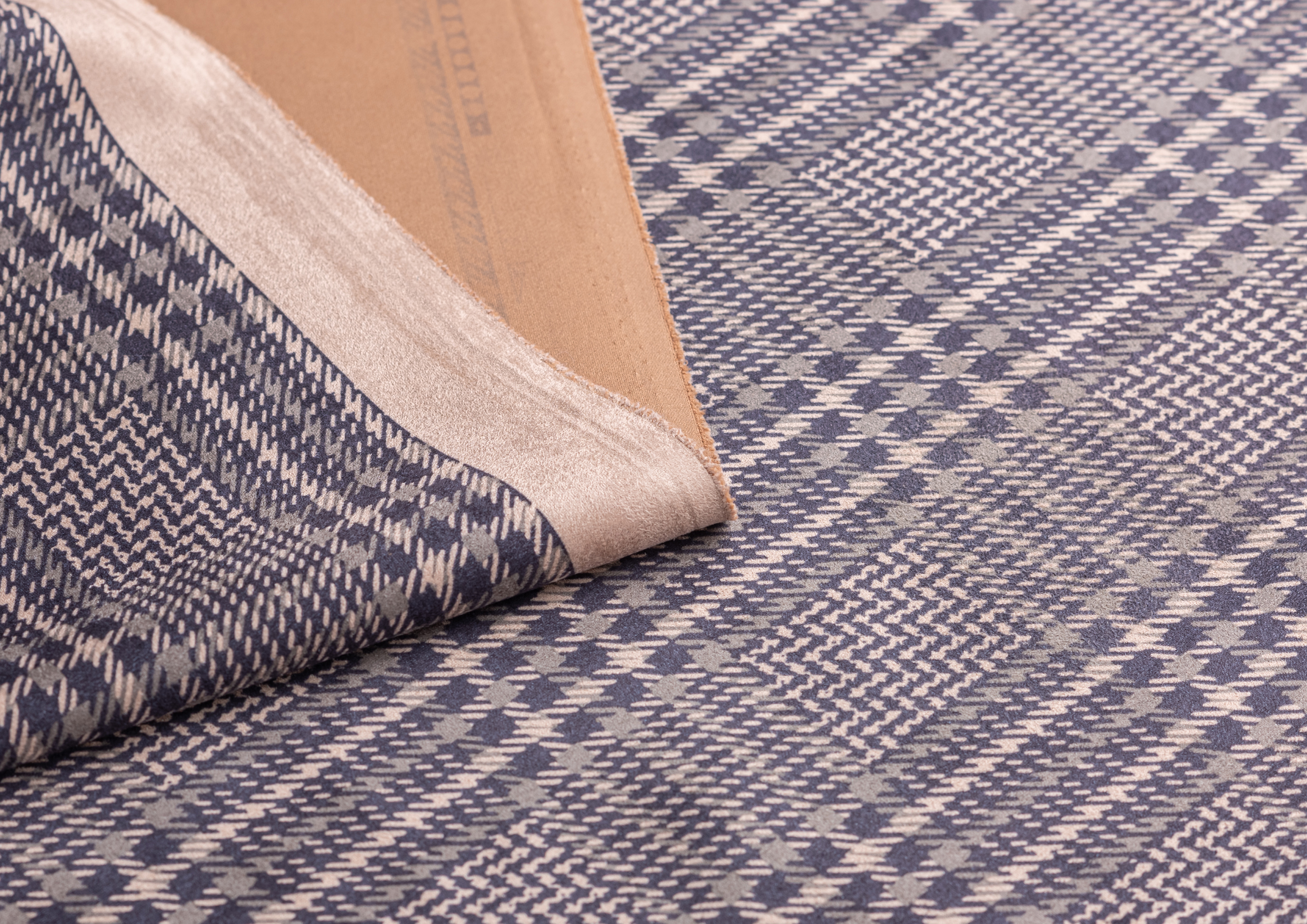 Трикотажное полотно. Лицевая сторона имитирует замшевую поверхность с принтом, изнанка гладкая, однотонная. Применяют для пошива юбок, платьев, брюк, кардиганов, легких пальто .