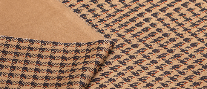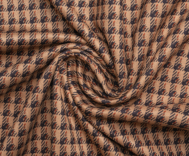 Ткань замша принт клетка цв. песочный