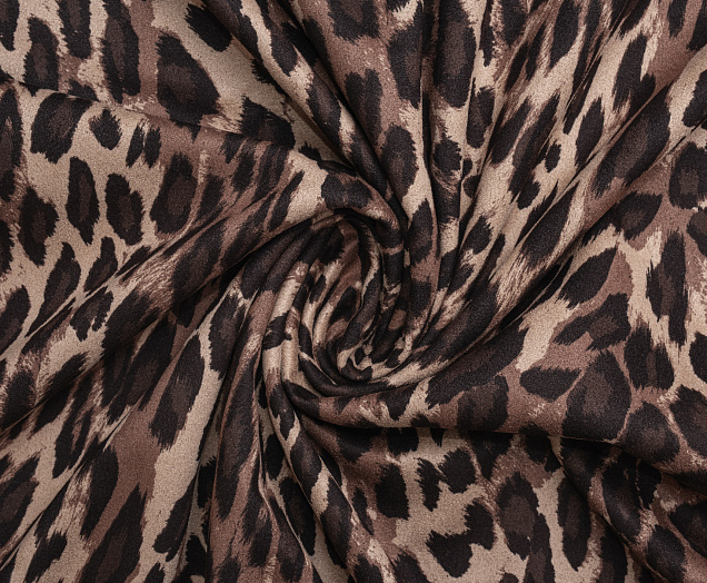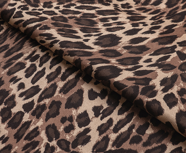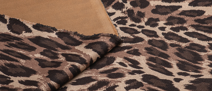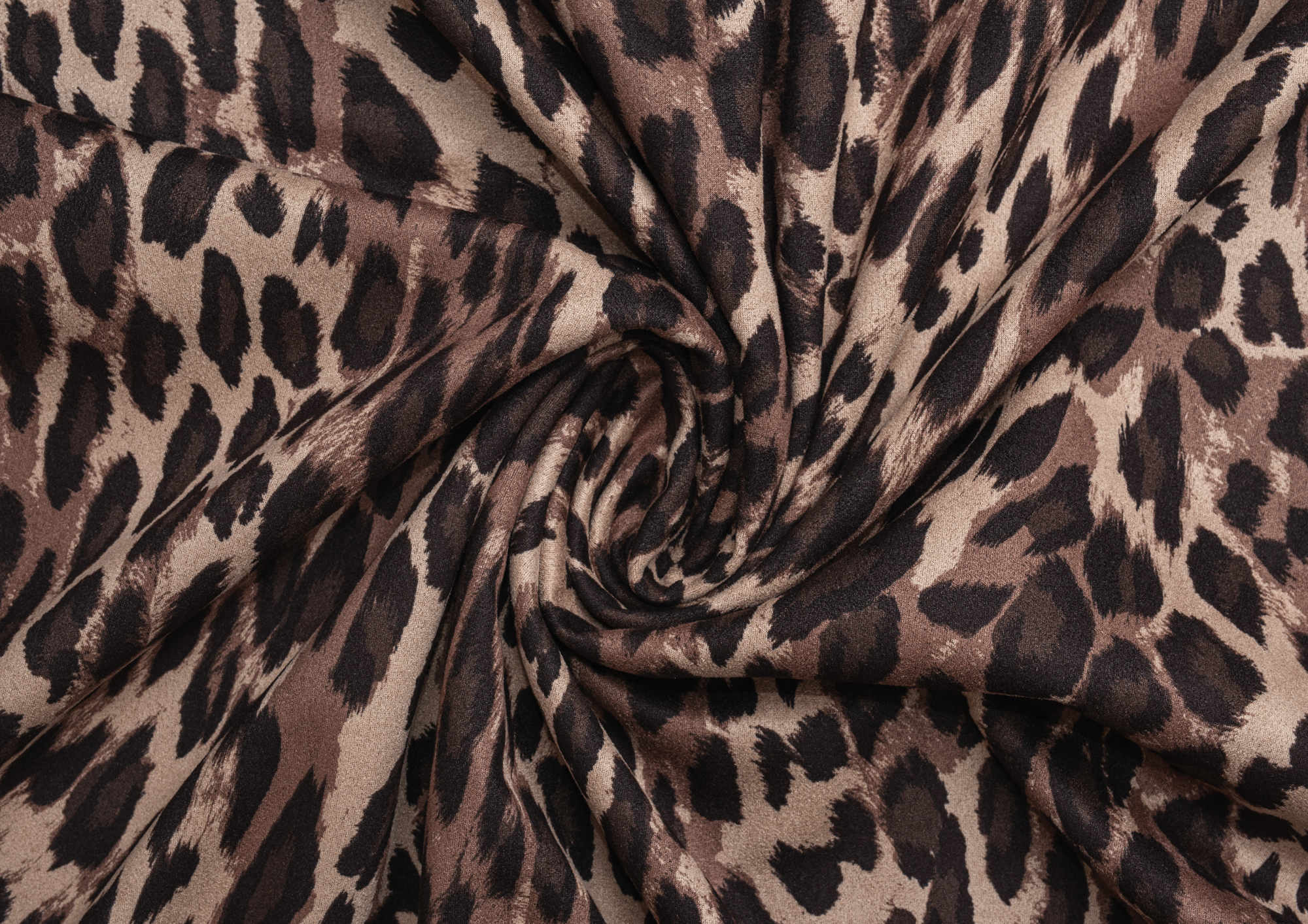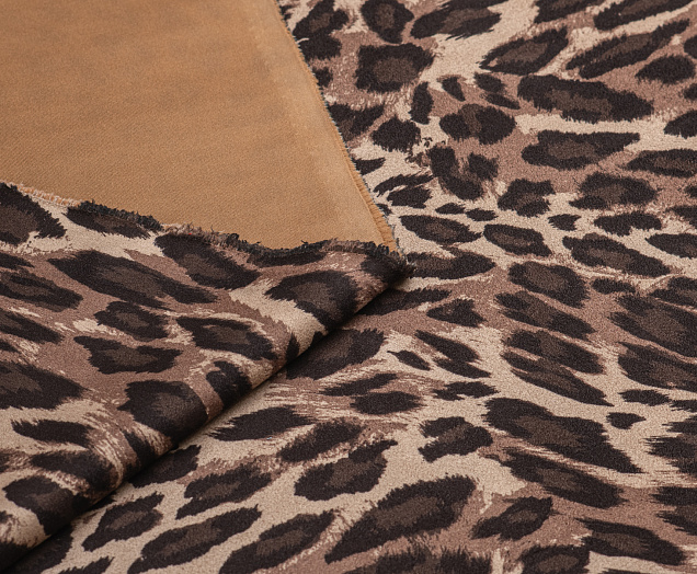 Трикотажное полотно . Лицевая сторона имитирует замшевую поврхность с принтом Леопард , изнанка гладкая, однотонная. Применяют для пошива юбок , платьев, брюк , кардиганов , легких пальто .