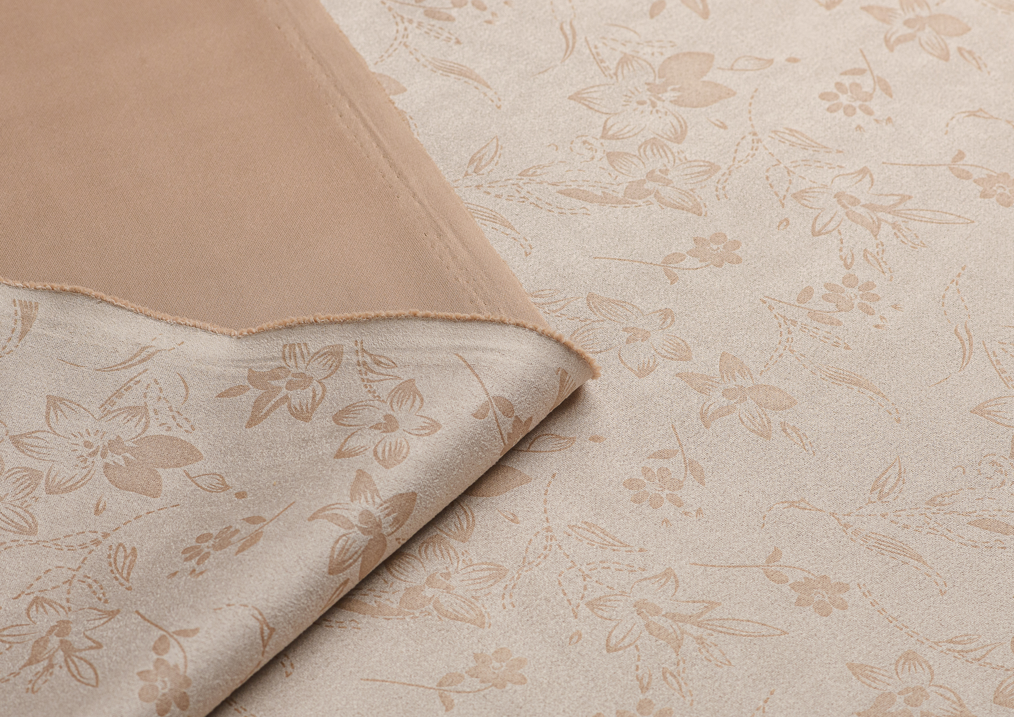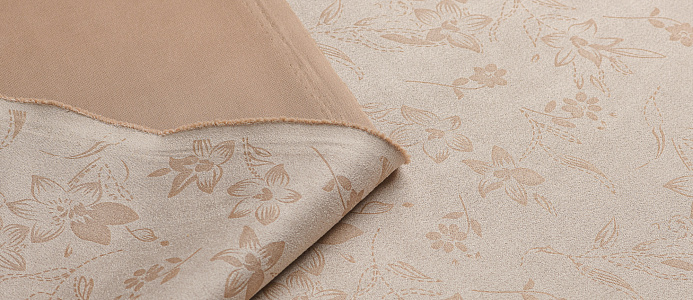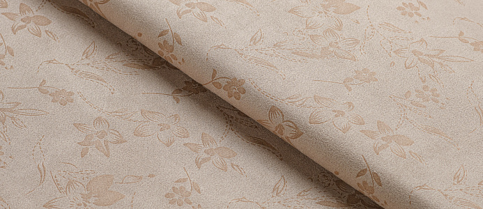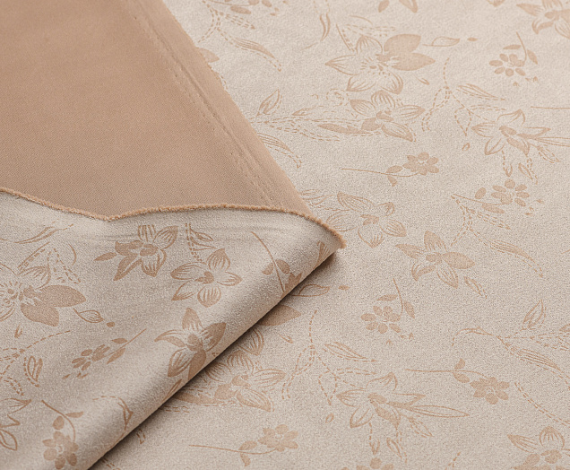 Трикотажное полотно. Лицевая сторона имитирует замшевую поврхность с нежным цветочным принтом, изнанка гладкая, однотонная. Применяют для пошива юбок, платьев, брюк, кардиганов, легких пальто.