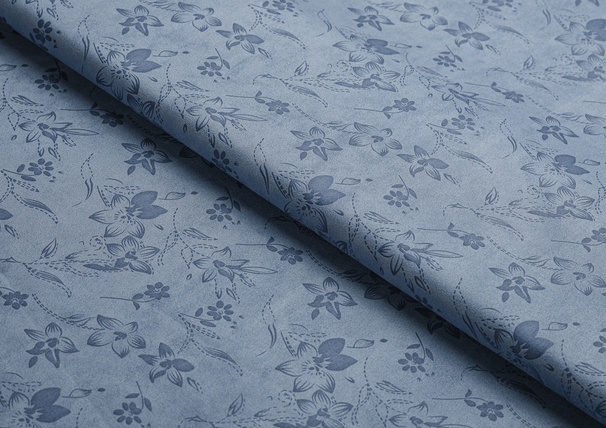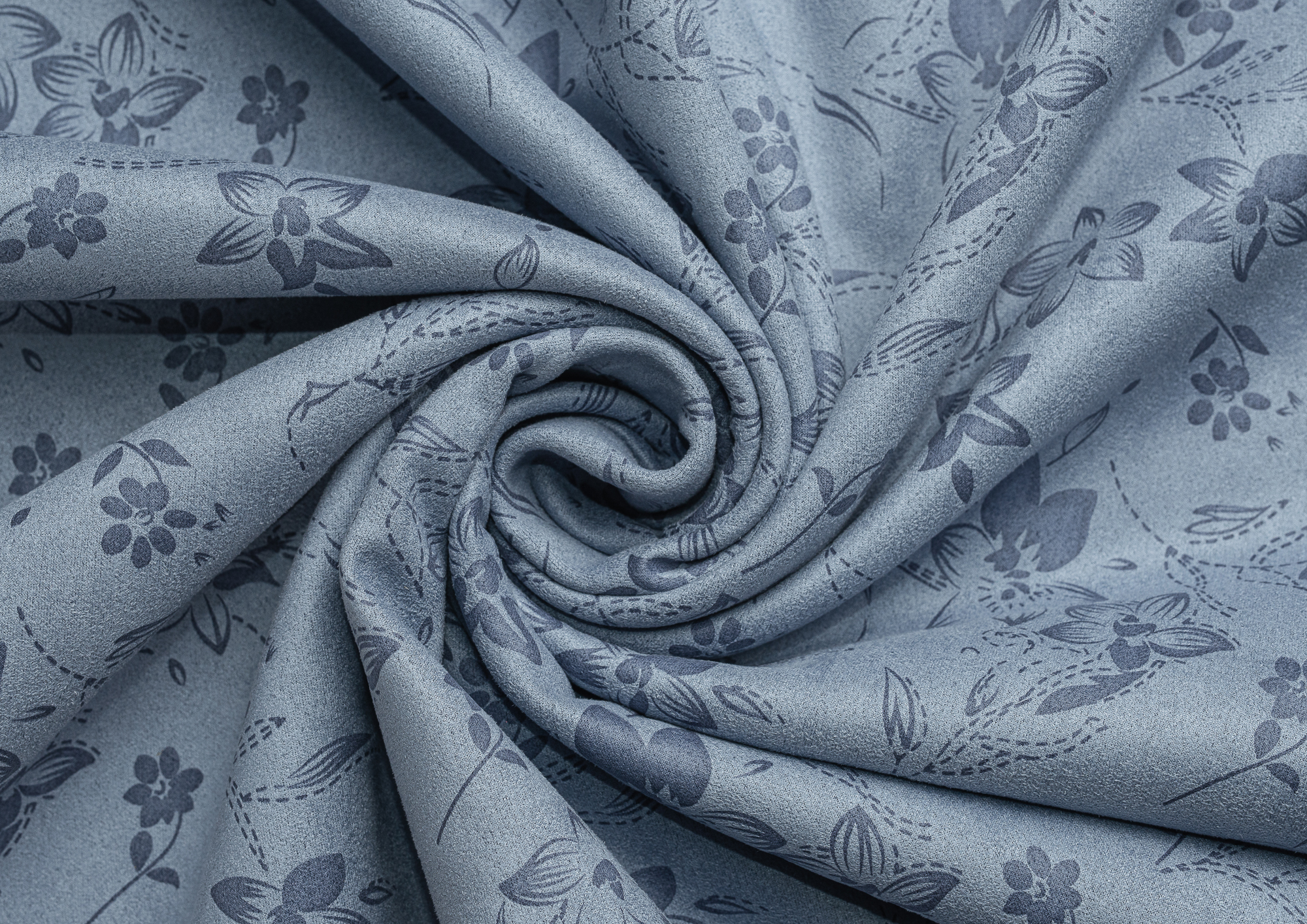 Ткань Замша принт цв. голубой/серый