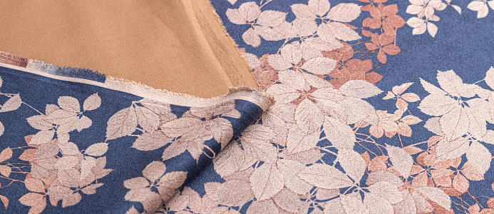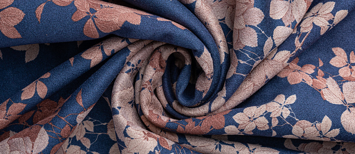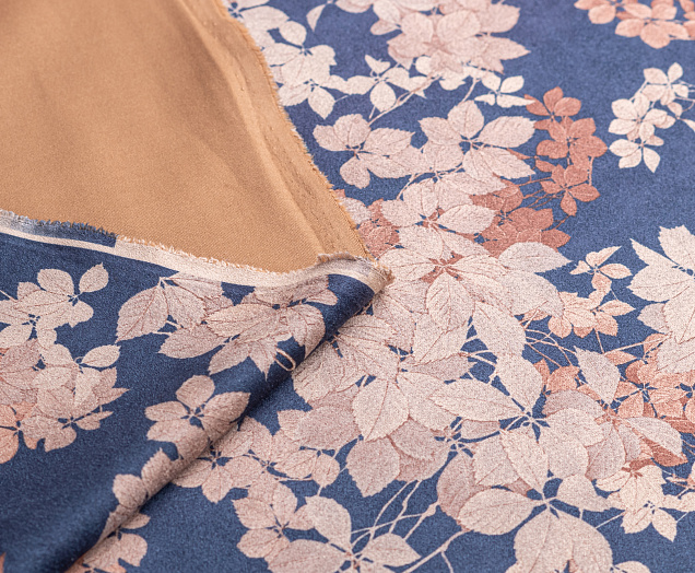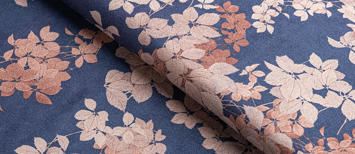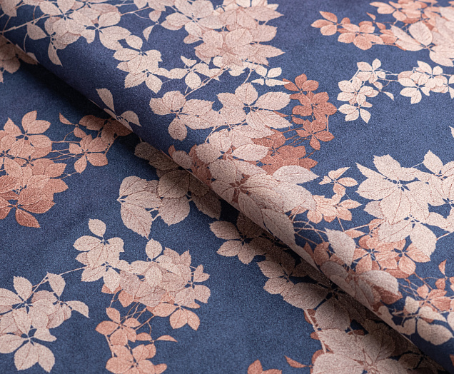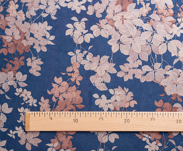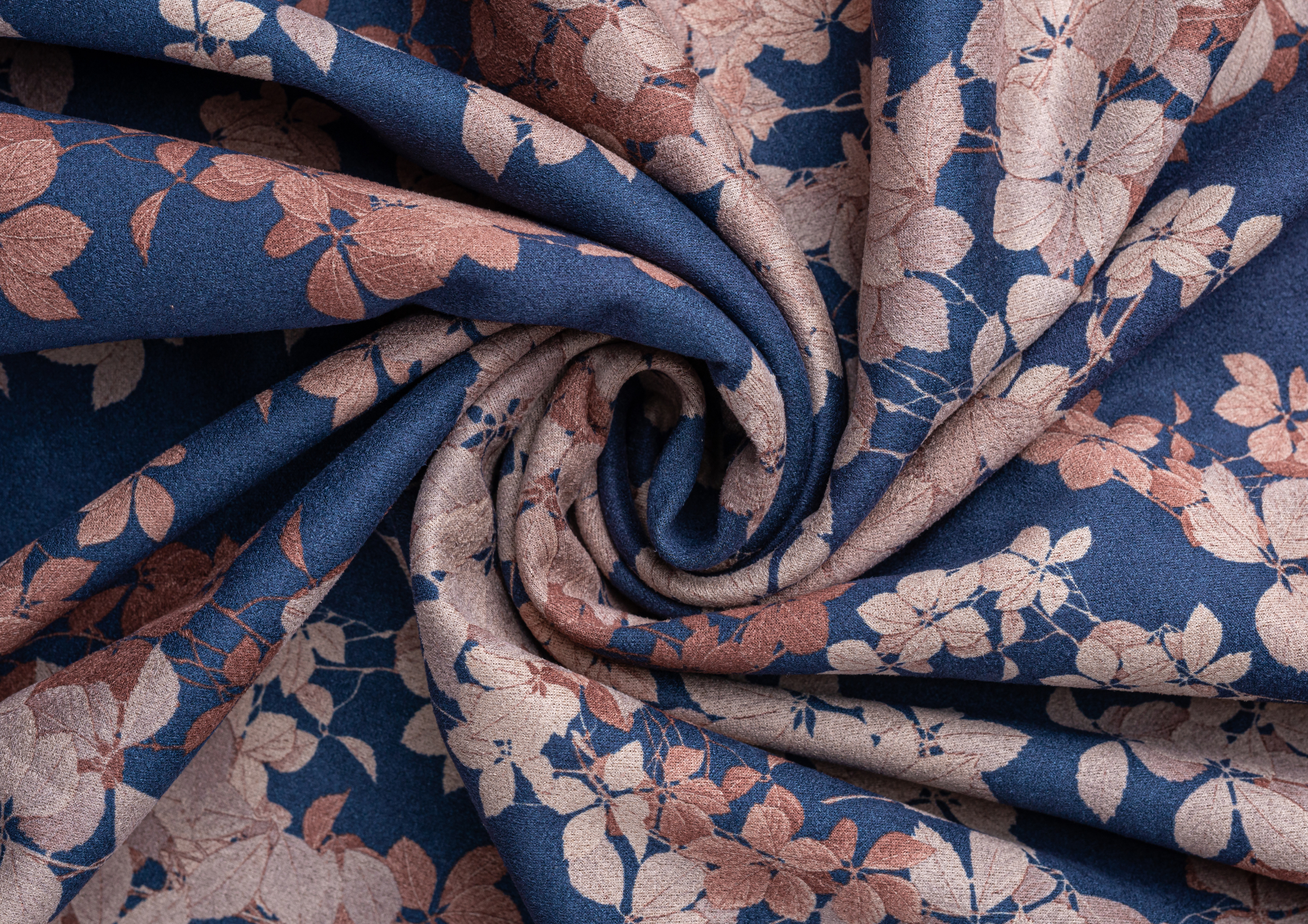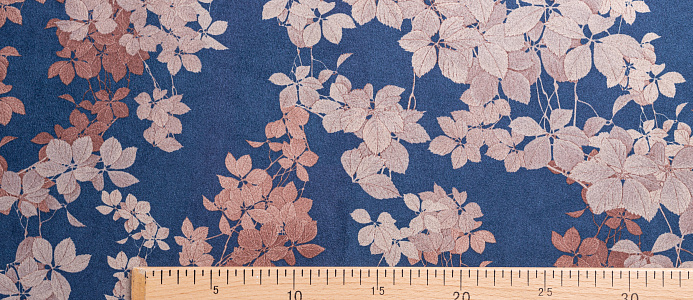 Ткань Замша принт Цветок на синем